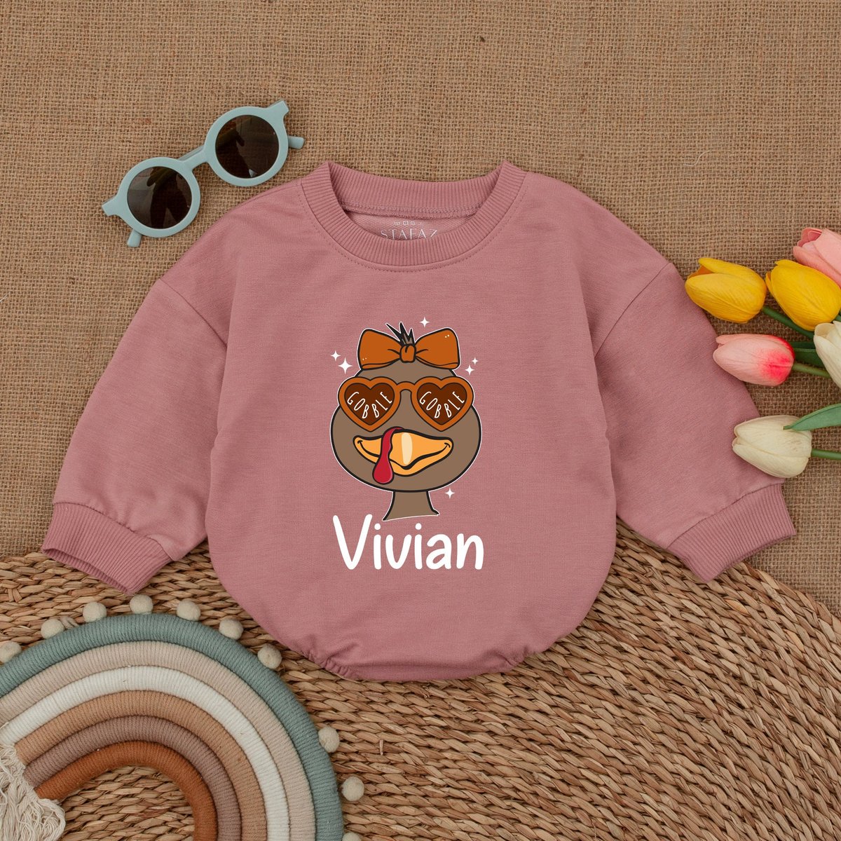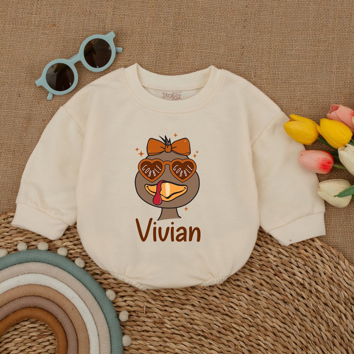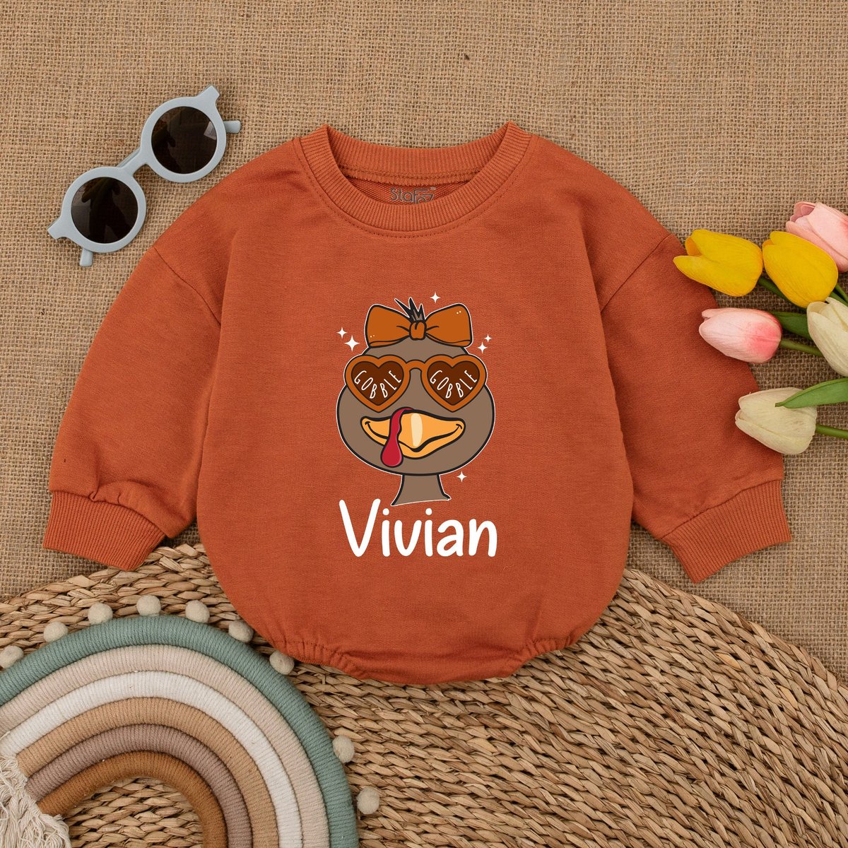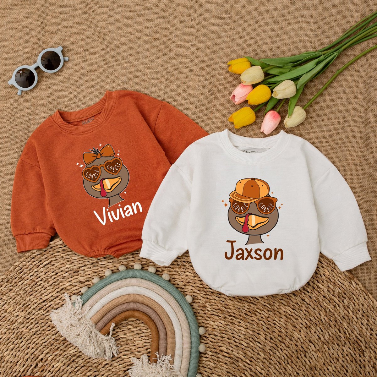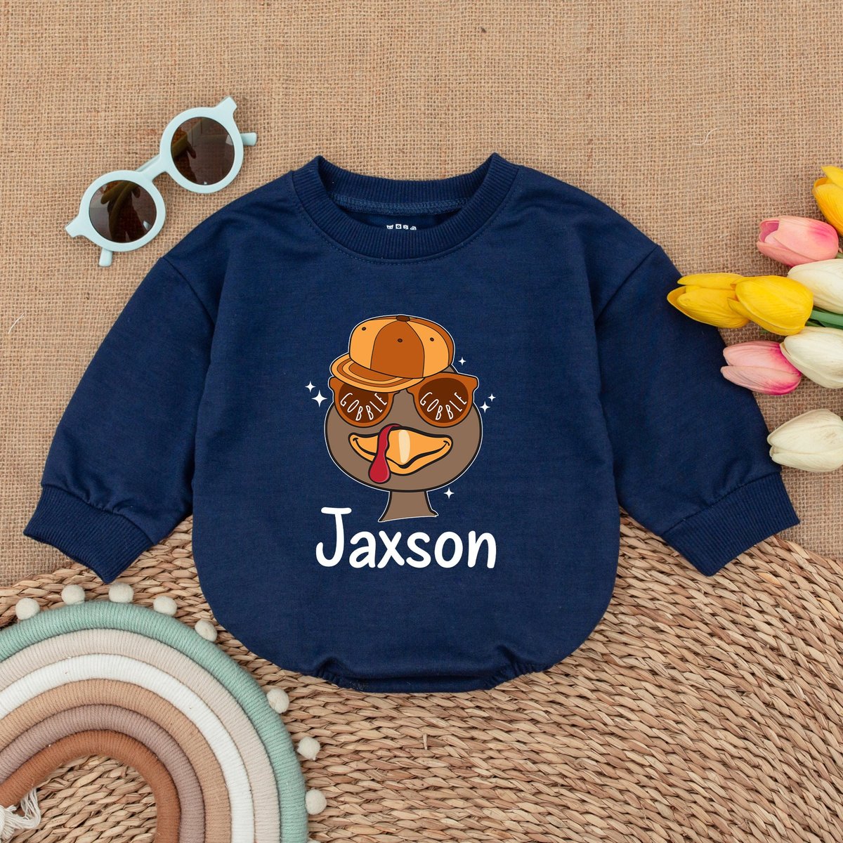 Custom Name Turkey Baby Romper Funny Turkey Thanksgiving Gobble Baby Bodysuit Fall Baby Outfit Fall 173