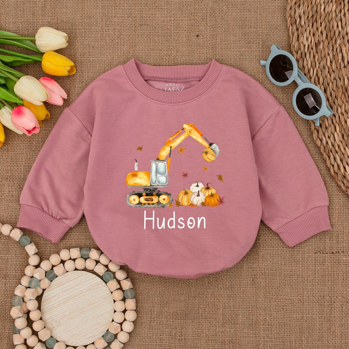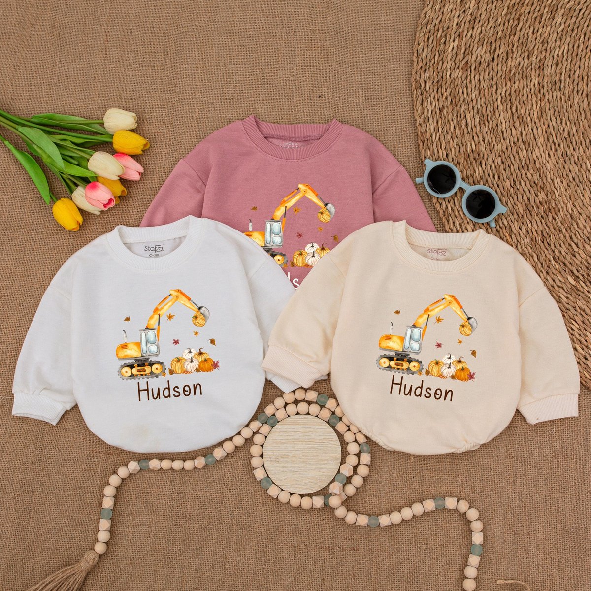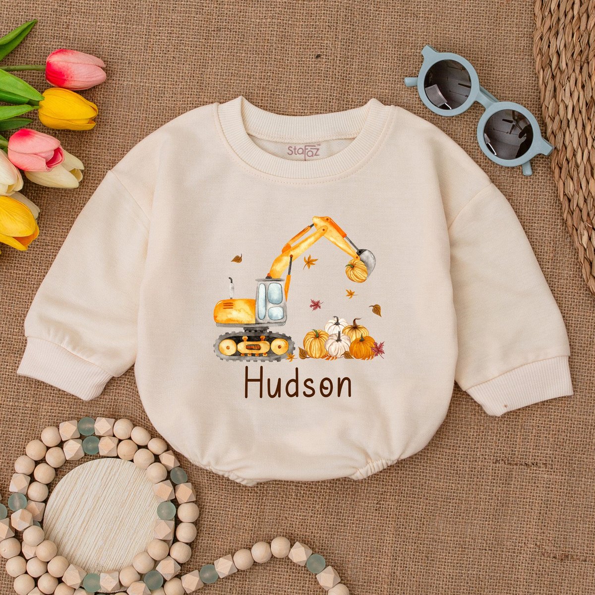 Custom Pumpkin Excavator Romper Fall Construction Pumpkin Thanksgiving Bodysuit Pumpkin Baby Clothes 174