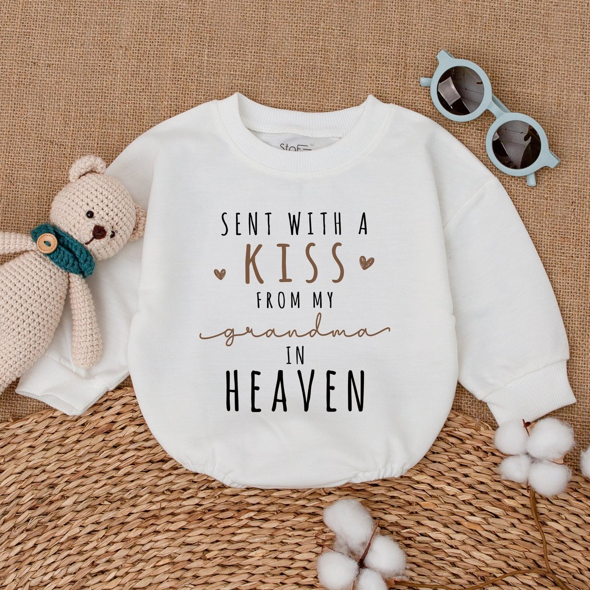 Custom Sent With A Kiss From My Grandma In Heaven Romper New Grandbaby Bodysuit Baby Announcement Ne 170