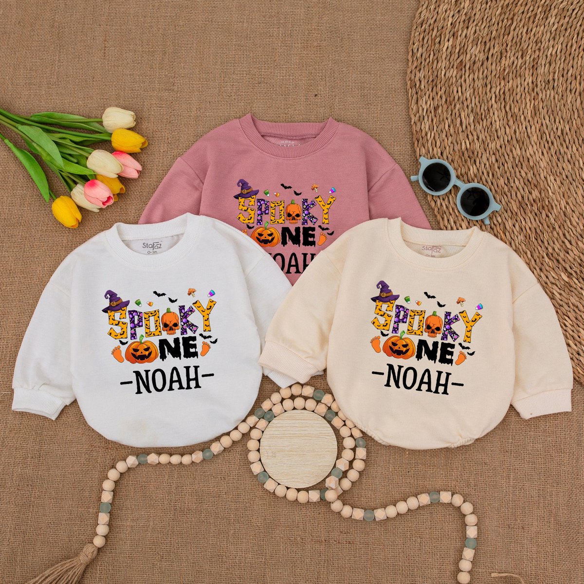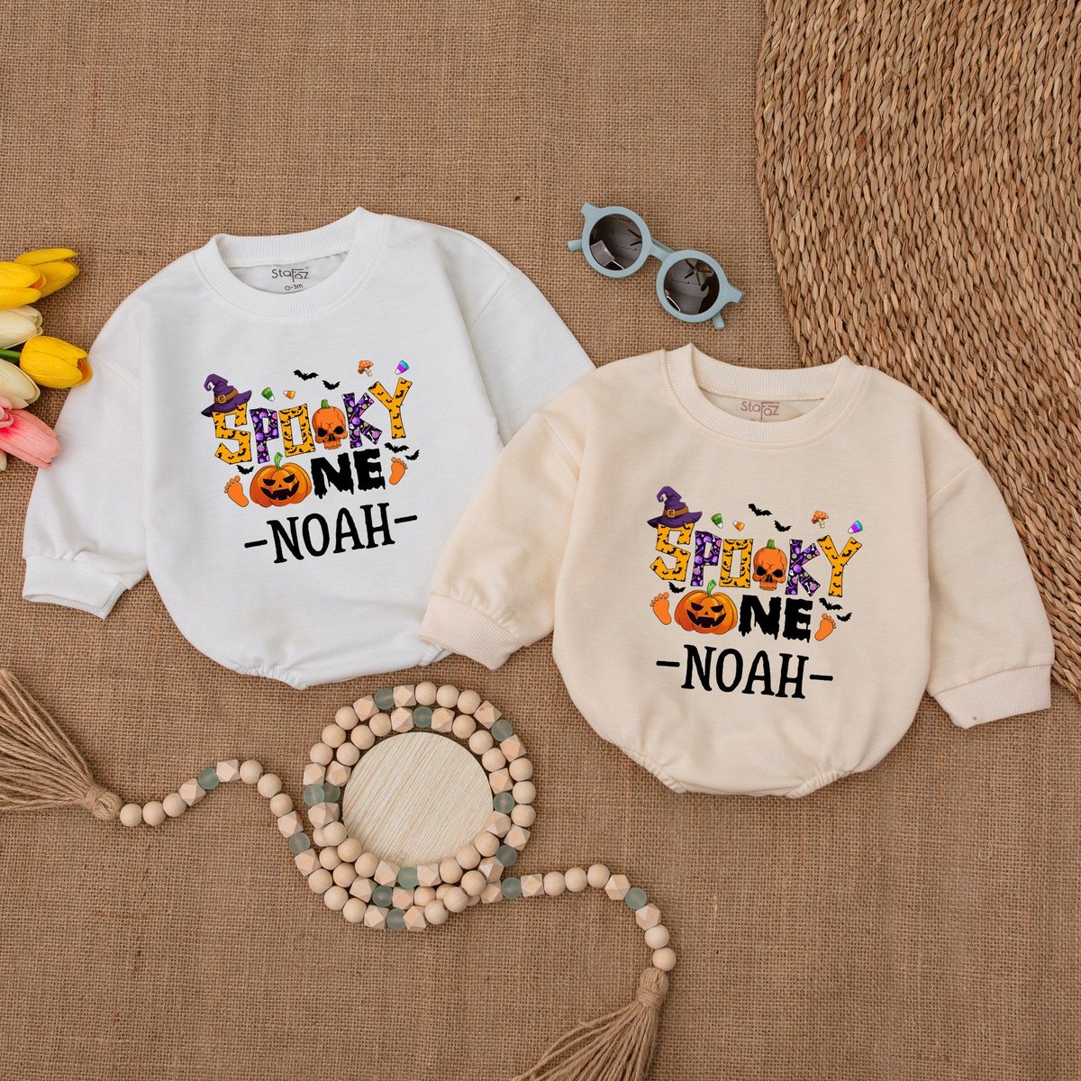 Custom Spooky One Baby Romper Halloween Ghost Bodysuit Fall Baby Outfit Halloween Birthday Halloween 174