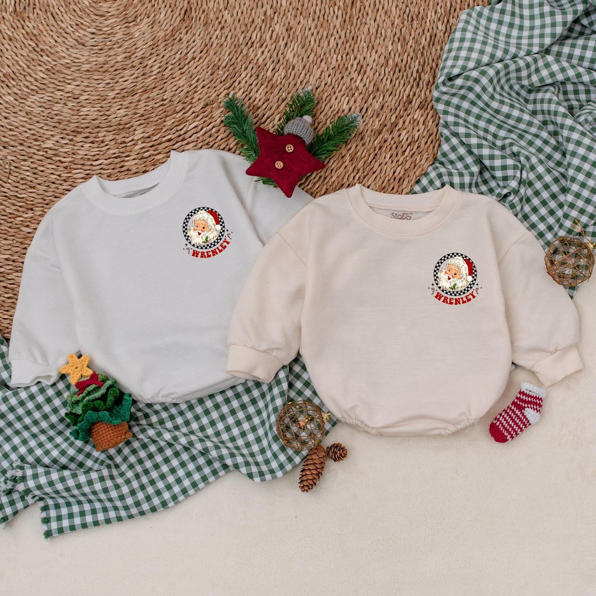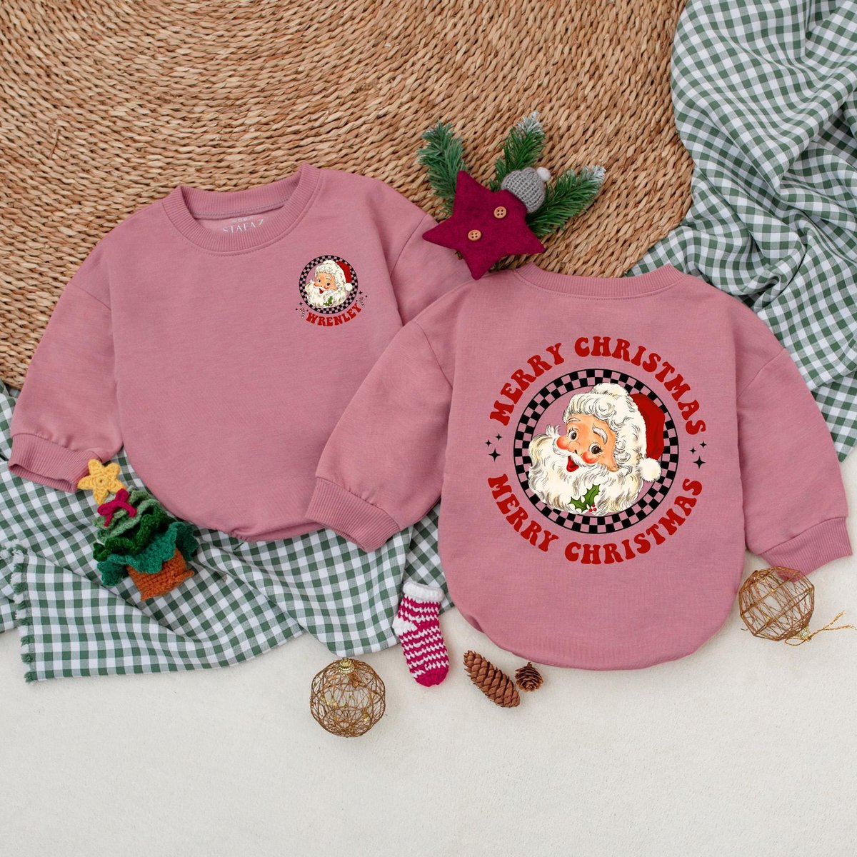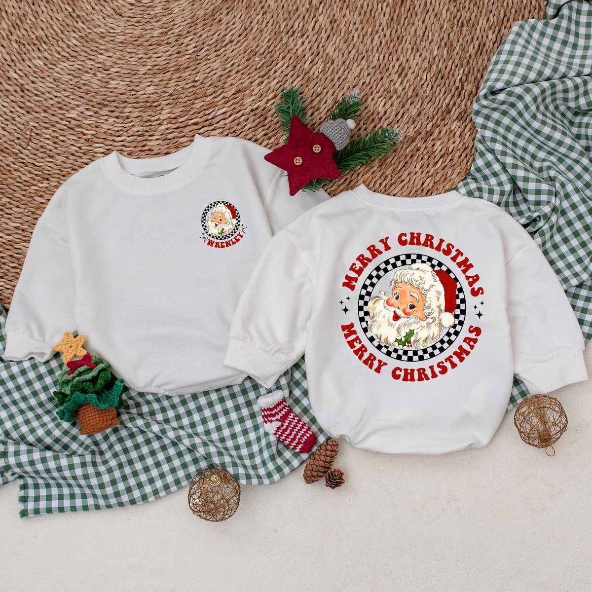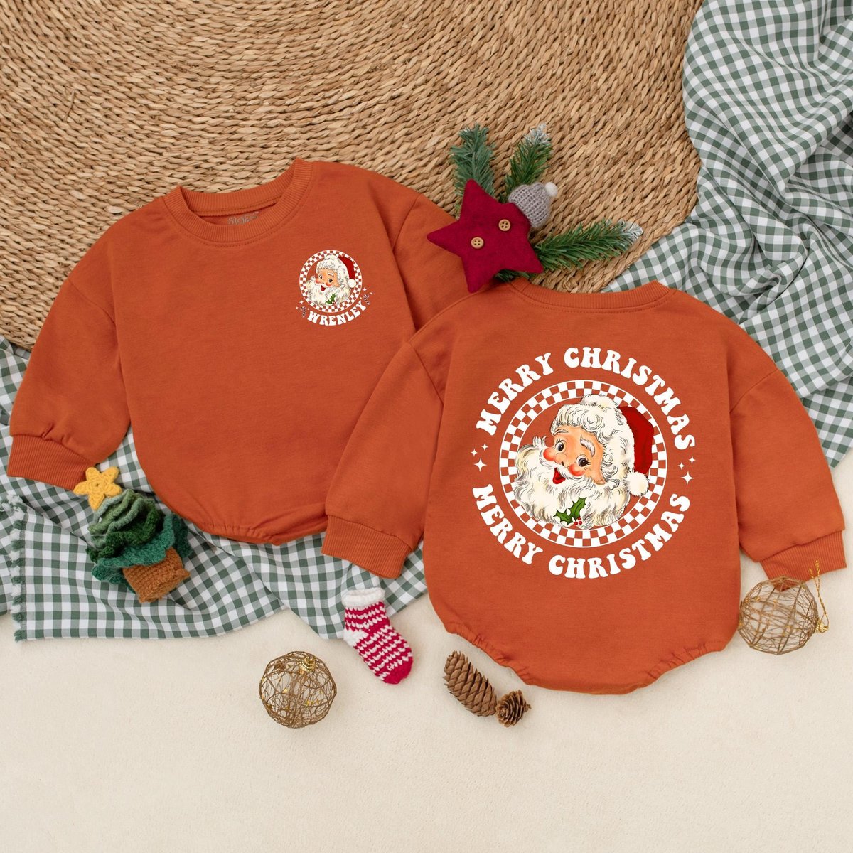 Custom Vintage Santa Baby Romper Christmas Baby Bodysuit Baby Christmas Outfit Merry Christmas First 179