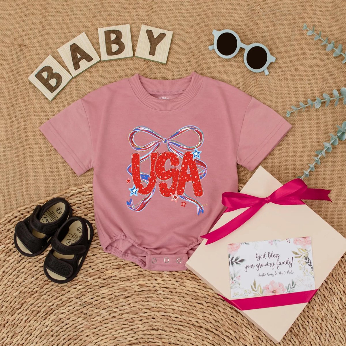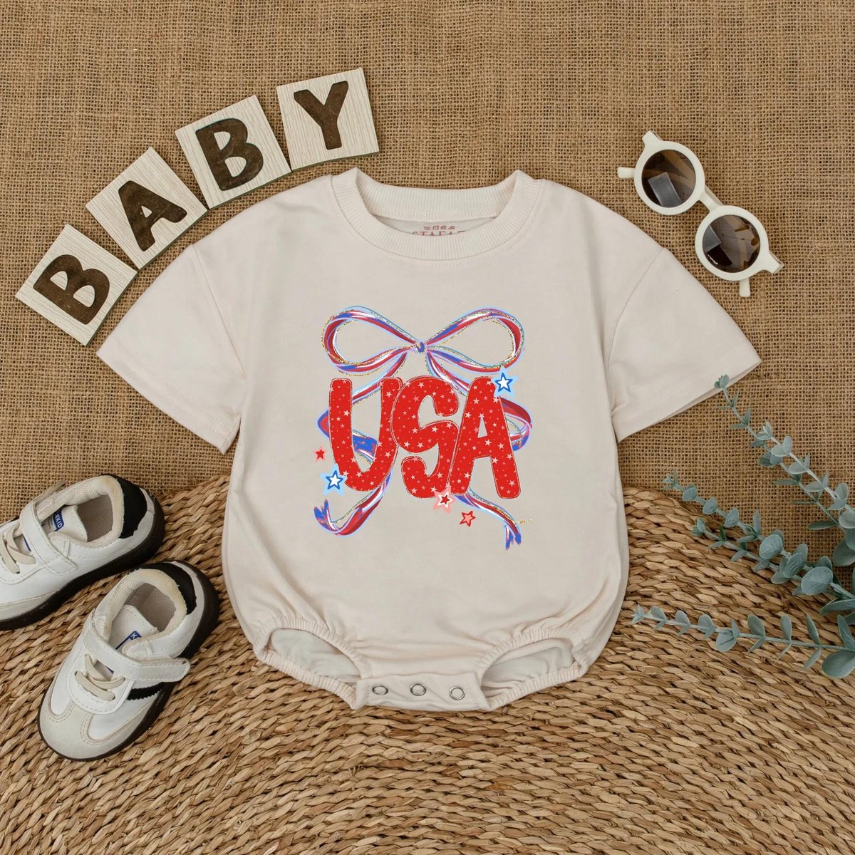 Cute USA Bow Baby Romper 4th of July Girly Baby Bodysuit Independence Day Outfit for Baby Girl Baby 430