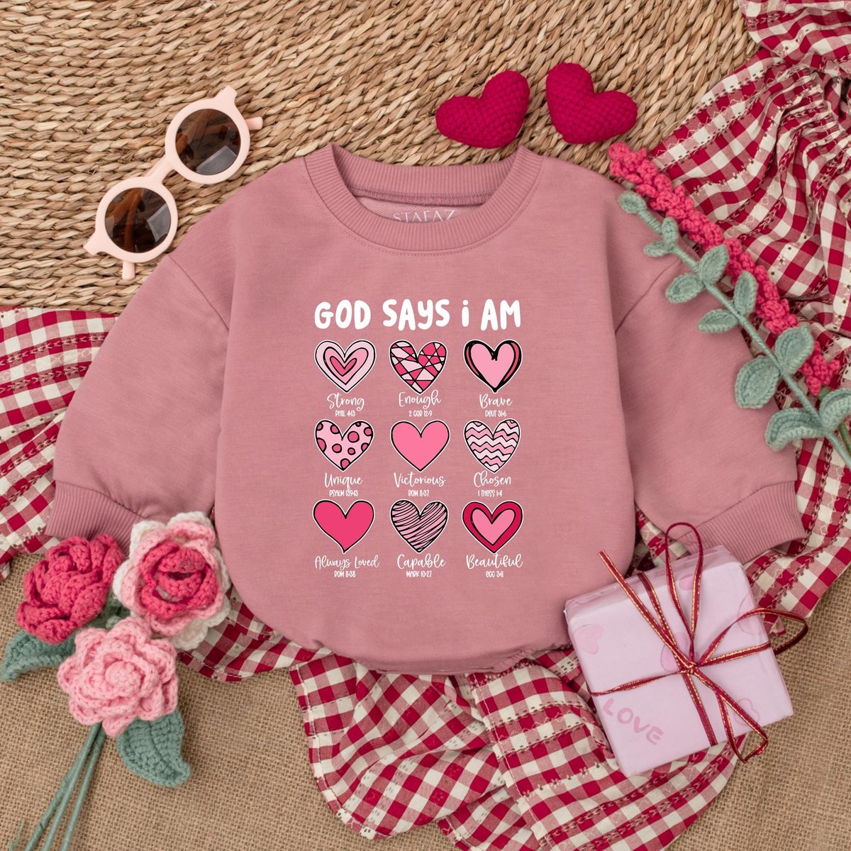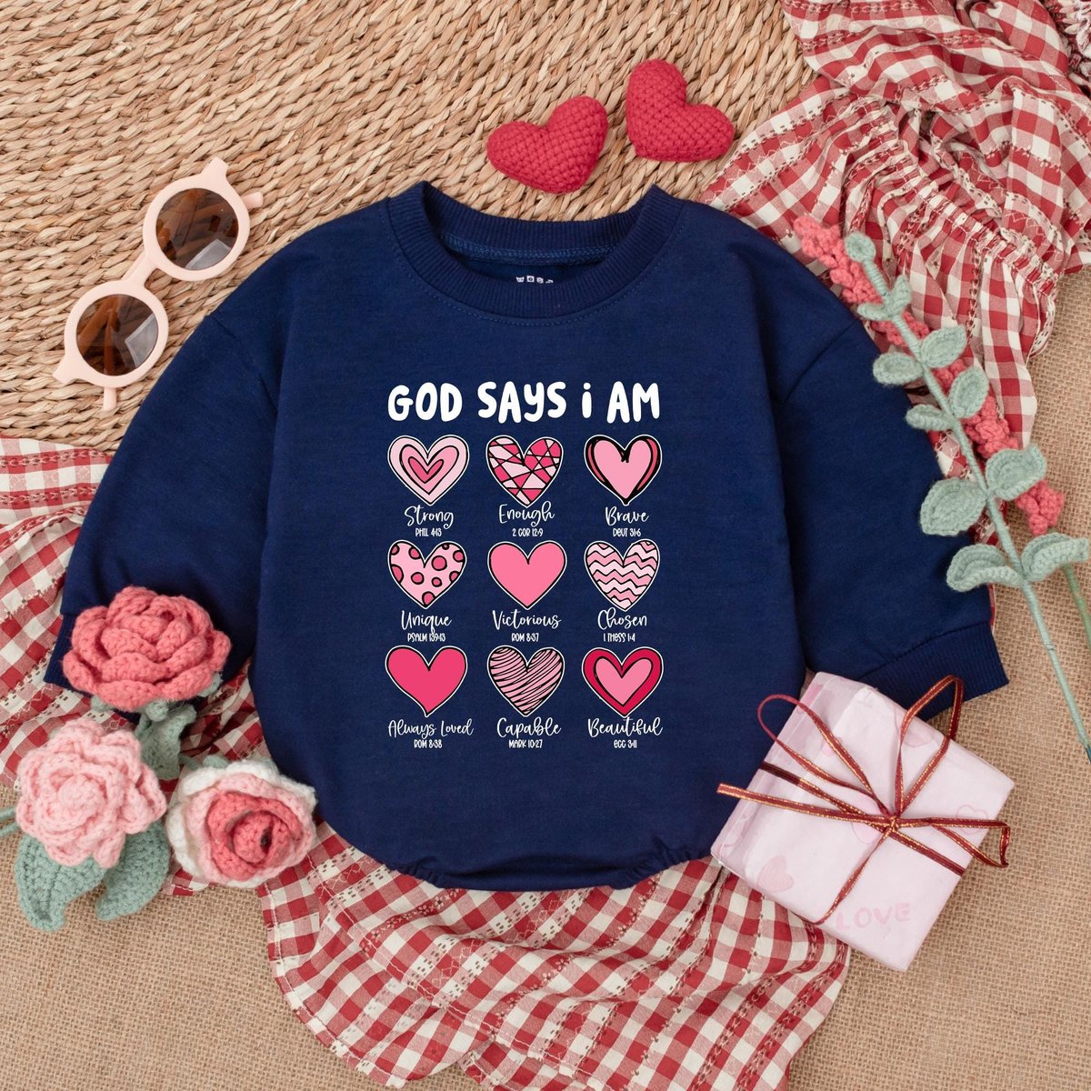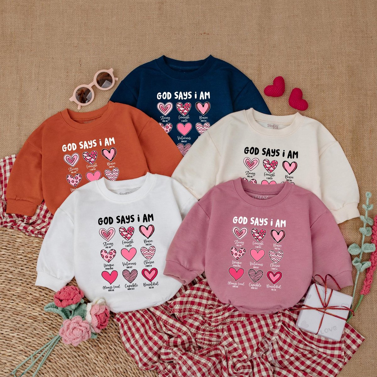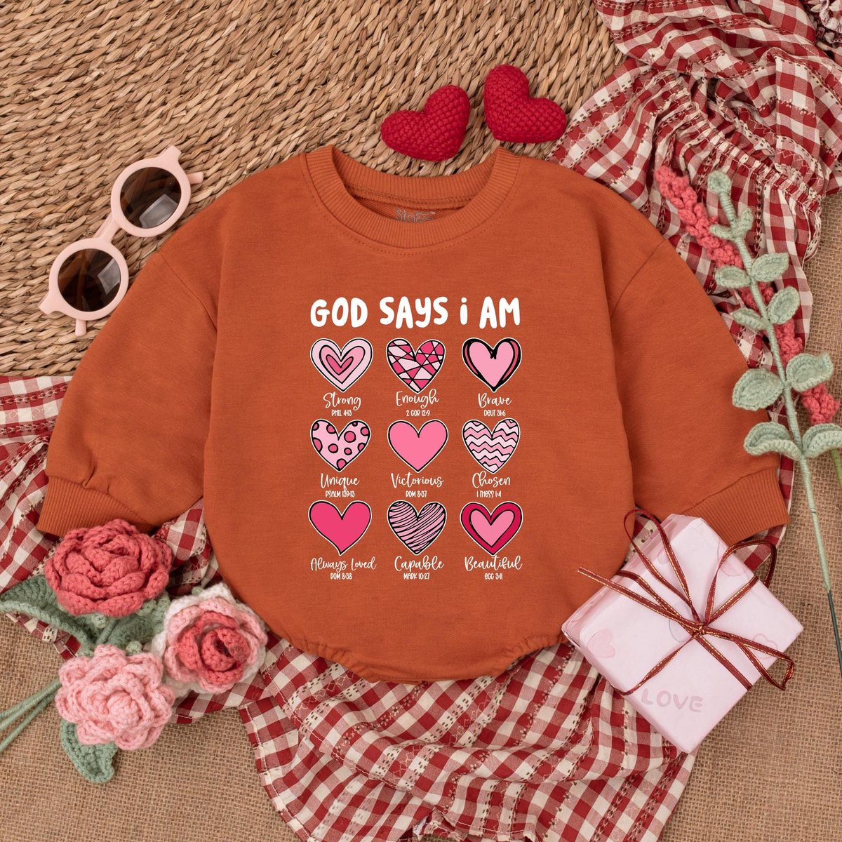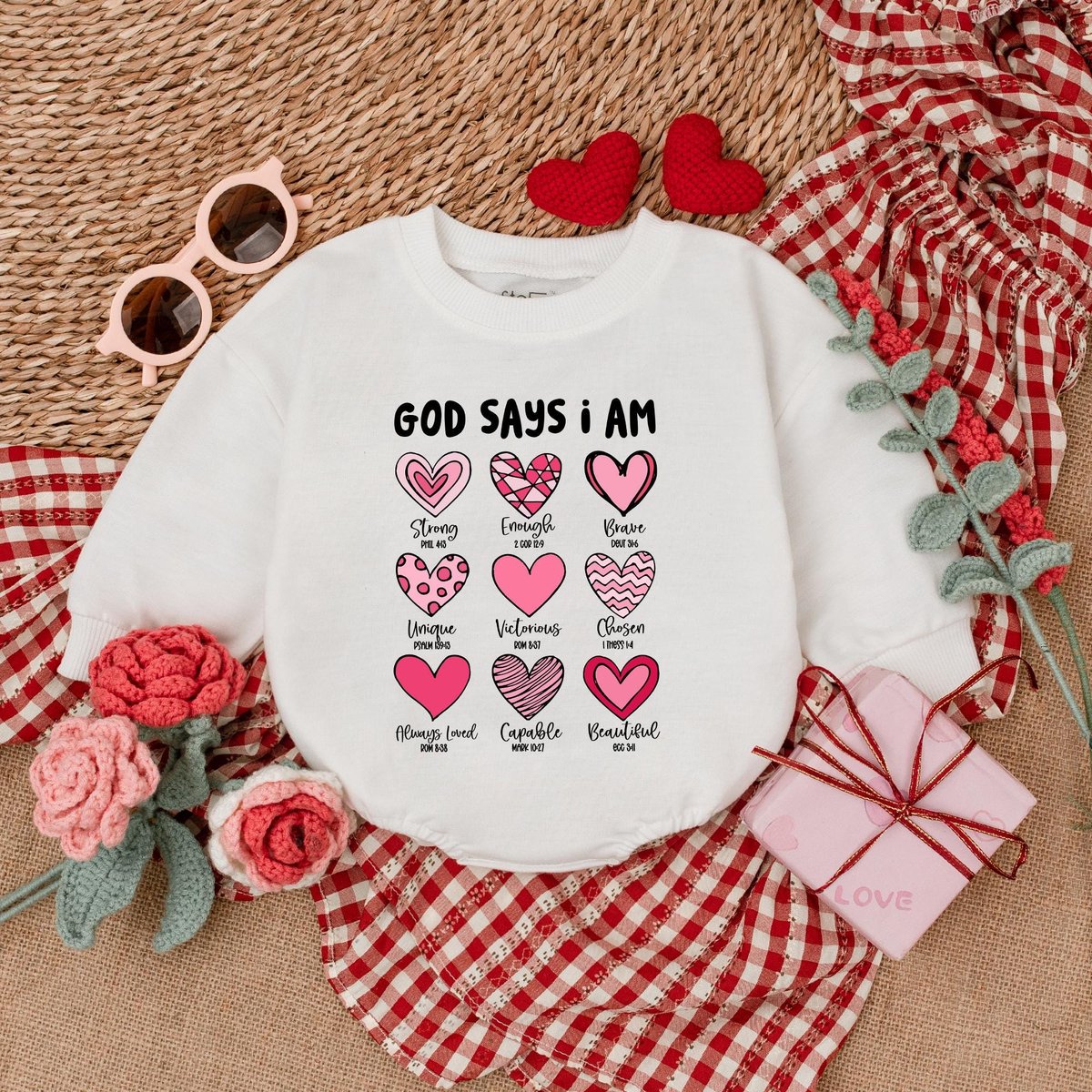 God Says I am Valentine Romper Faithful Valentines Baby Bodysuit Cute Hearts Bubble Romper My 1st Va 182