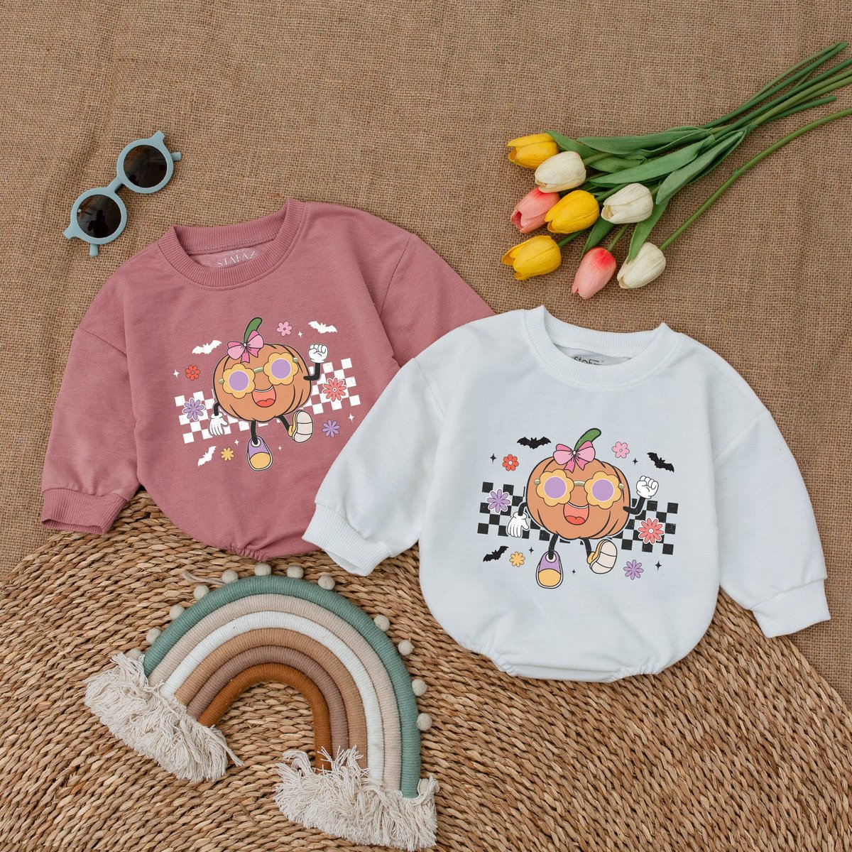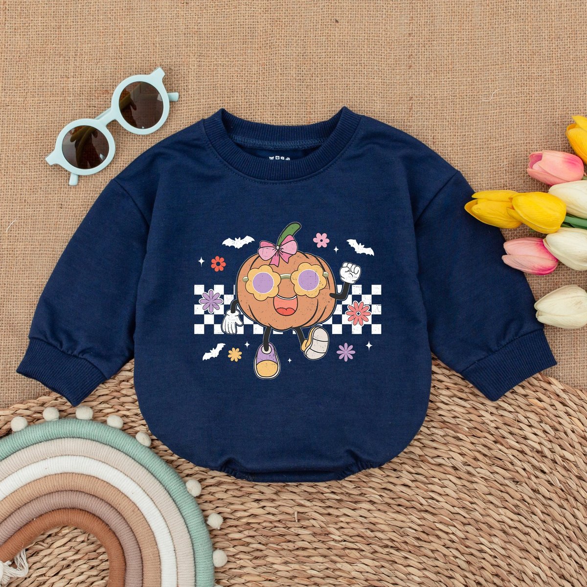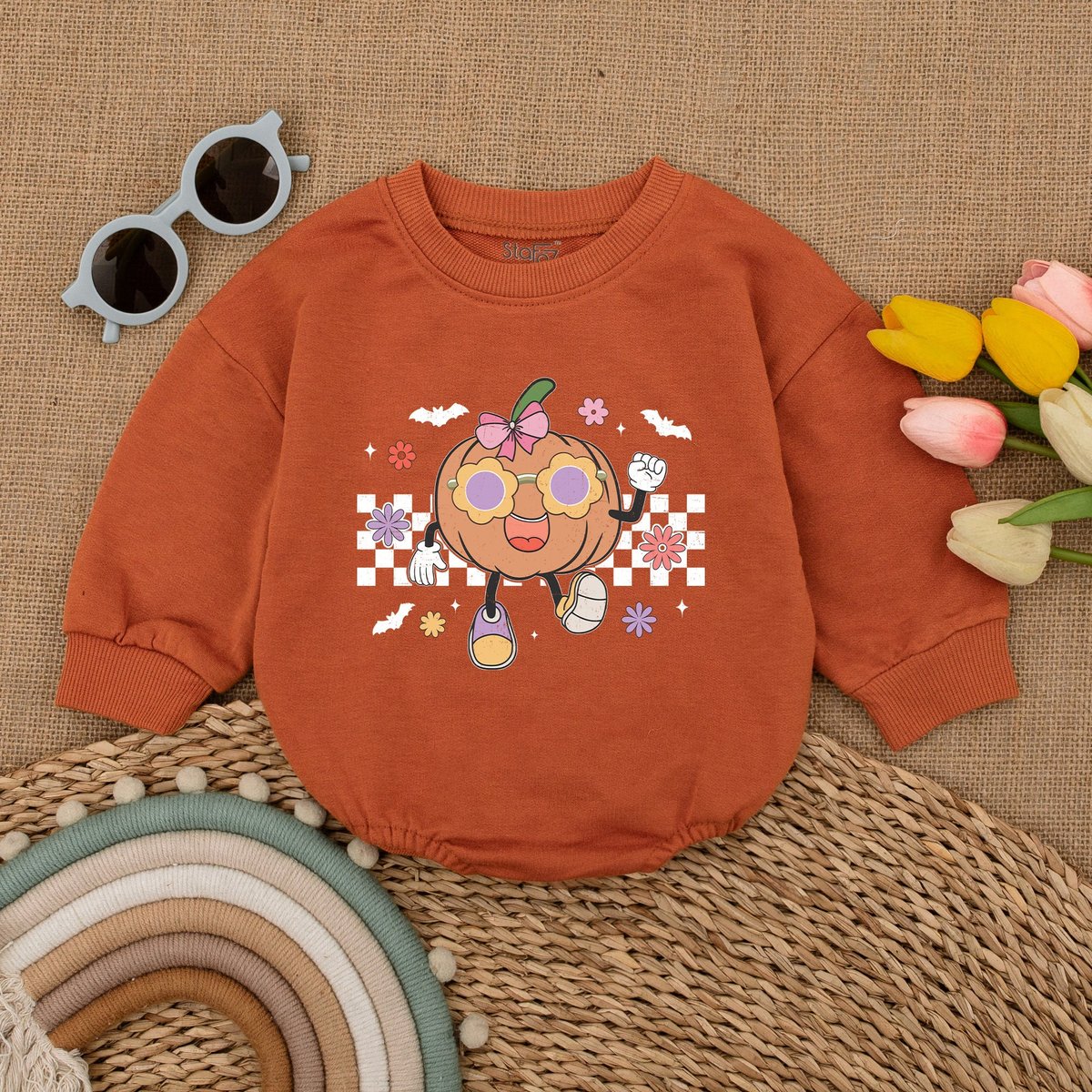 Groovy Pumpkin Halloween Baby Romper Retro Halloween Bodysuit Halloween Girl Fall Baby Outfit Hallow 175