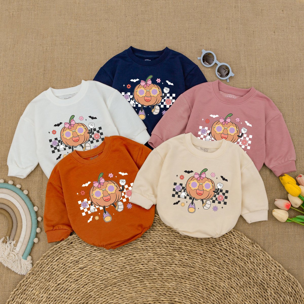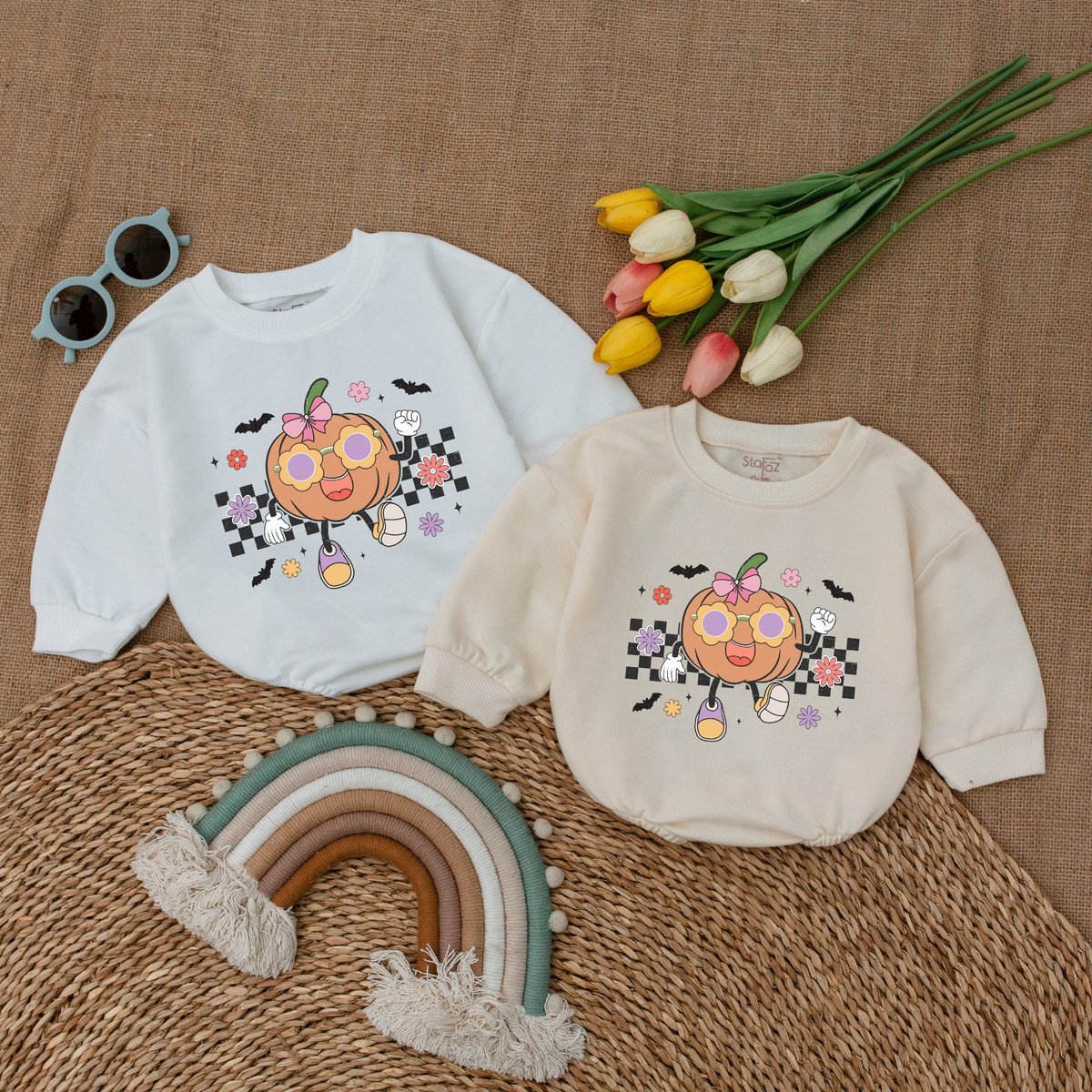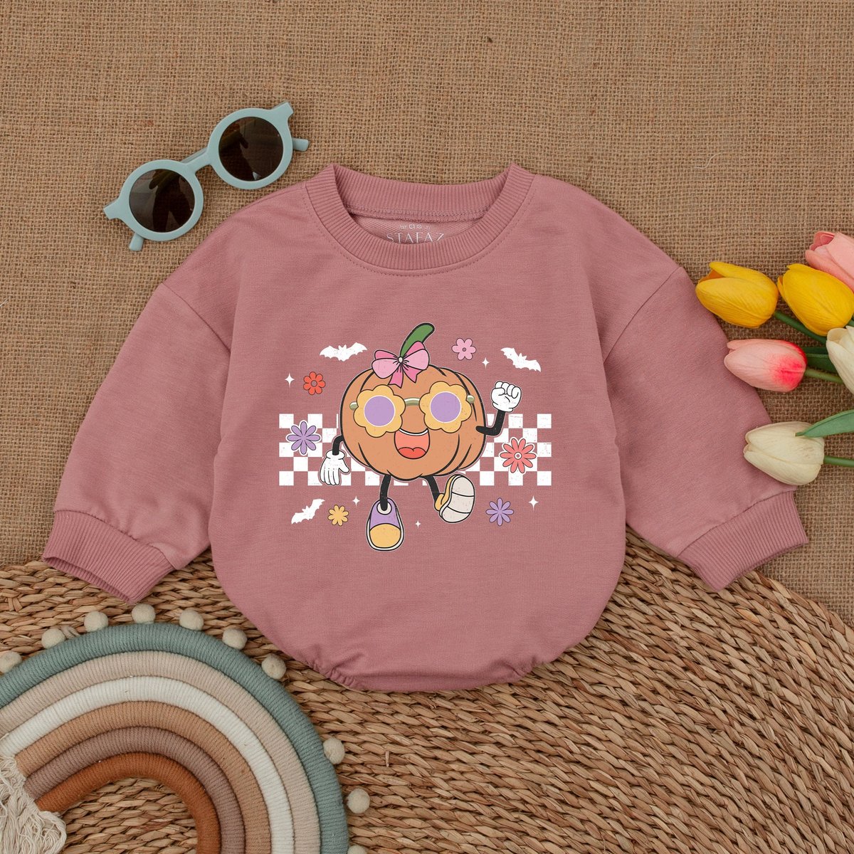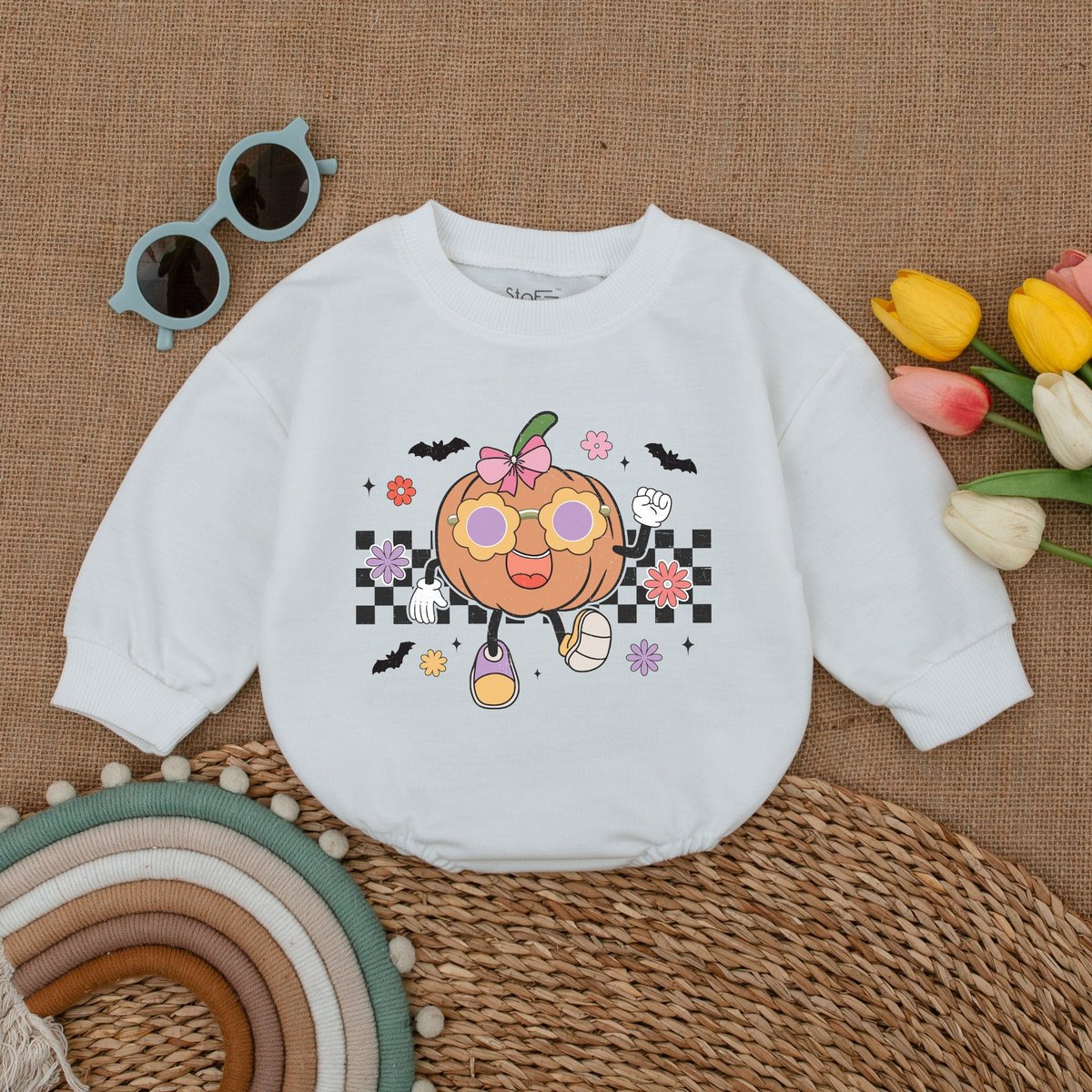 Groovy Pumpkin Halloween Baby Romper Retro Halloween Bodysuit Halloween Girl Fall Baby Outfit Hallow 175