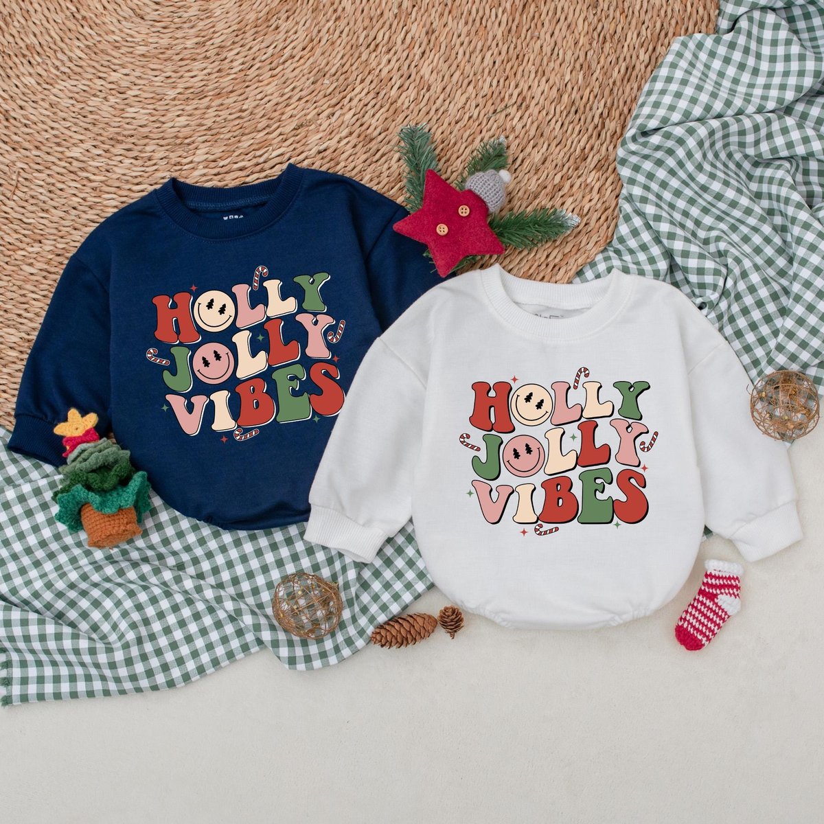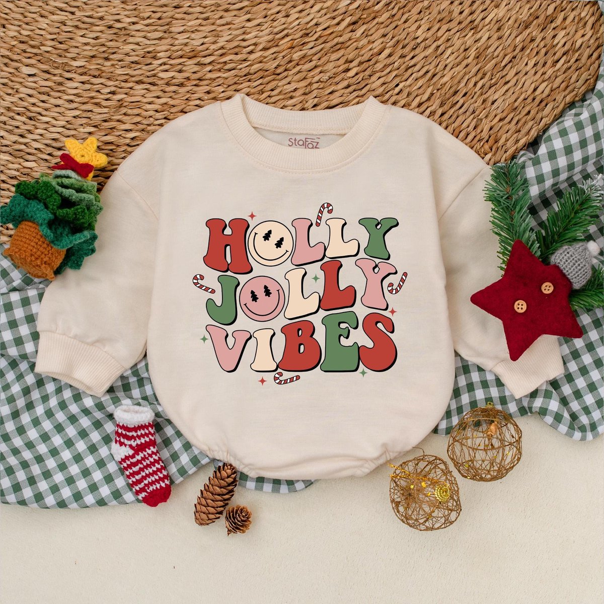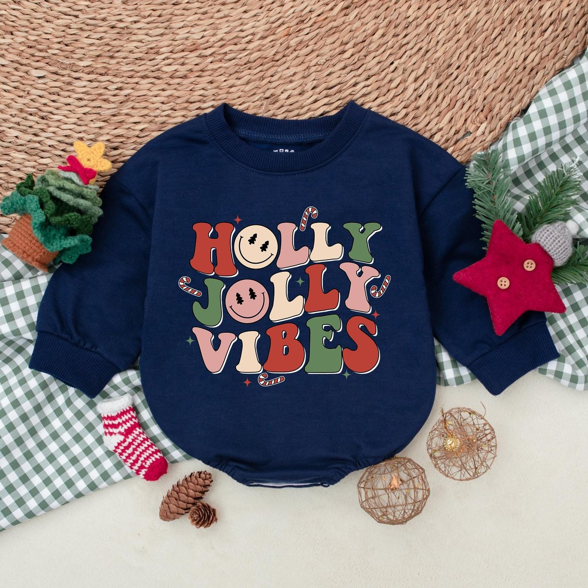 Holly Jolly Vibes Baby Romper Retro Christmas Bodysuit Christmas Baby Clothes Christmas Baby Shower 177