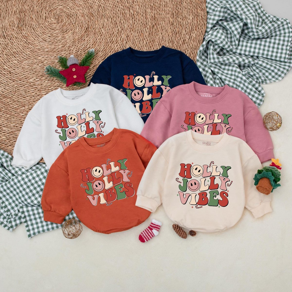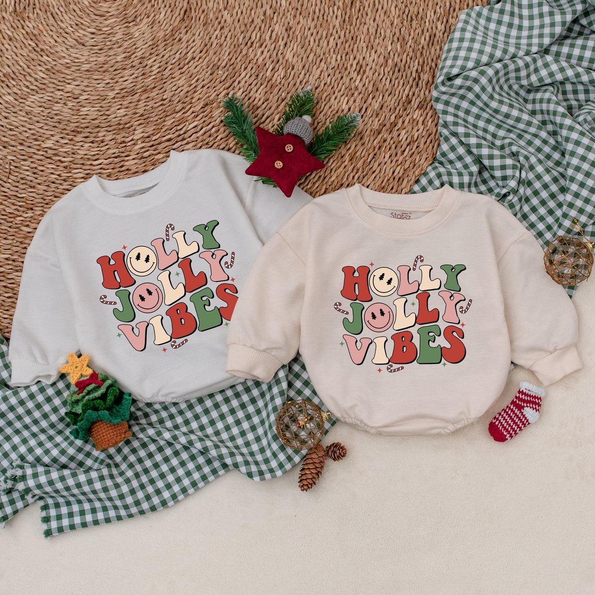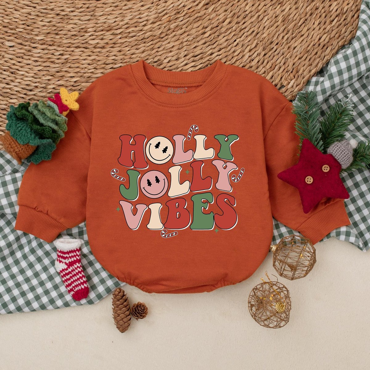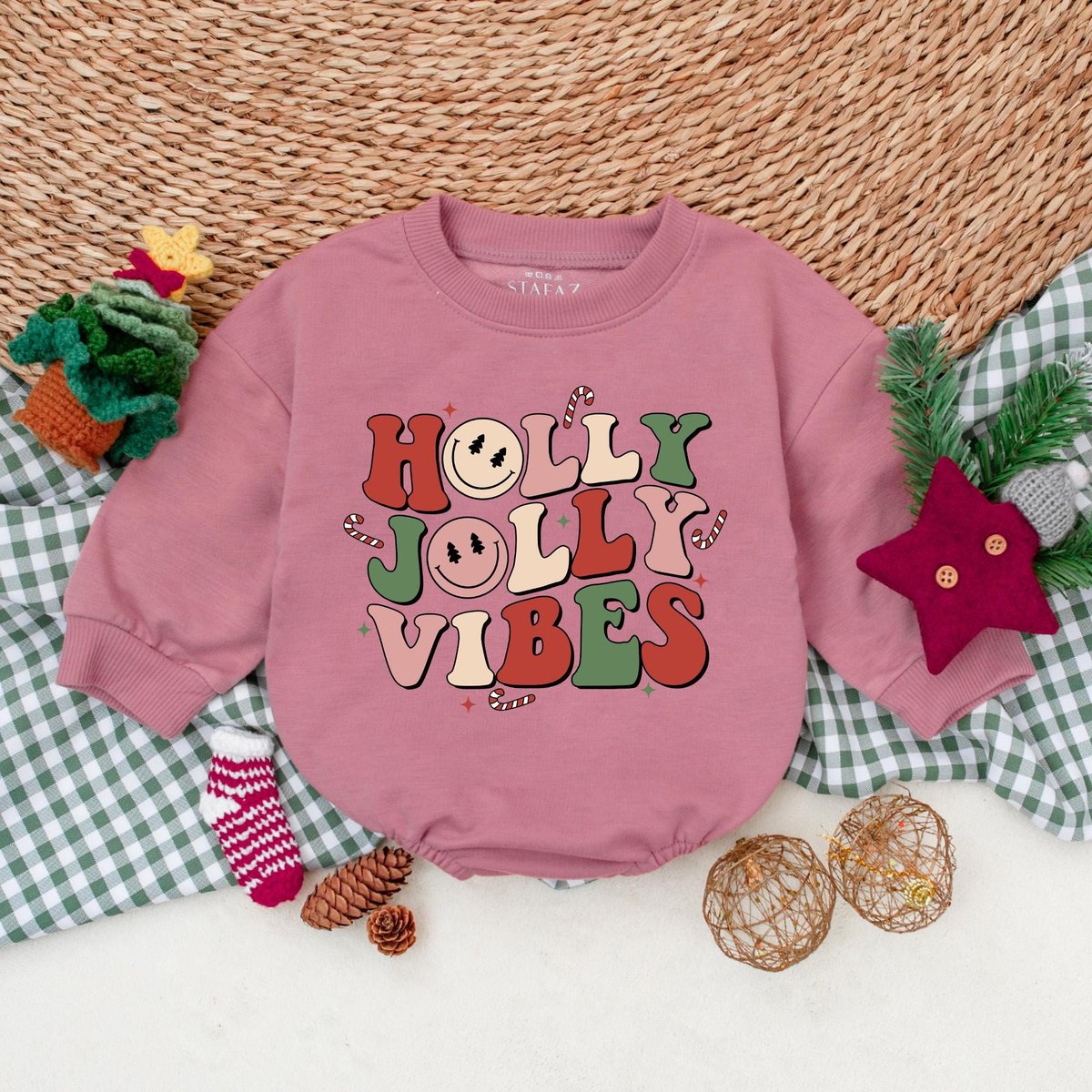 Holly Jolly Vibes Baby Romper Retro Christmas Bodysuit Christmas Baby Clothes Christmas Baby Shower 177
