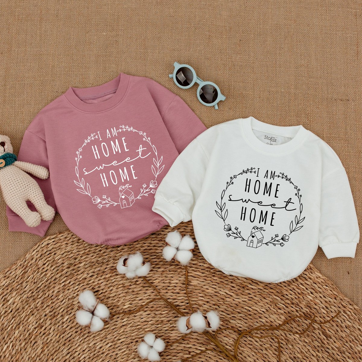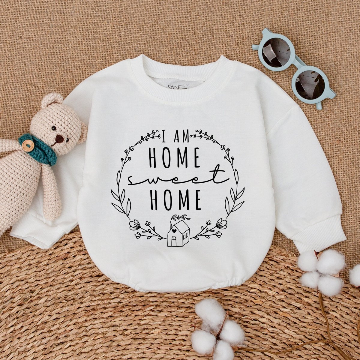 I Am Home Sweet Home Romper Minimal Baby Bodysuit Bubble Romper New Baby Bodysuit Pregnancy Announce 172