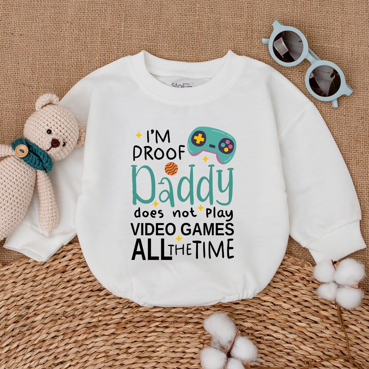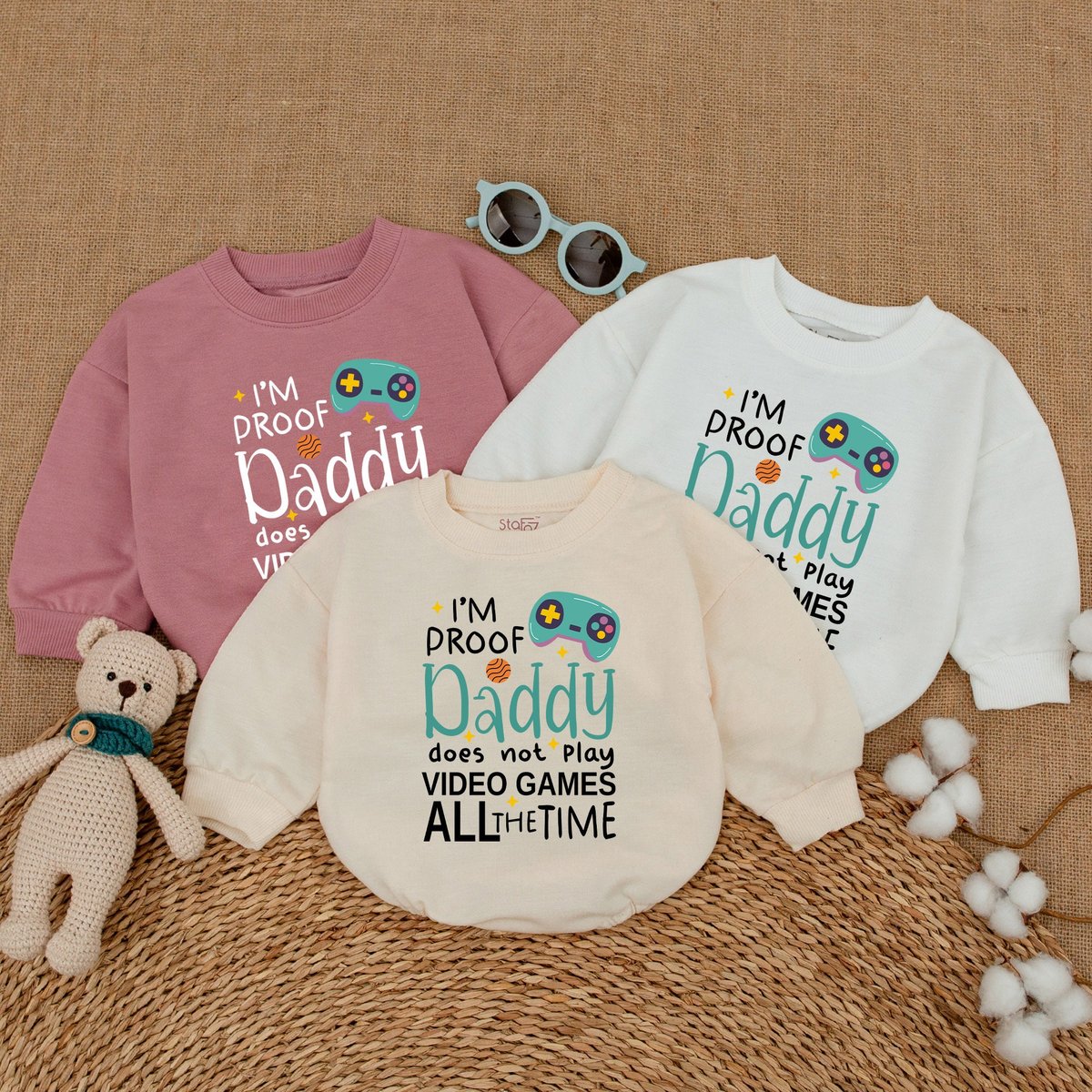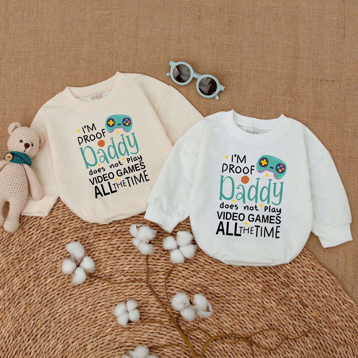 I Proof Daddy Does Not Play Video Game All The Time Romper Father’s Day Bodysuit Gamer Daddy Clothe 170