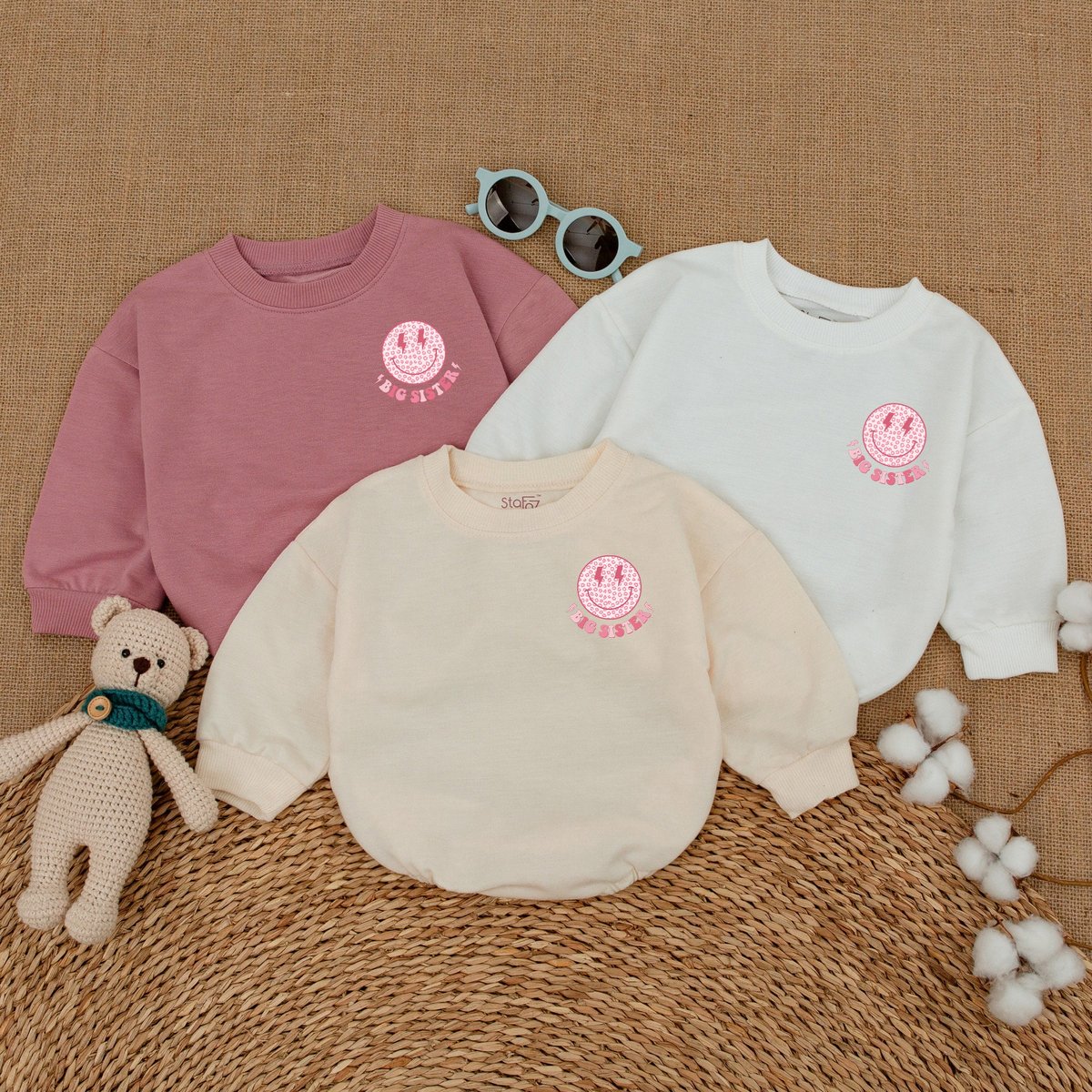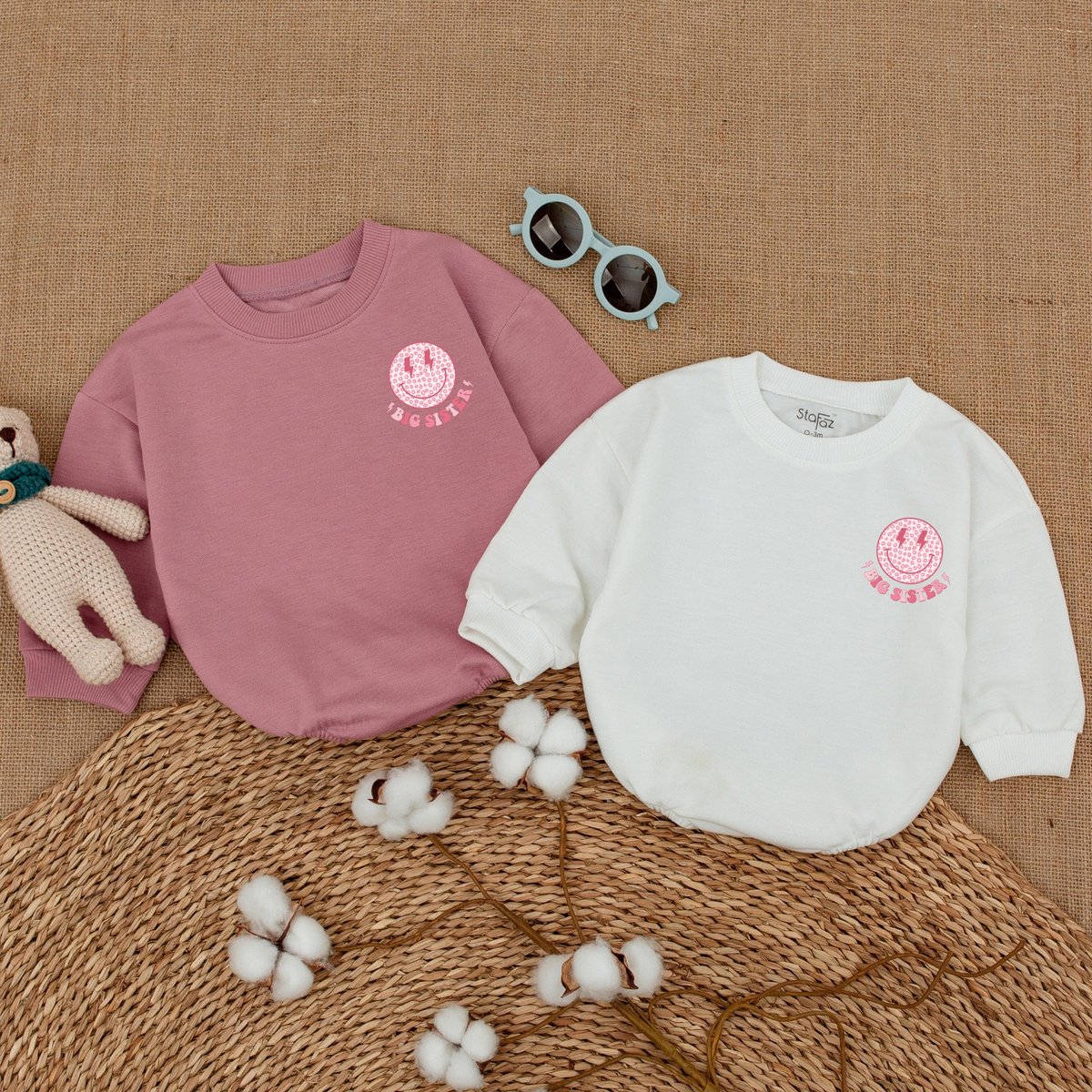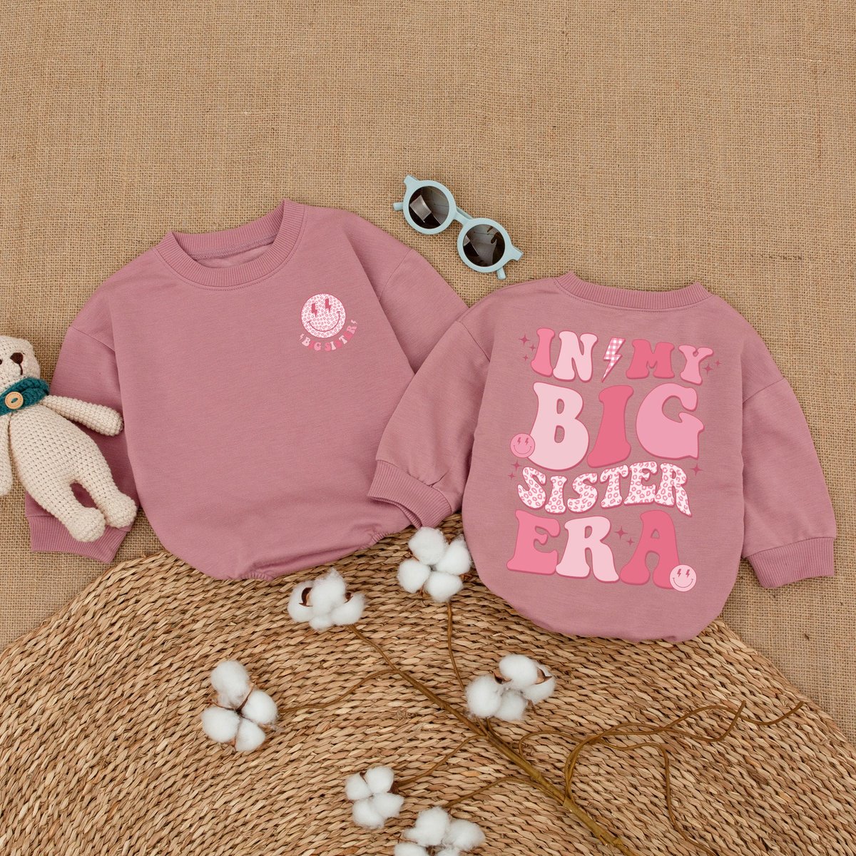 In My Big Sister Era Romper Pink Big Sister Era Bodysuit Smiley Face Wavy Stacked Smiley Face Big Si 173