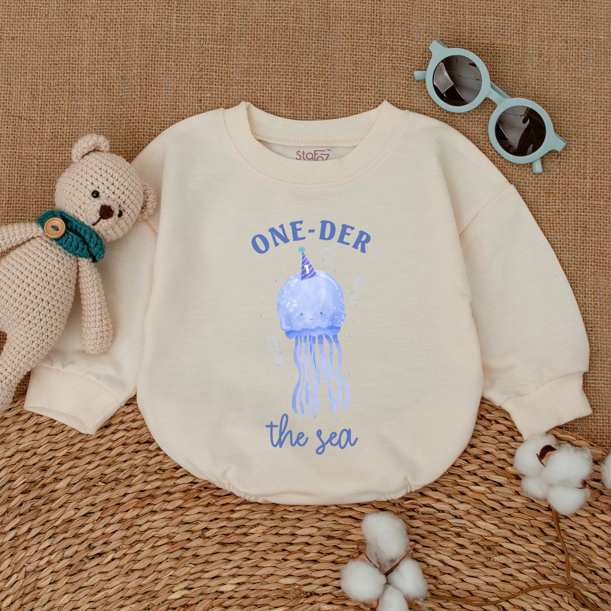 Jellyfish Oneder The Sea Romper Jellyfish Birthday Bodysuit Ocean Party Oneder the Sea Outfit First 171