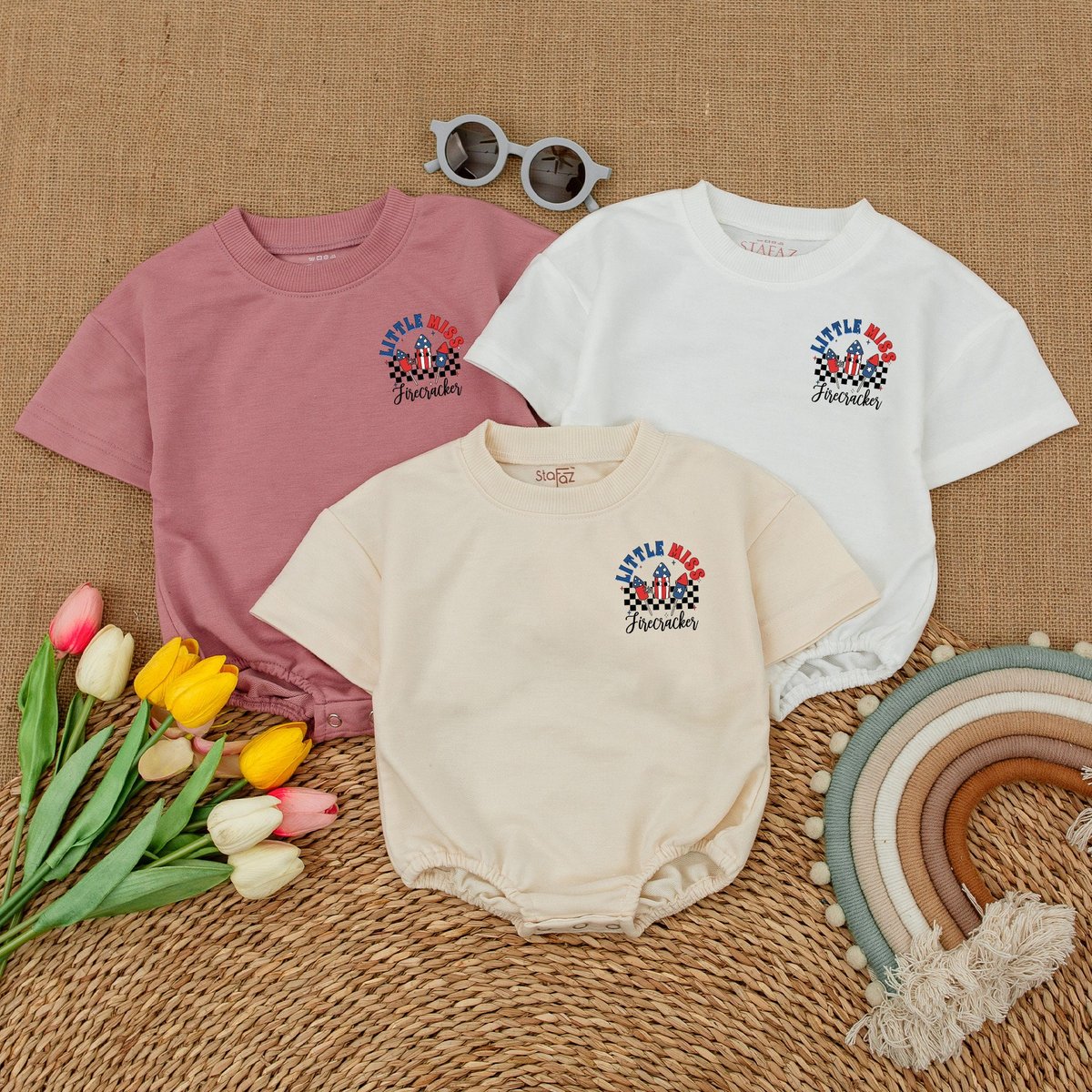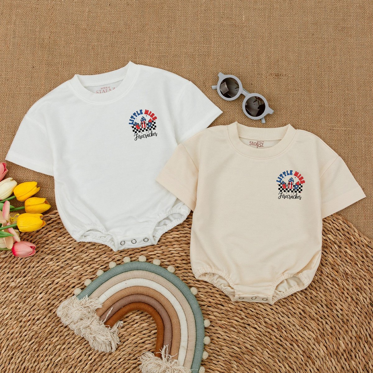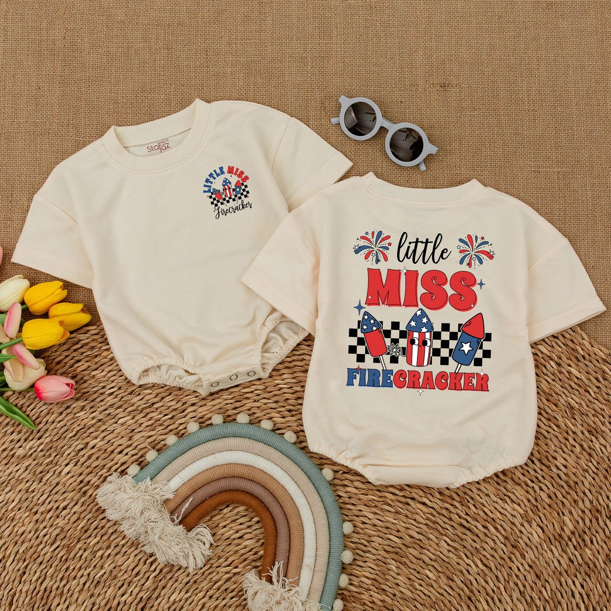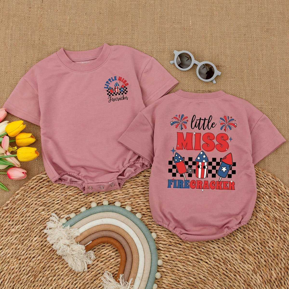 Little Miss Firecracker Baby Bodysuit American Baby Girl Romper Groovy 4th of July Clothes Independe 173