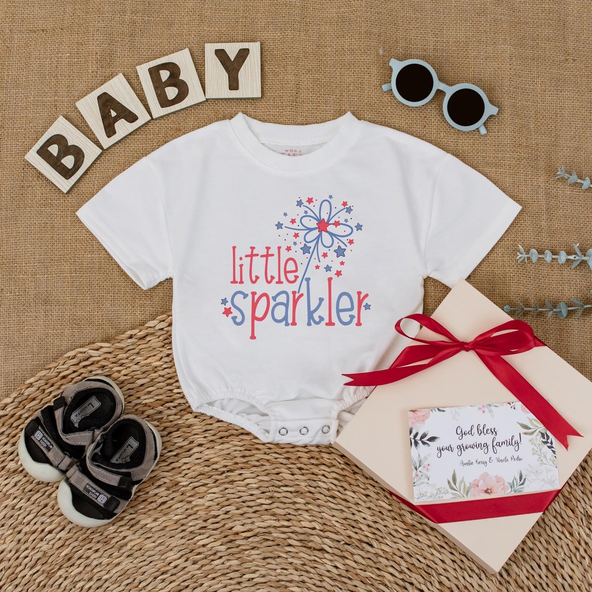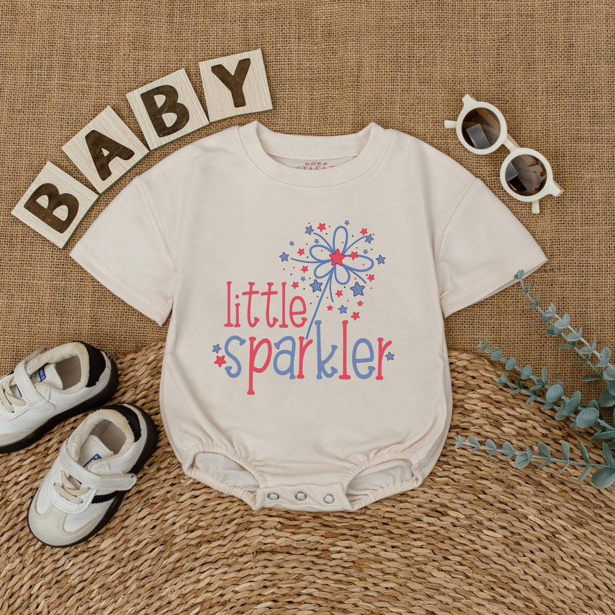 Little Sparkler Baby Romper Little Firecracker Bodysuit 4th of July Clothes Patriotic Outfit Newborn 171