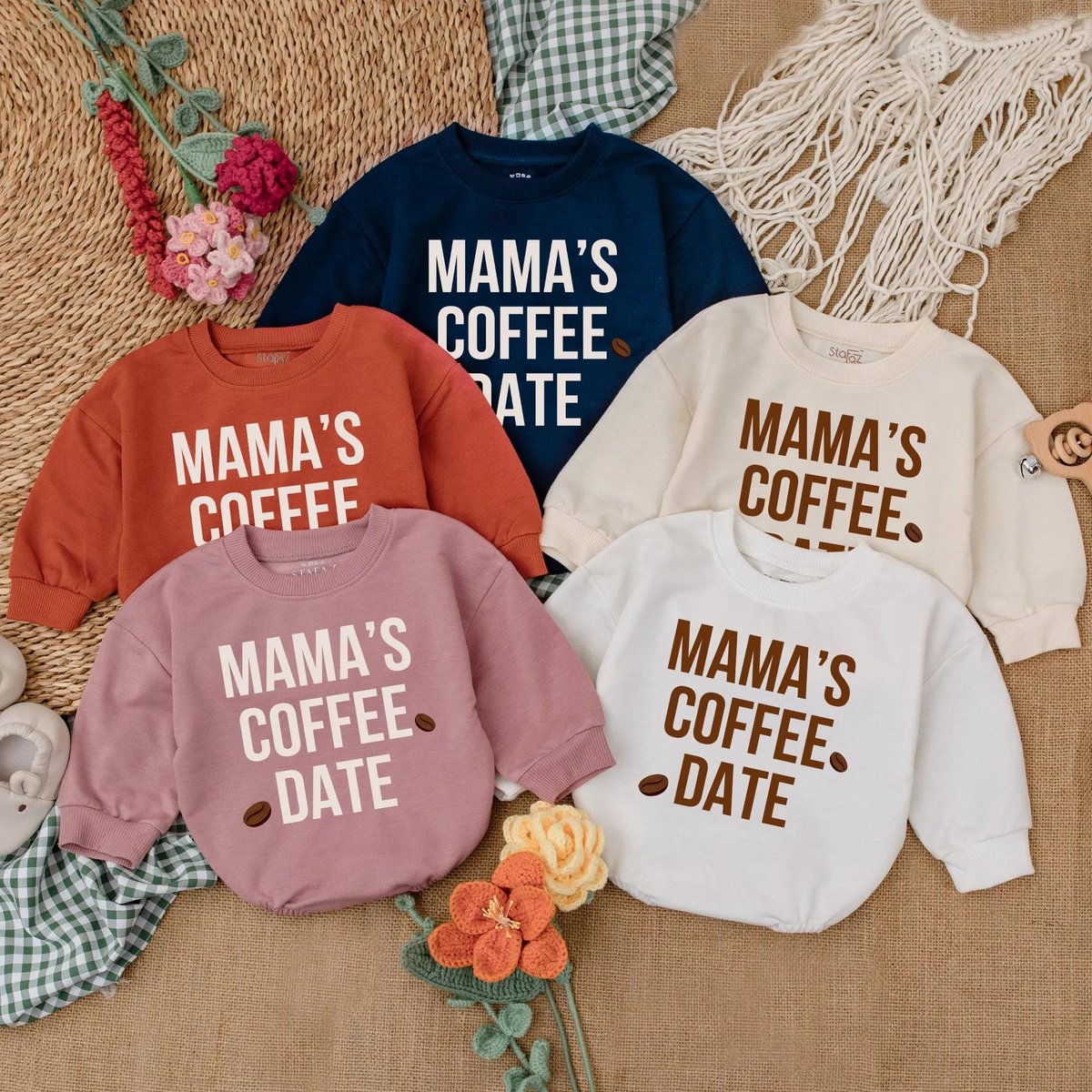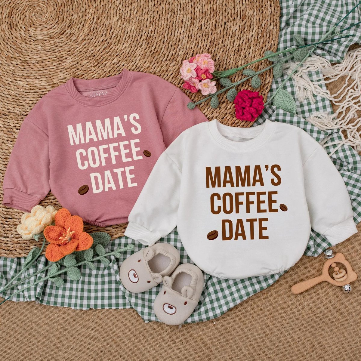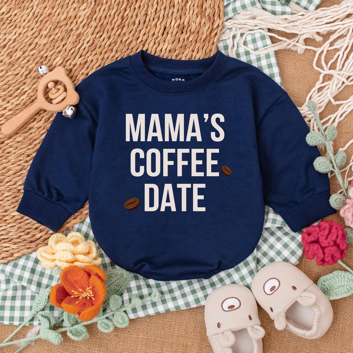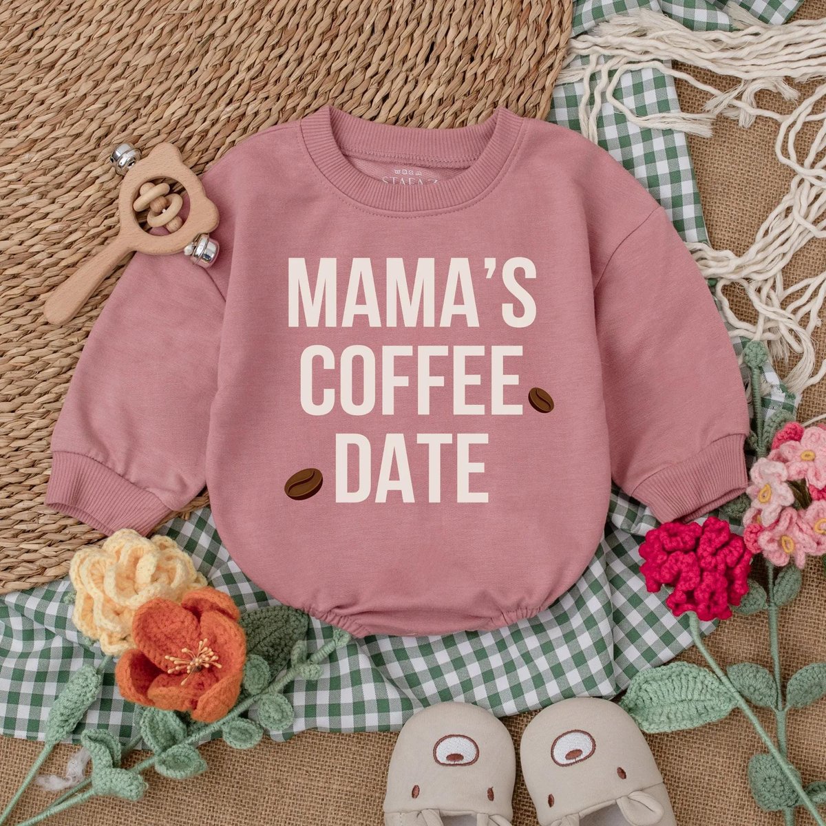 Mamas Coffee Date Baby Bubble Romper Little Bean Baby Bodysuit Long Sleeve Baby Outfit Minimalist Ba 189