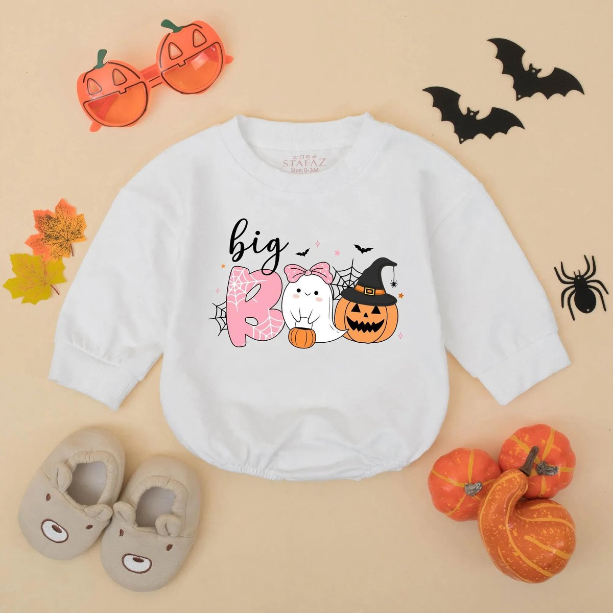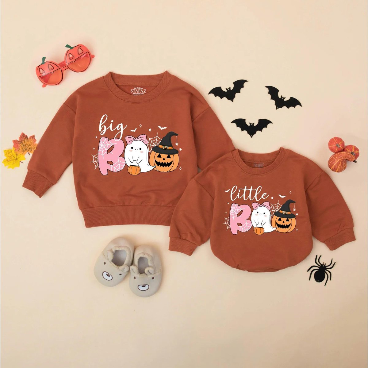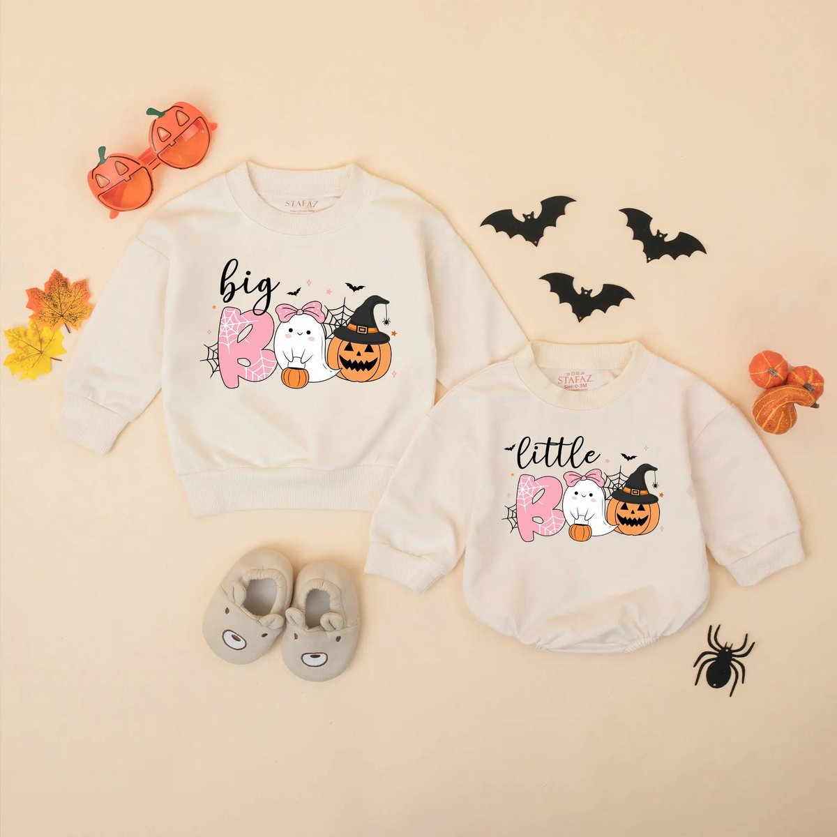 Matching Sister Halloween Boo Sweatshirt Little Boo Baby Romper Sibling Ghost Pumpkin Sweater Family 436