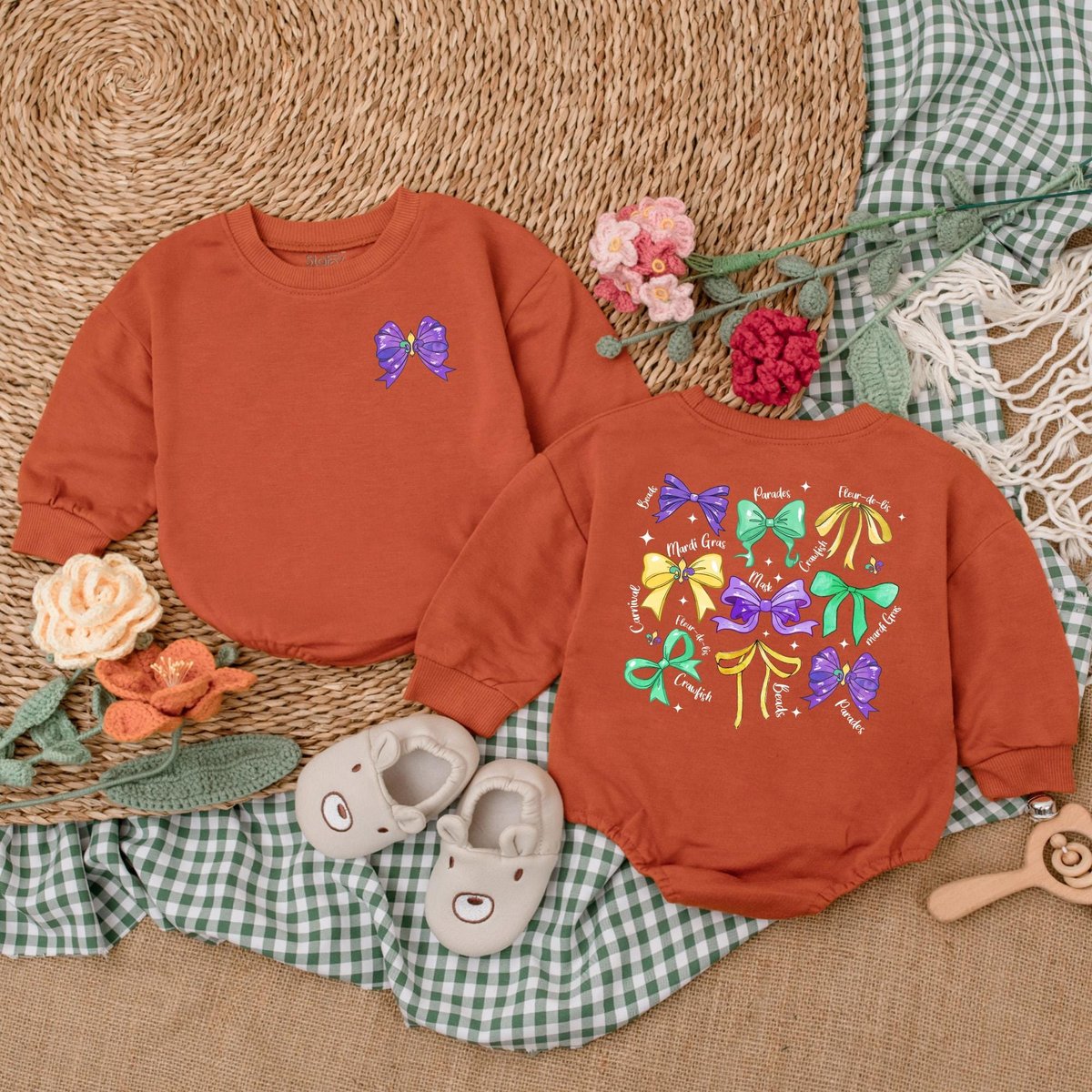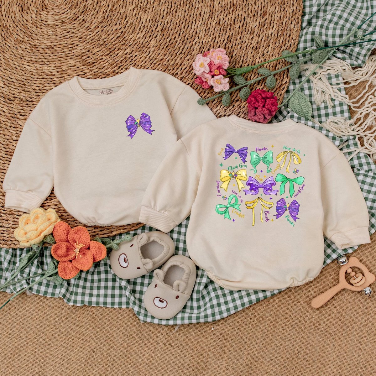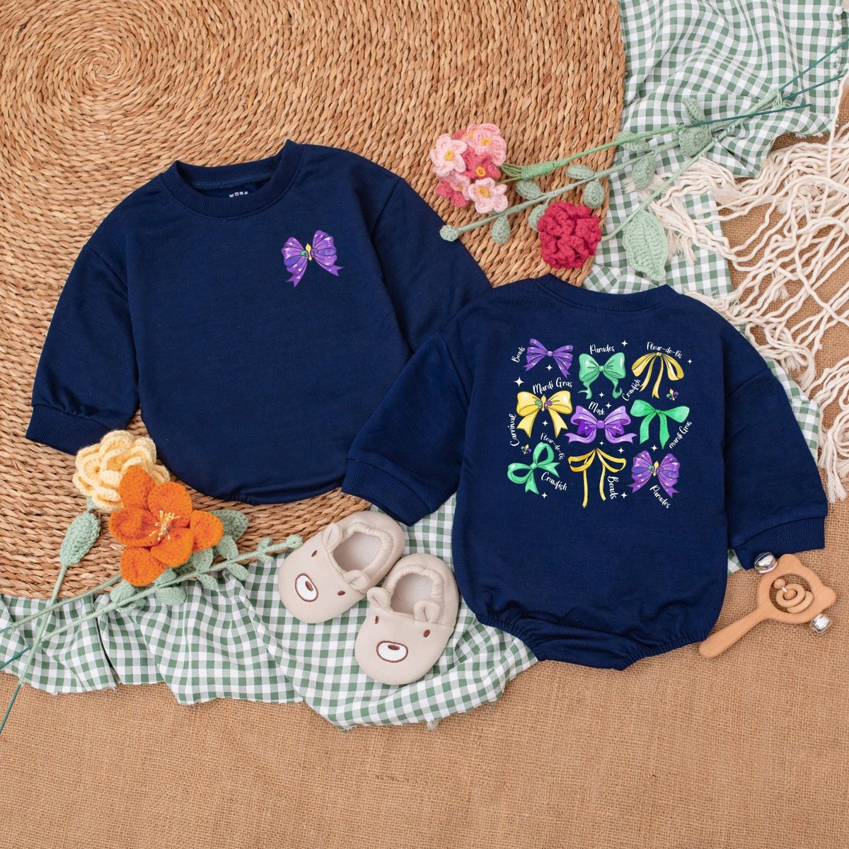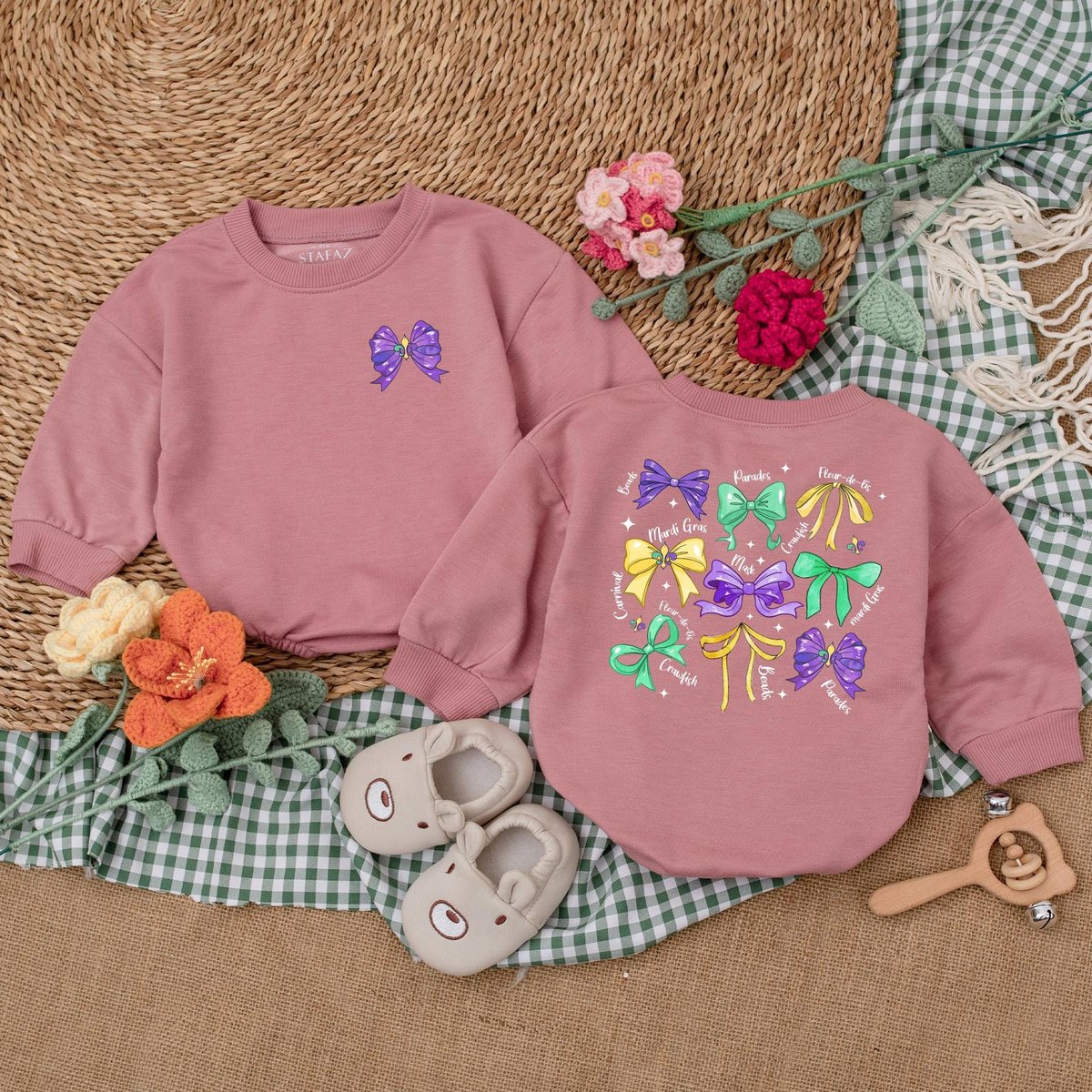 Mardi Gras Bow Baby Romper Cute Mardi Gras Bodysuit Mardi Gras Baby Girl Outfit Sweatshirt Bubble Ro 187