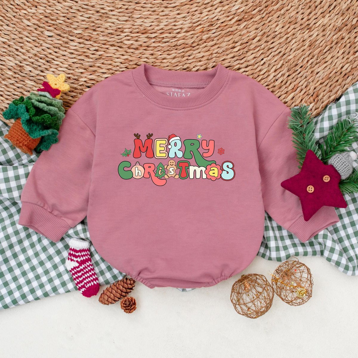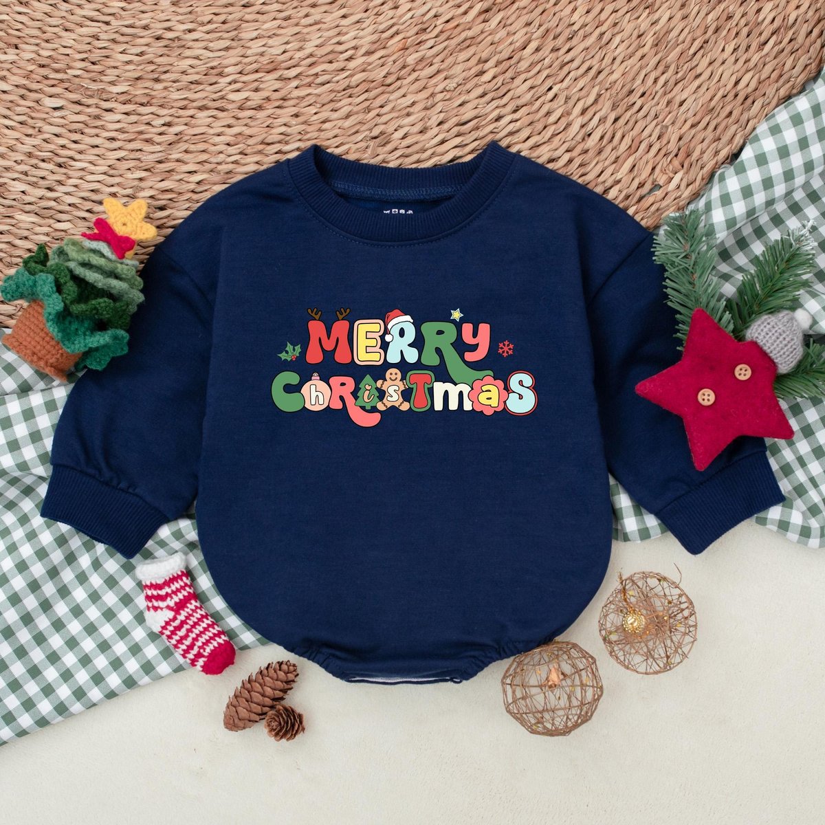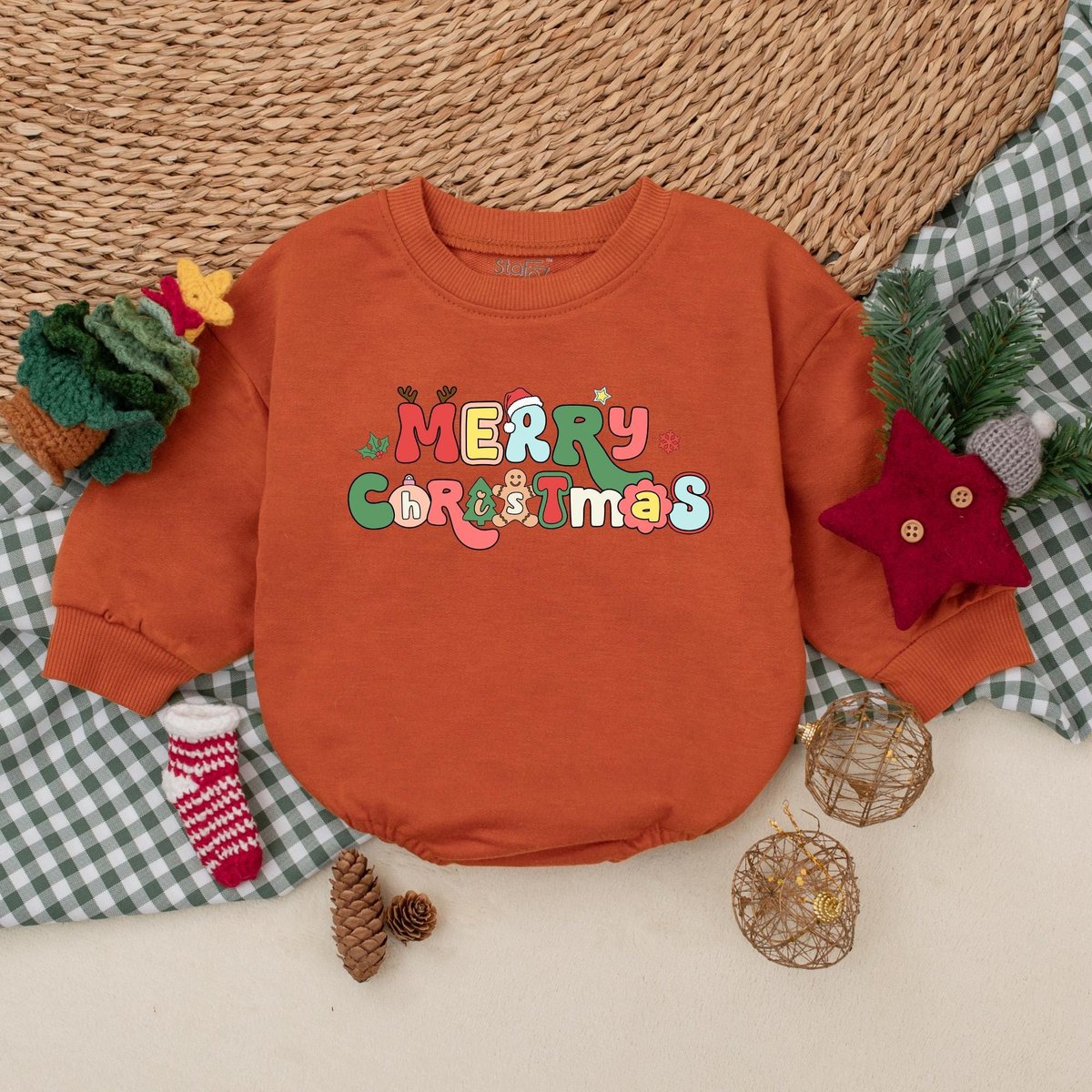 Merry Christmas Romper Christmas Baby Bodysuit Baby Christmas Outfit My First Christmas Sweatshirt R 181