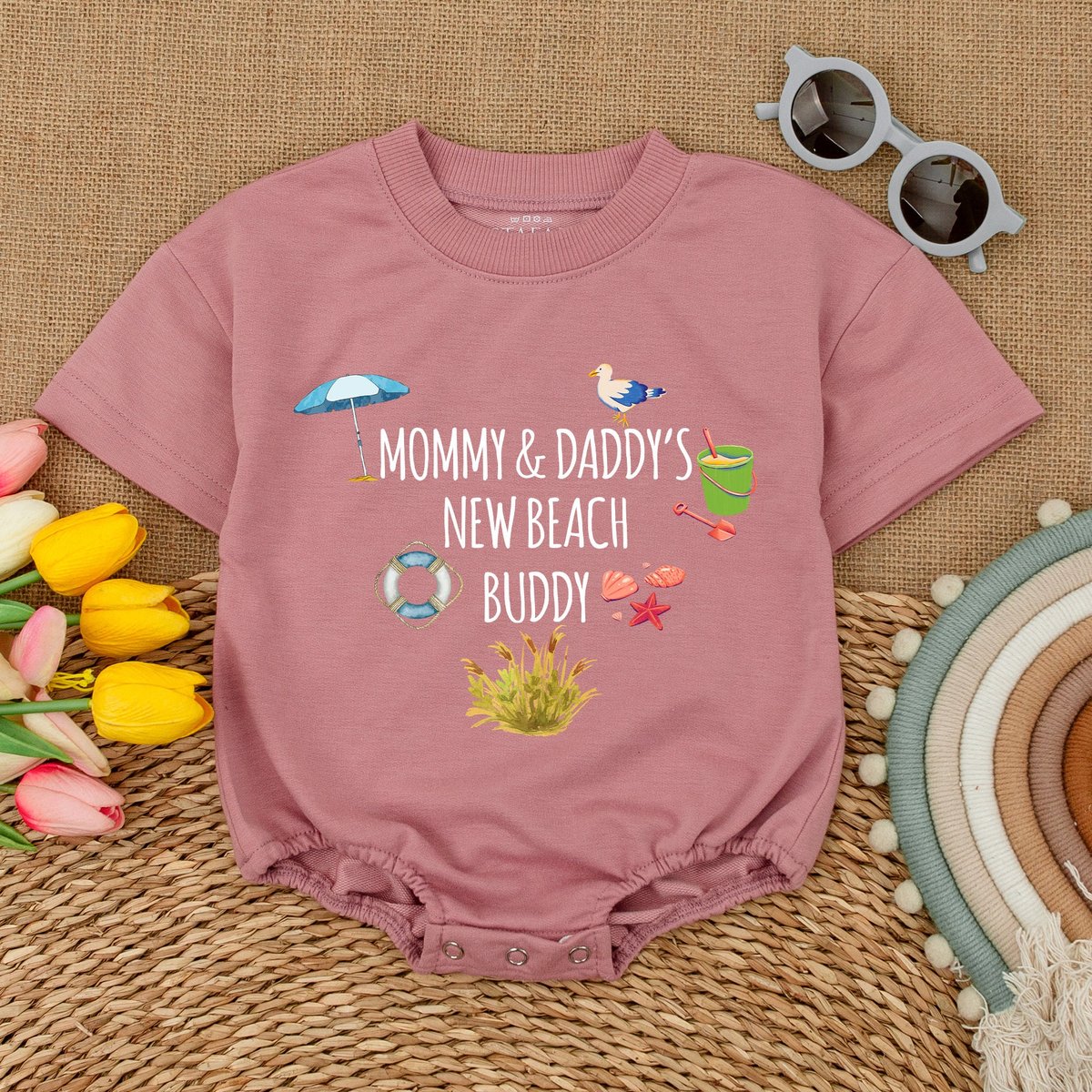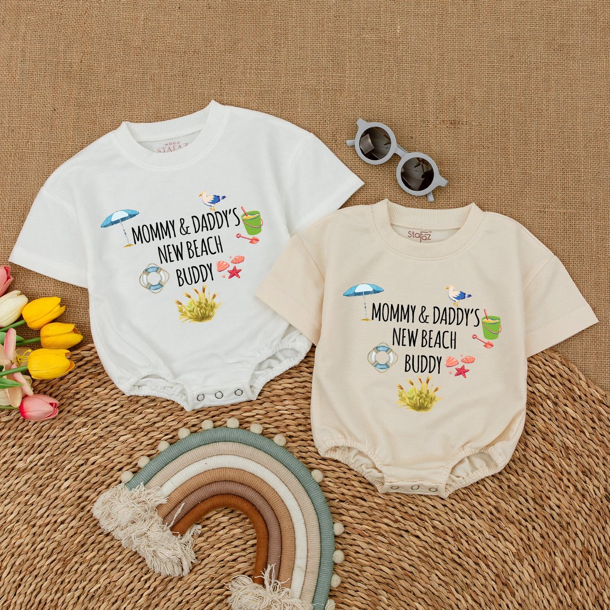 Mommy and Daddy’s New Beach Buddy Bodysuit Beach Baby Romper Nautical Beach Baby Shower Beach Trip 172