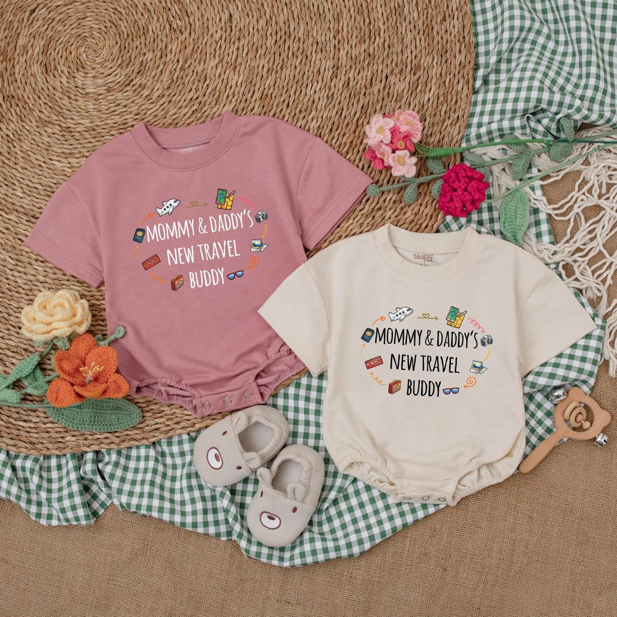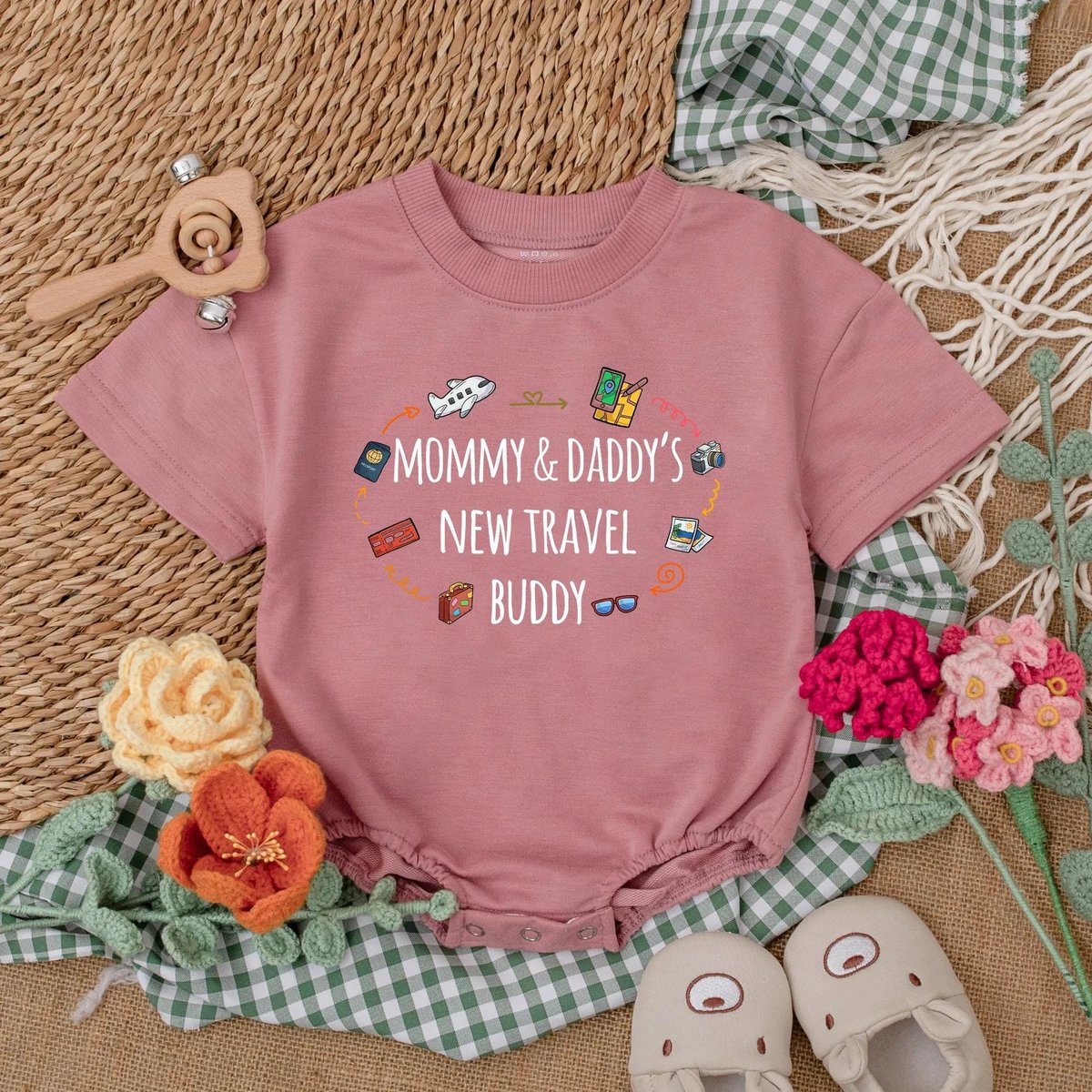 Mommy and Daddy’s New Travel Buddy Bubble Romper Future Traveler Baby Bodysuit Baby Vacation Outfit 190