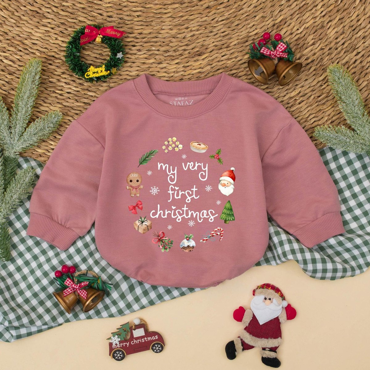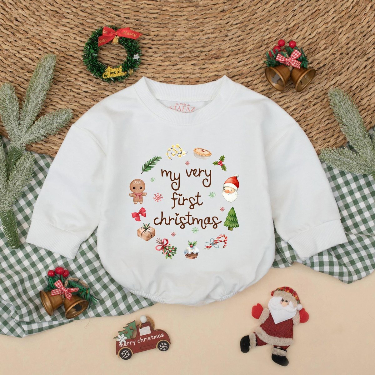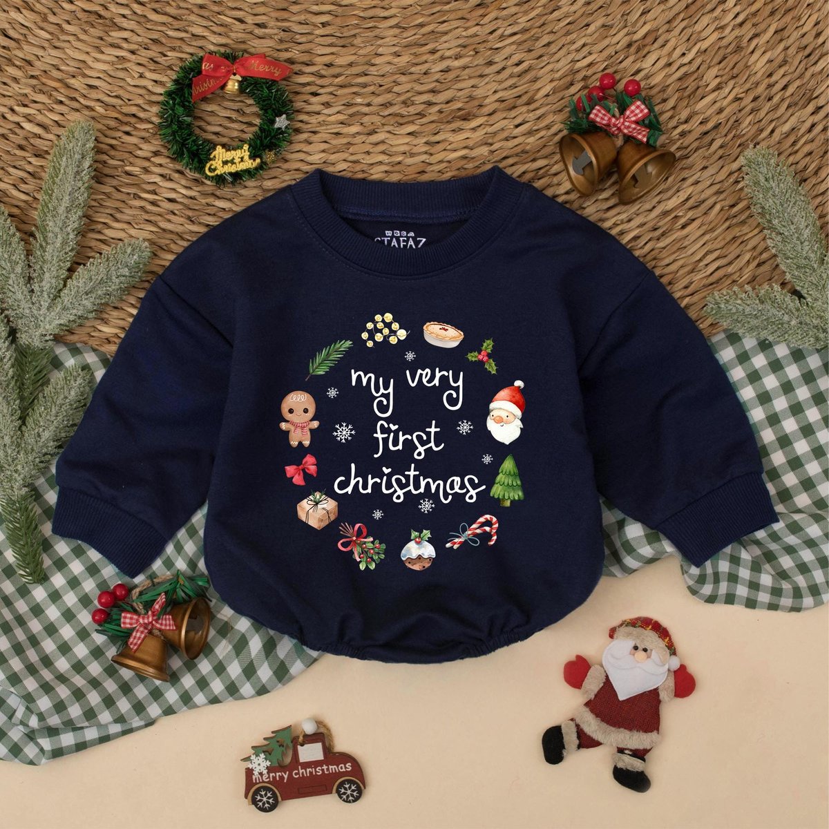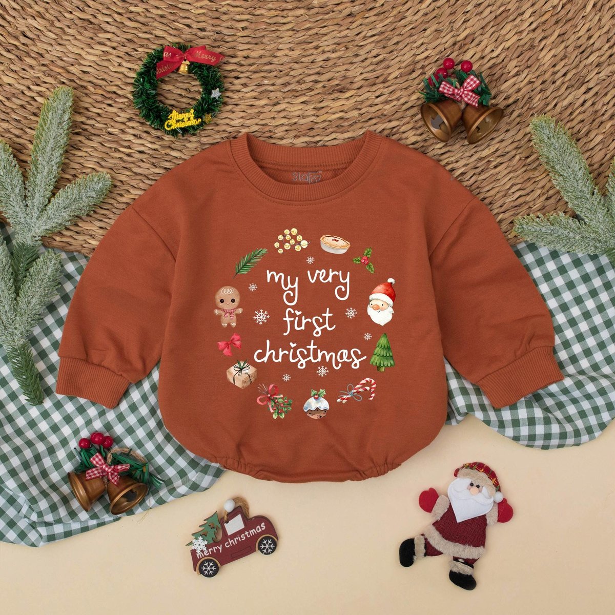 My First Christmas Baby Bubble Romper Newborn Christmas Bodysuit Infant Holiday Outfit Cute Baby Gir 436