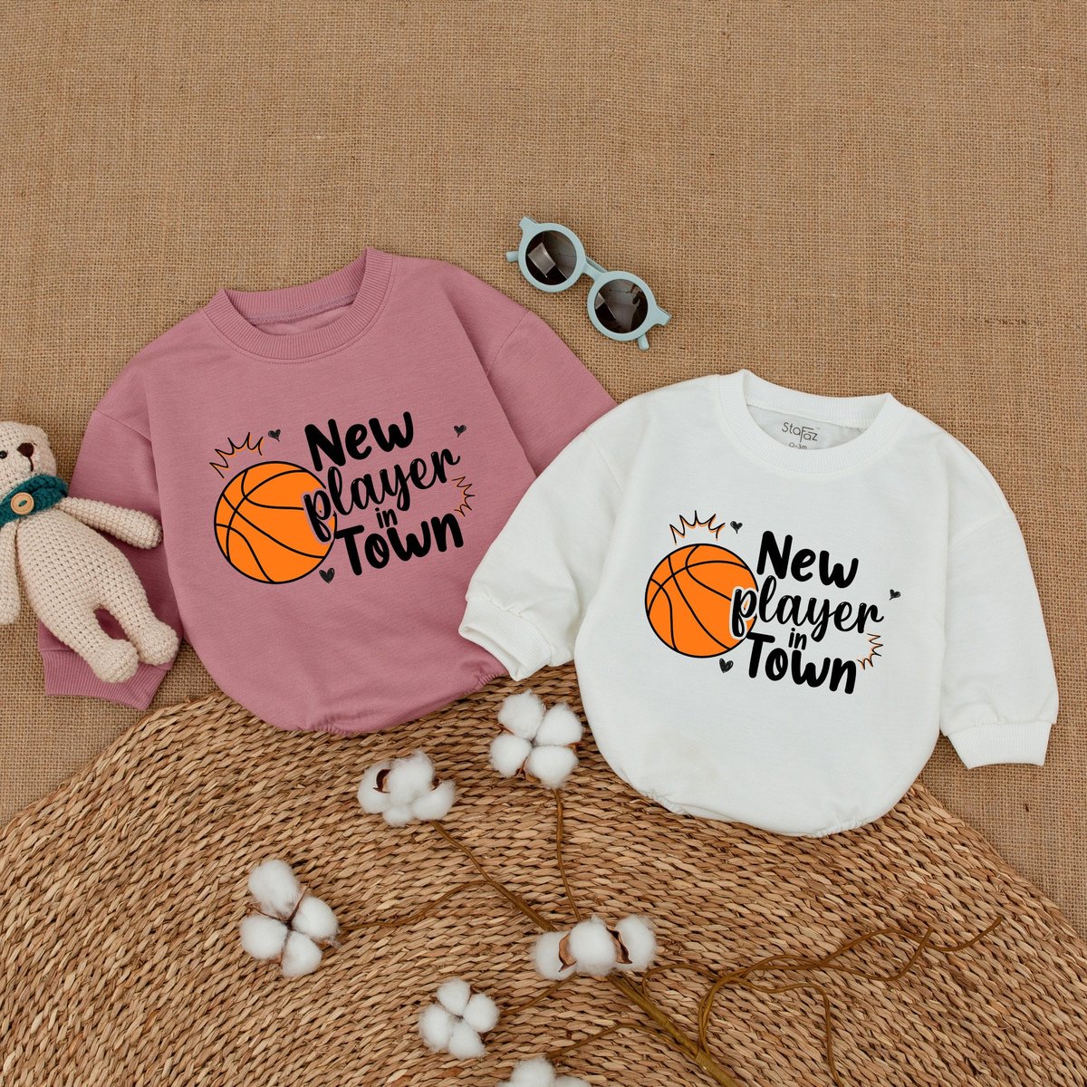 New Player In Town Baby Romper Baby Basketball Bodysuit Funny Basketball Clothes Baby Boy Bubble Rom 171