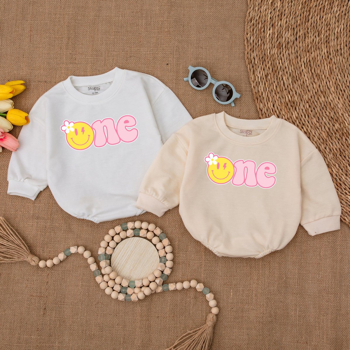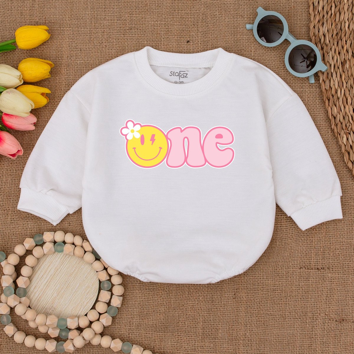 One Happy Girl Romper Daisy Birthday Bodysuit Matching Family Birthday Smiley Face Birthday Outfit B 171