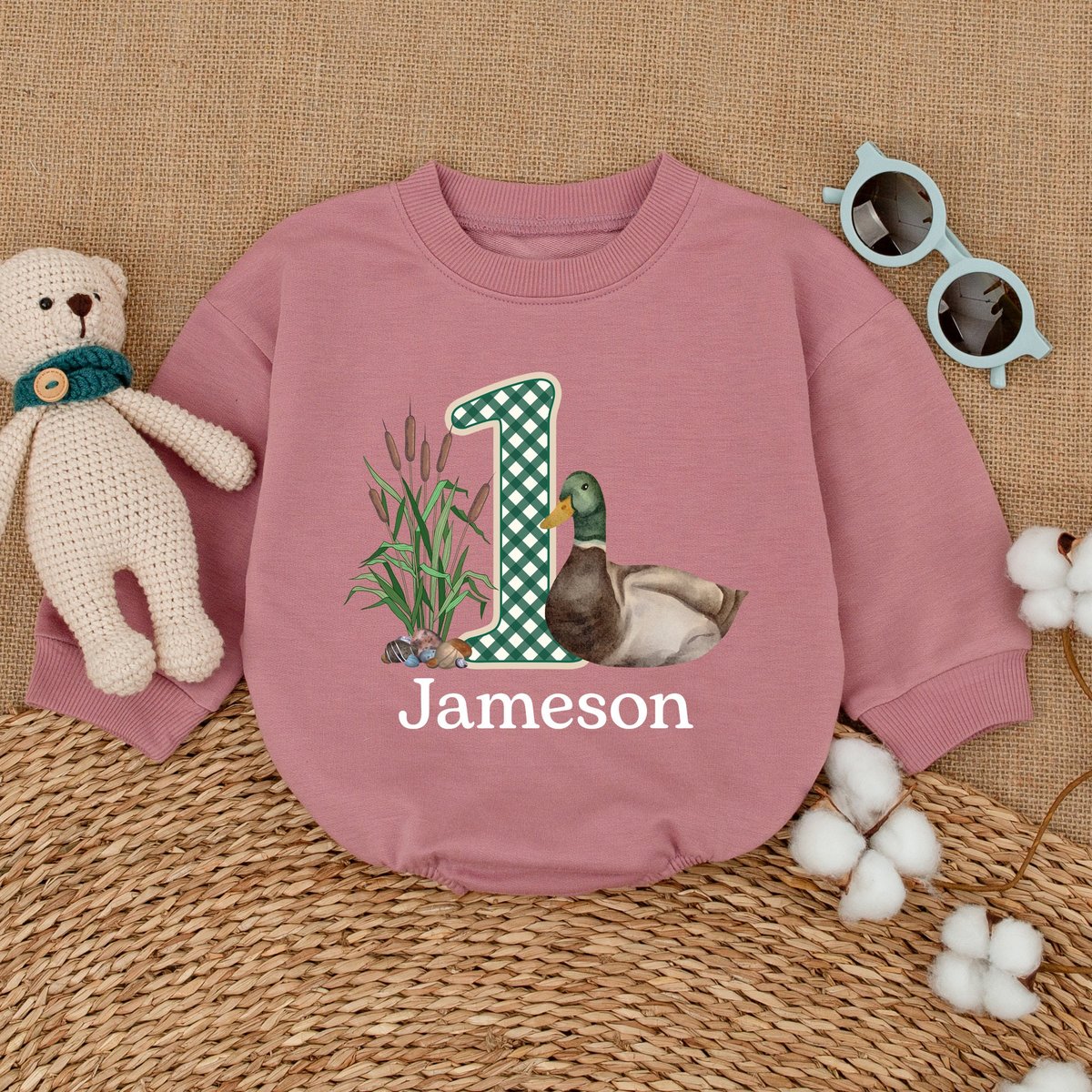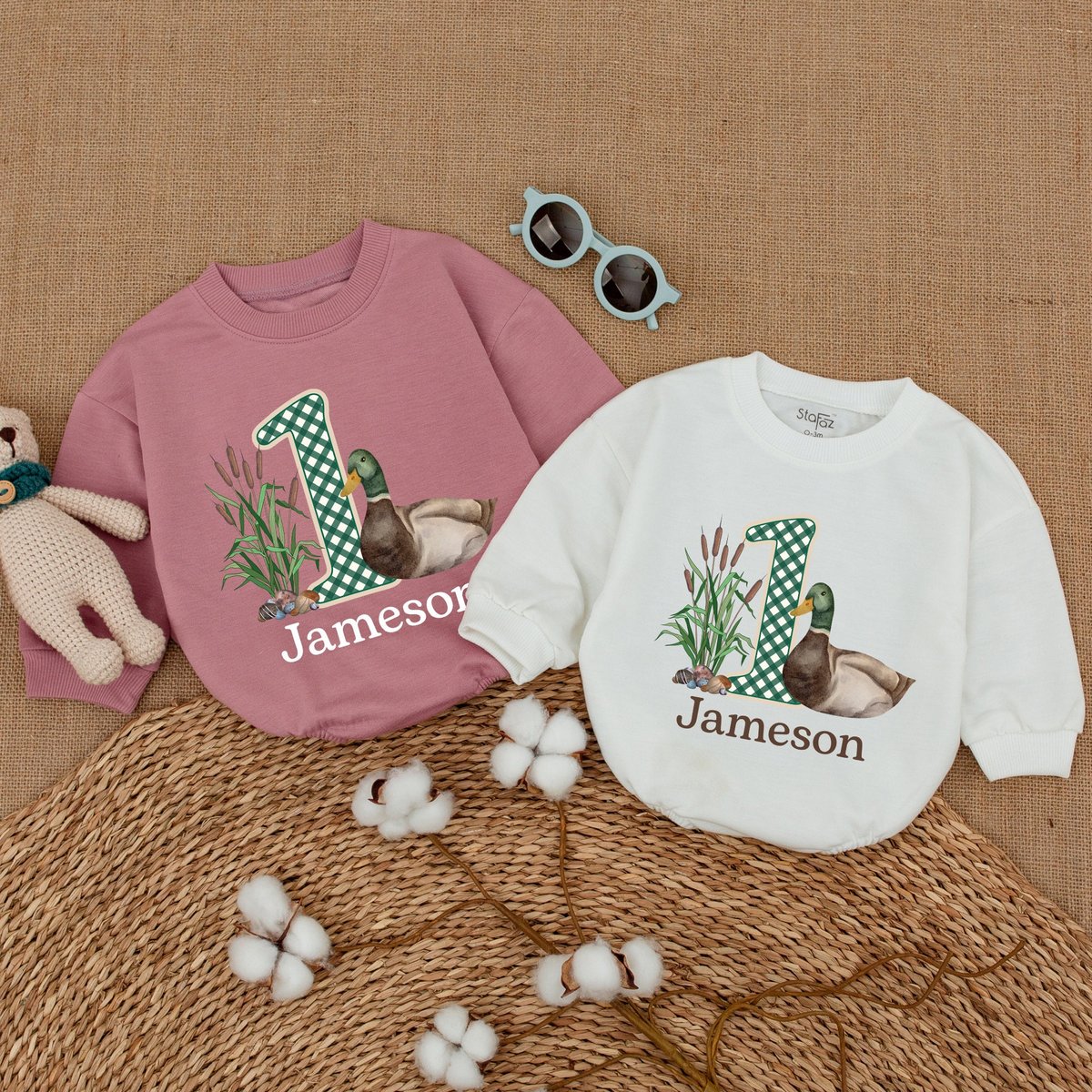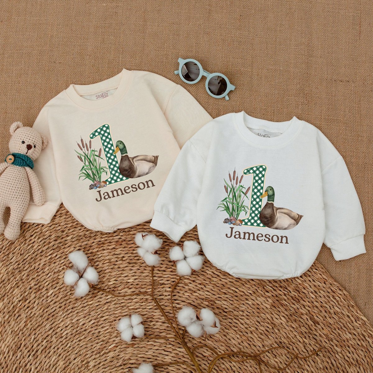 One Lucky Duck Birthday Romper Mallard Duck Birthday Bodysuit Duckling Bodysuit Bubble Romper Infant 171
