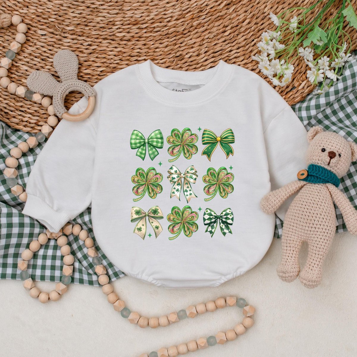 Patrick’s Day Bow Baby Romper Green Clover Bow Baby Bodysuit St Patrick’s Day Romper Baby Patrick3 186