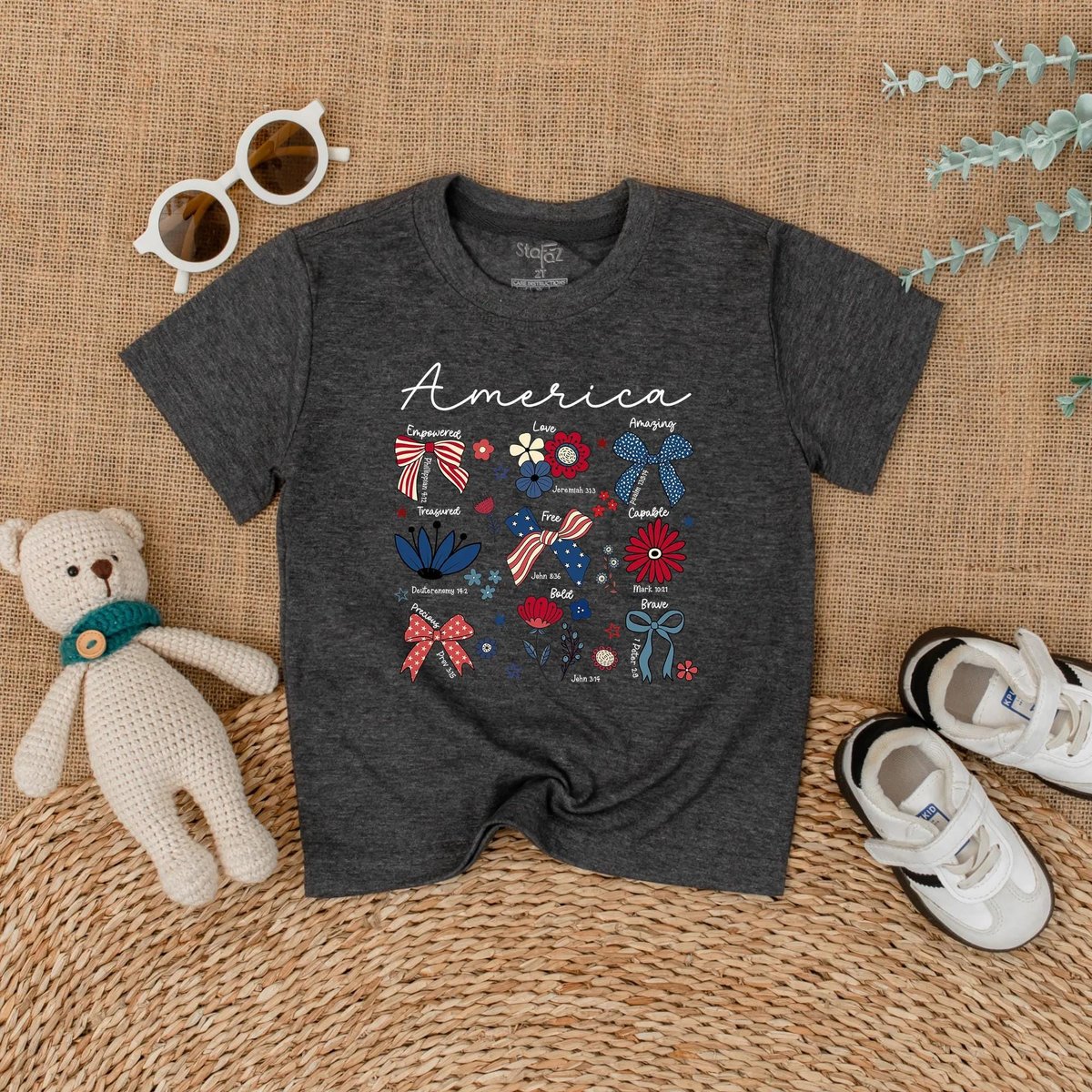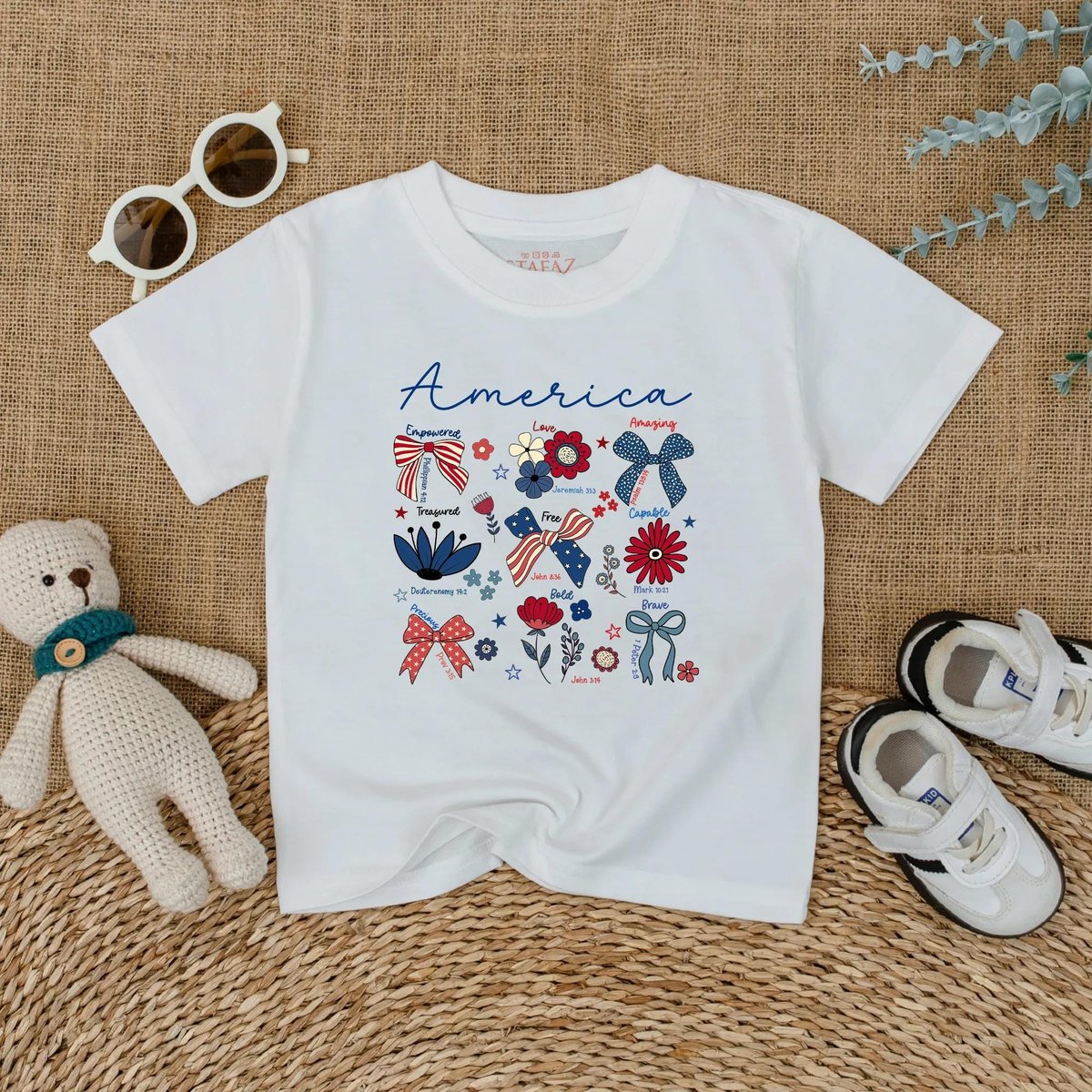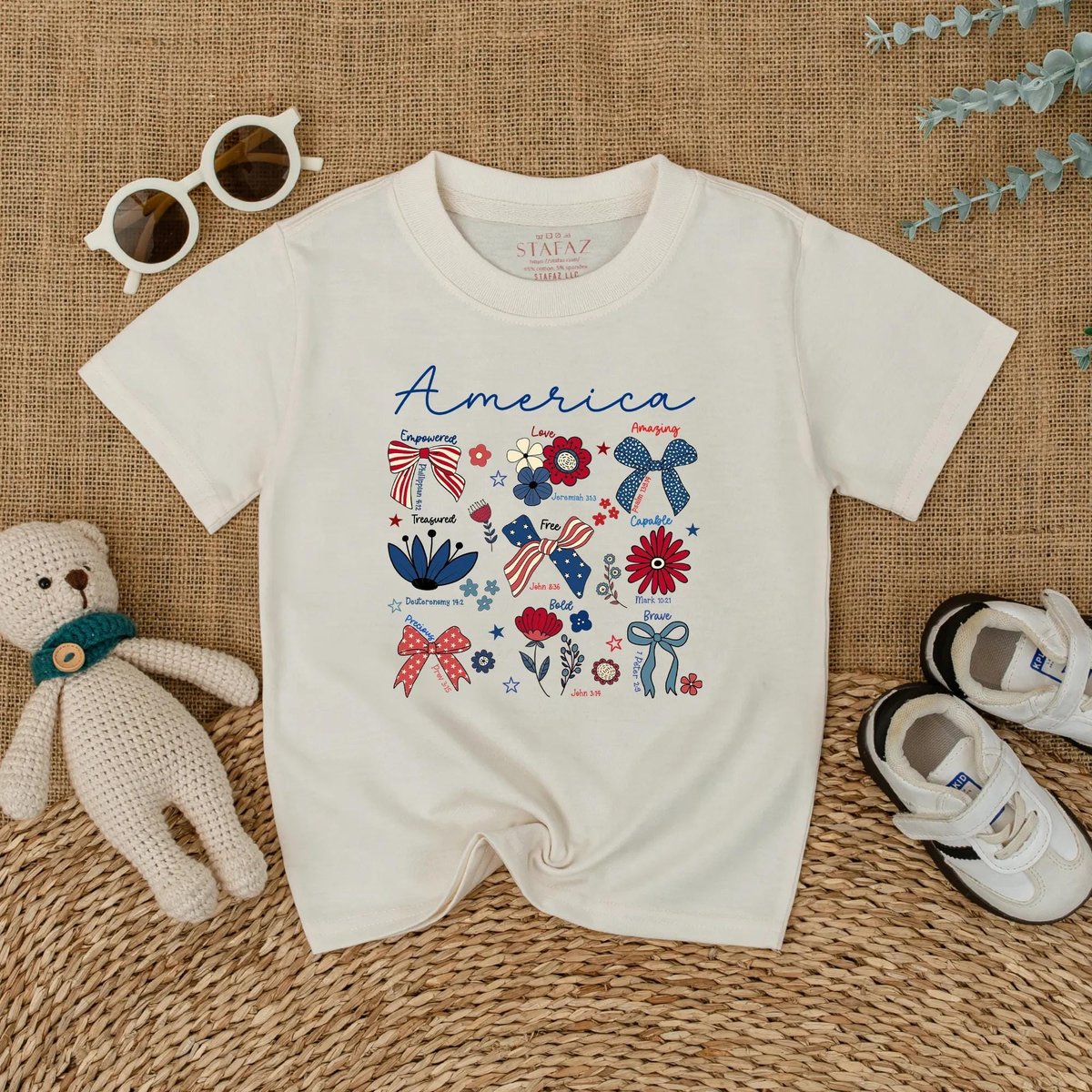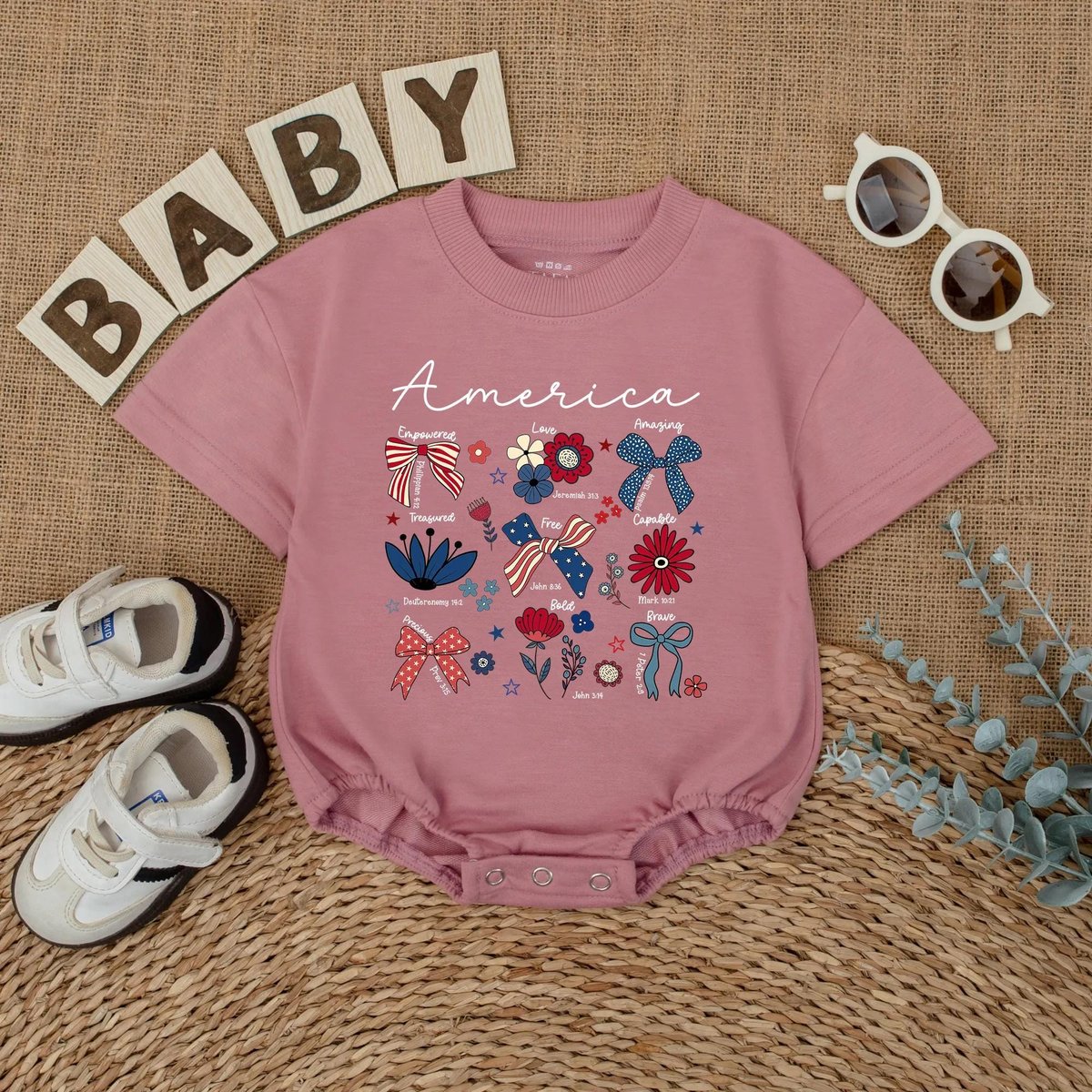 Patriotic Bows Baby Romper 4th of July Baby Girl Outfit Patriotic Floral Infant Bodysuit USA Summer 432