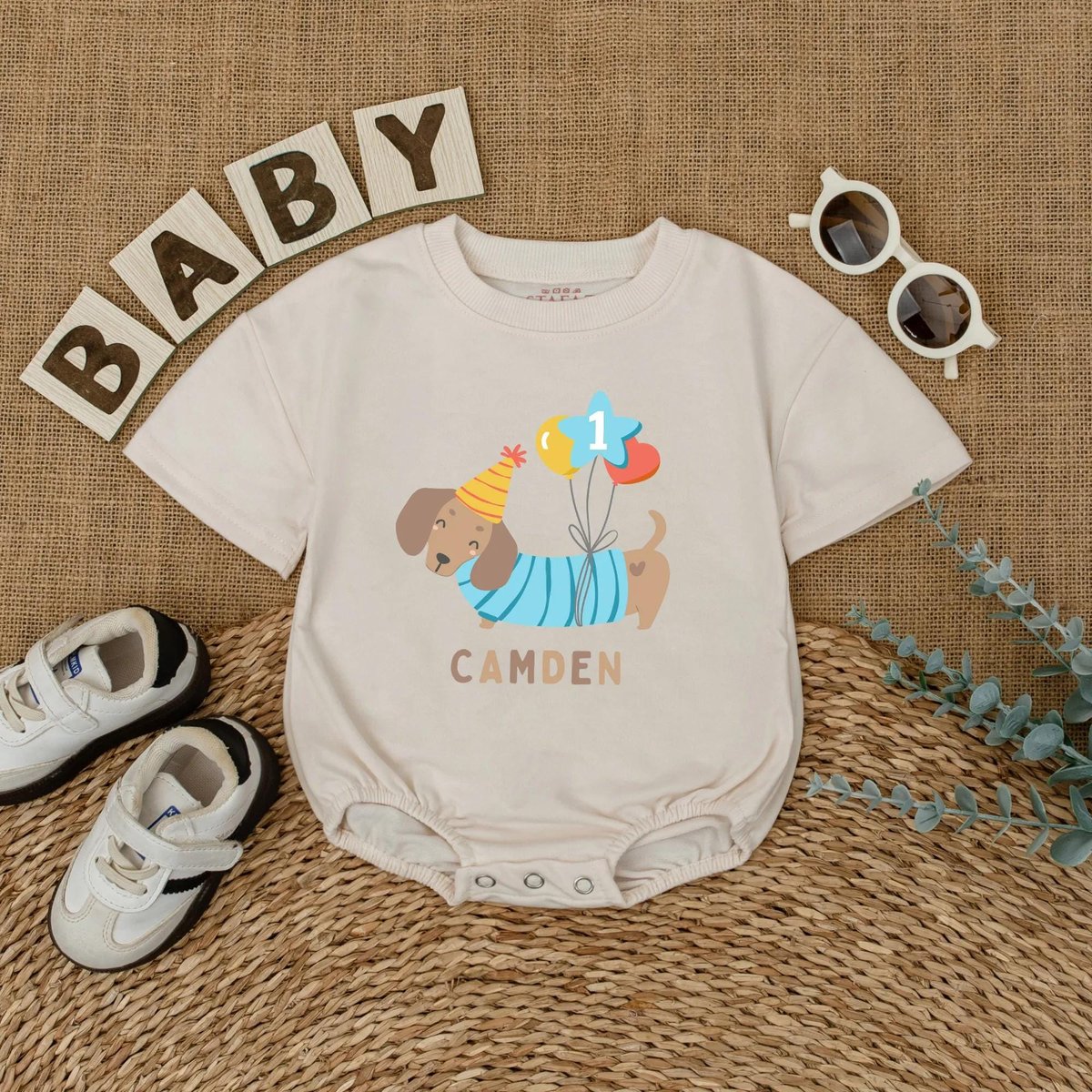 Pawty Animal 1st Birthday Baby Romper Dog Theme Birthday Bodysuit Cute Puppy Dog First Birthday Outf 432