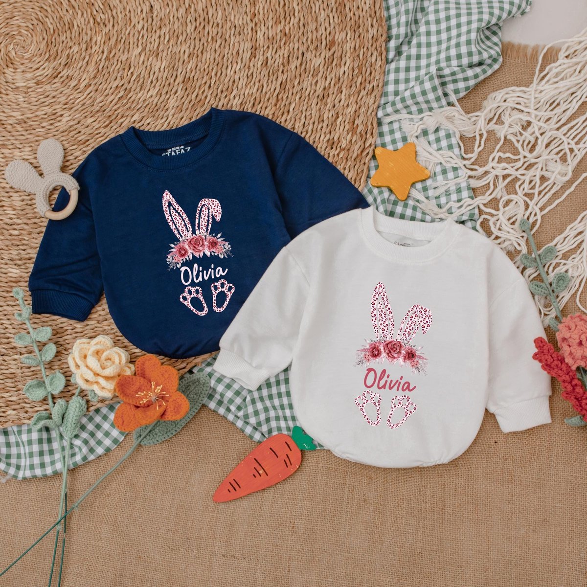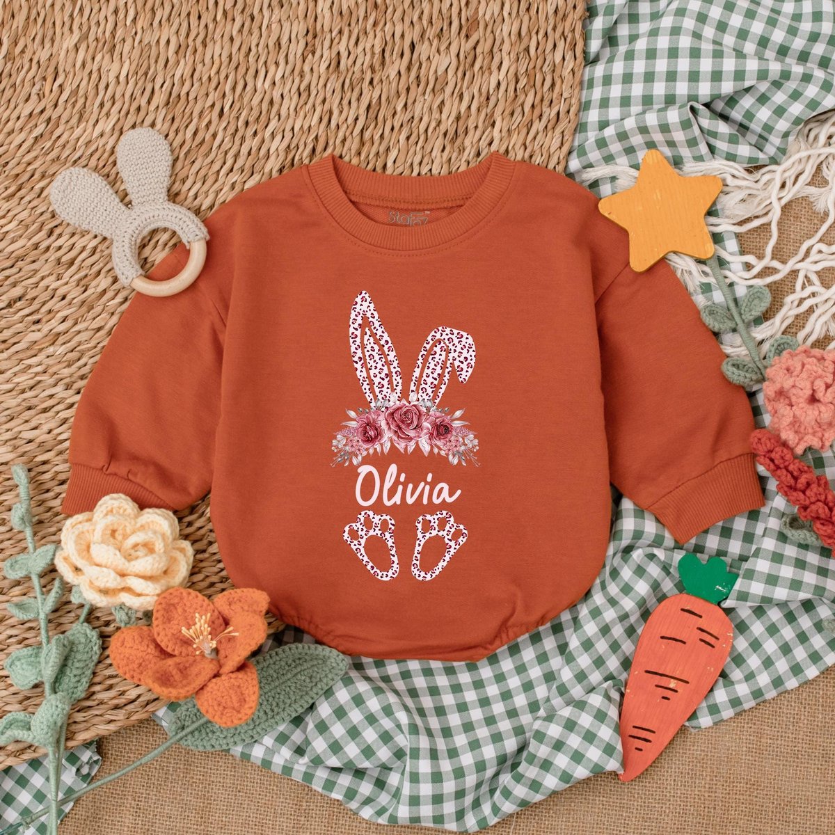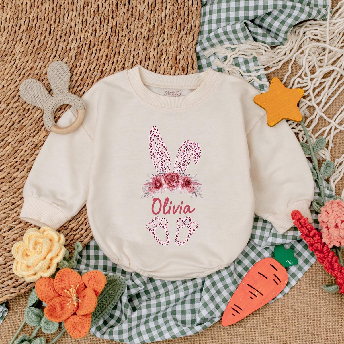 Personalization Pink Leopard Bunny Romper Baby Girl Easter Bunny Bodysuit Easter Day Baby Gift My Fi 185