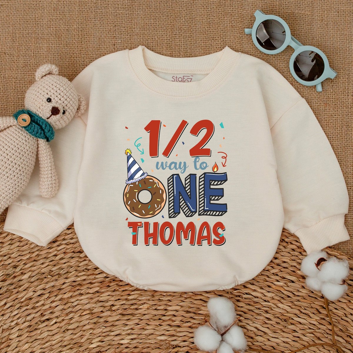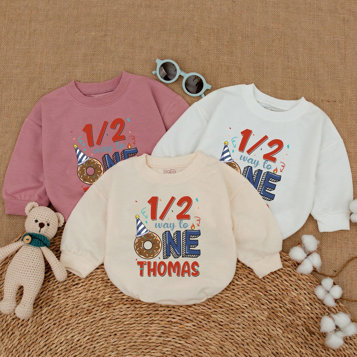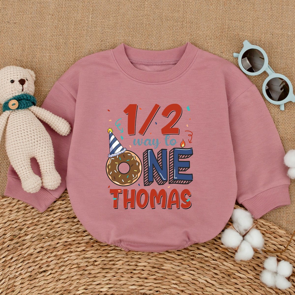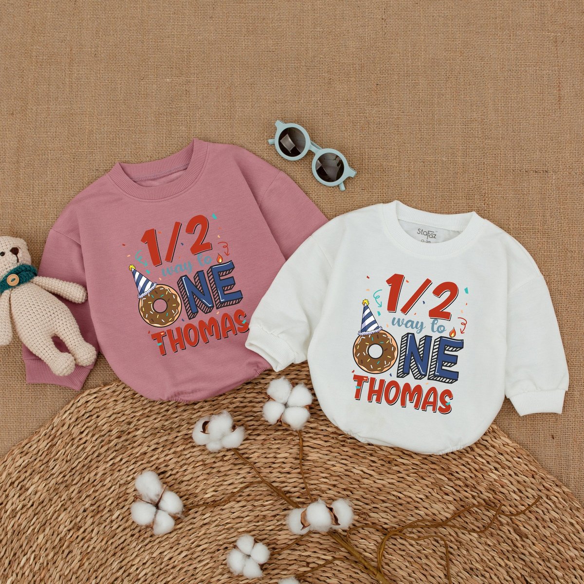 Personalized 12 Way To One Romper Half Birthday Bodysuit Donut Sprinkles Birthday Donut Grow Up Baby 168