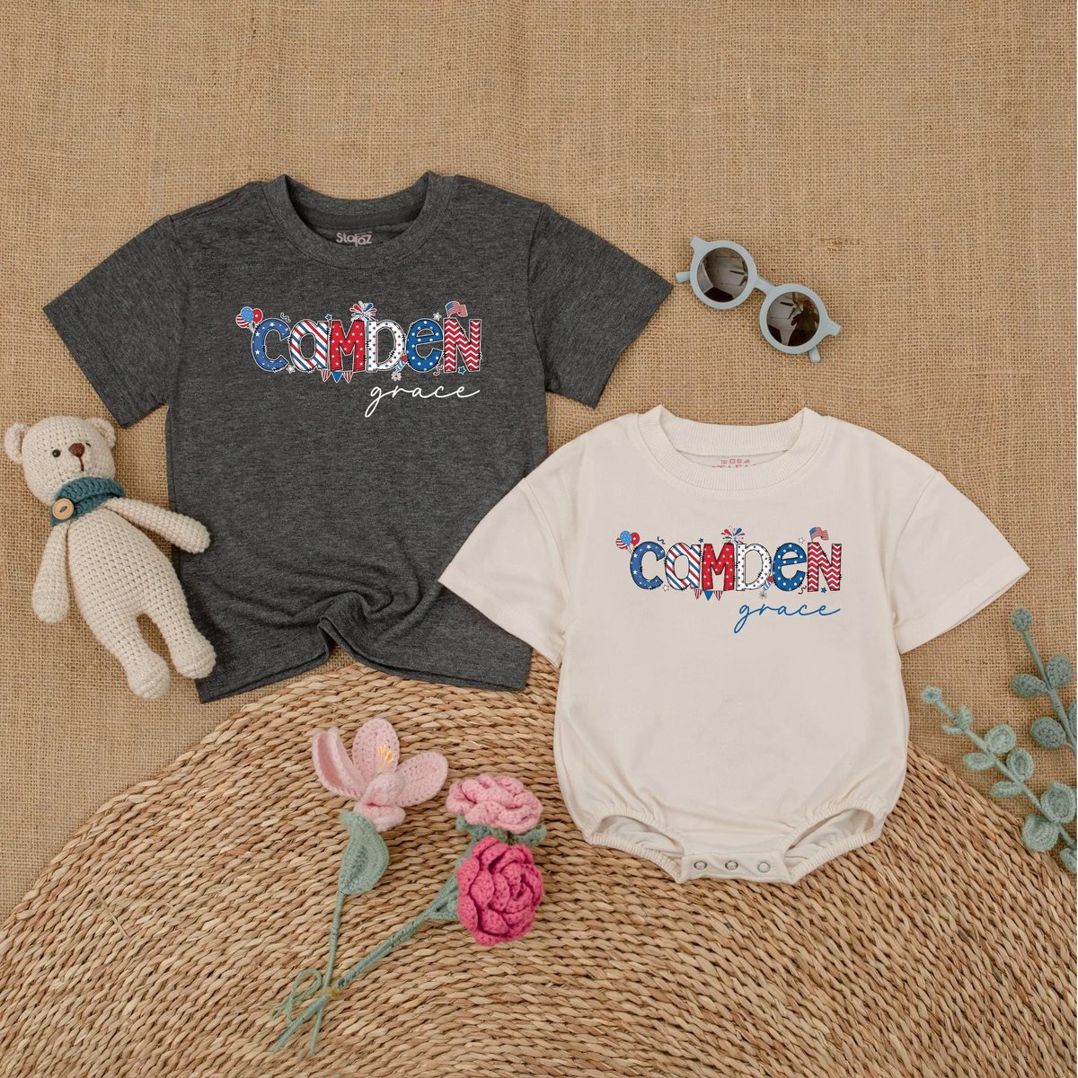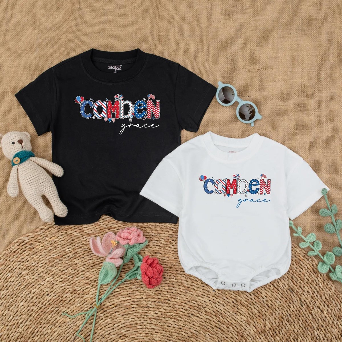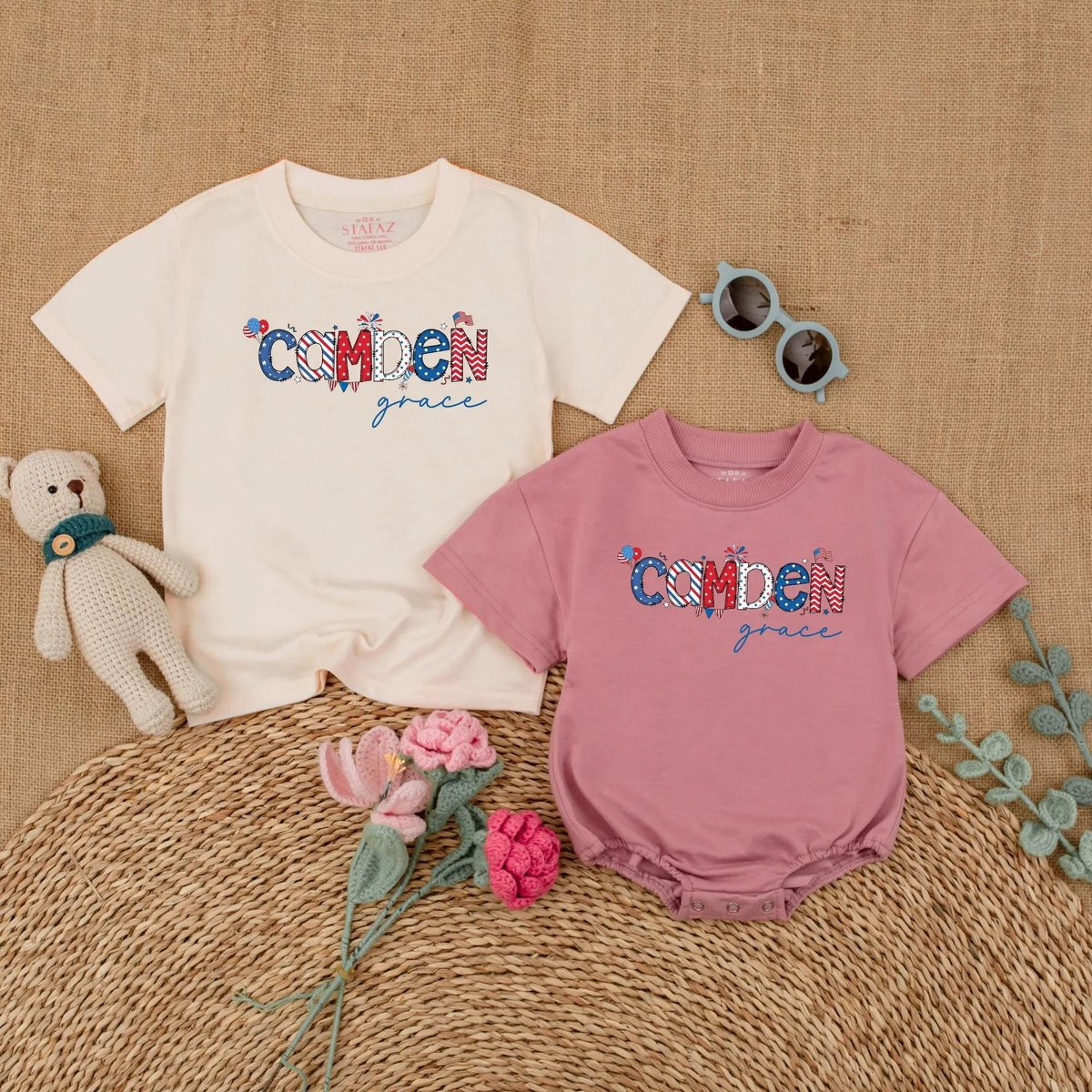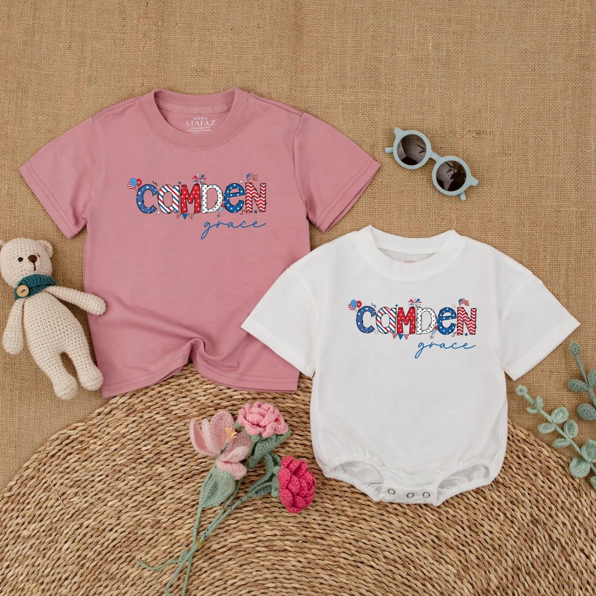 Personalized 4th of July Baby Romper Custom Name Patriotic Toddler Shirt American Baby Outfit Indepe 429