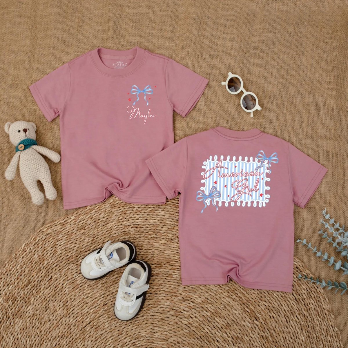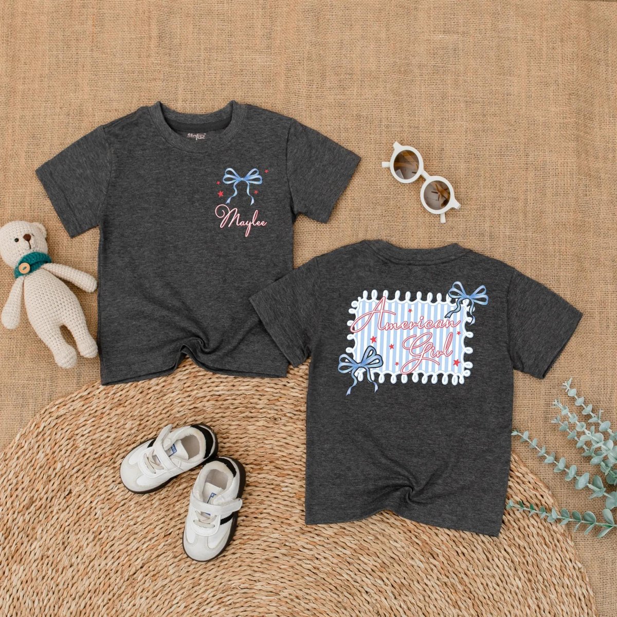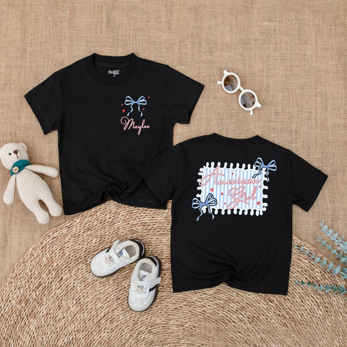 Personalized American Girl Flag and Bows Baby Romper Fourth of July Girly Baby Bodysuit Baby Girl Cl 430