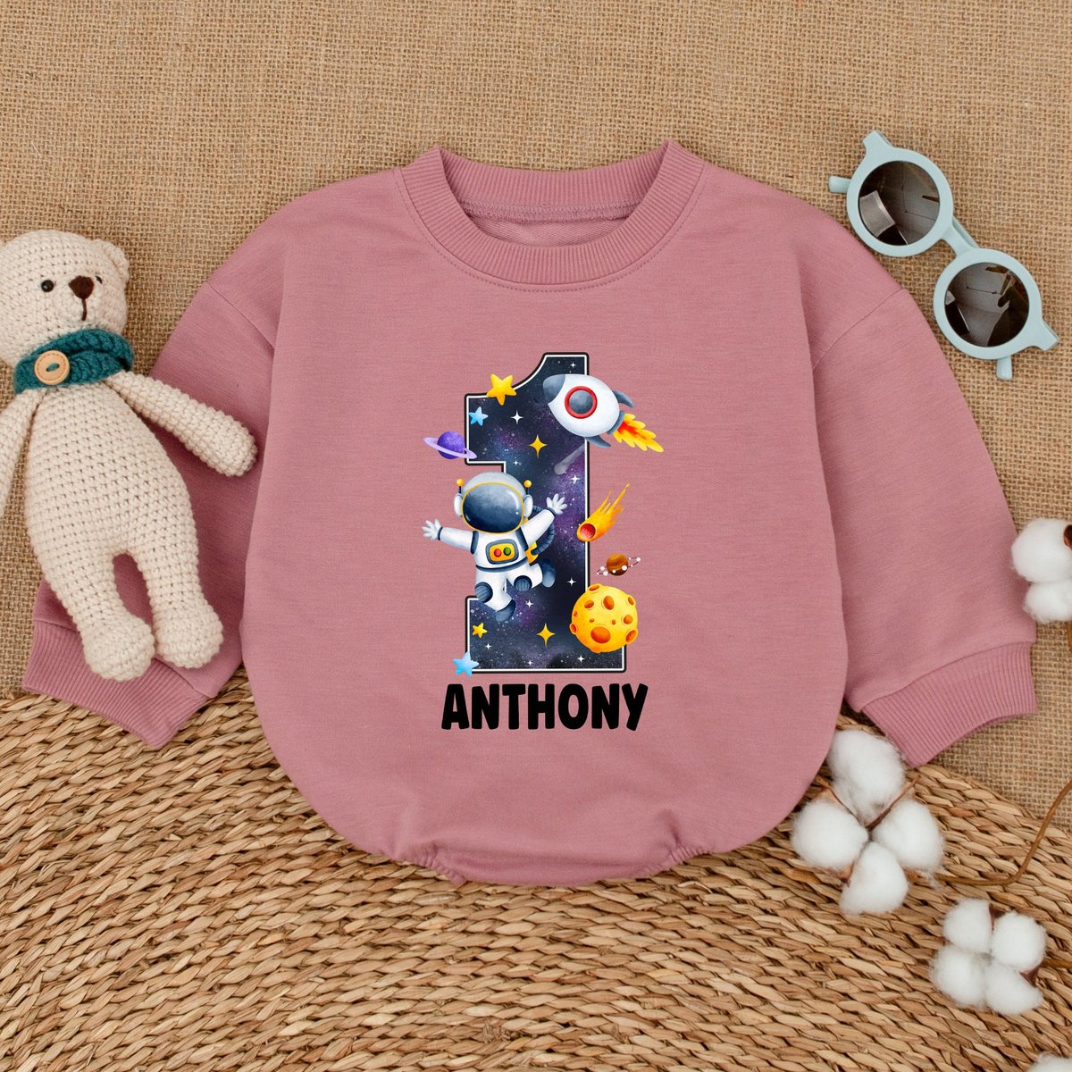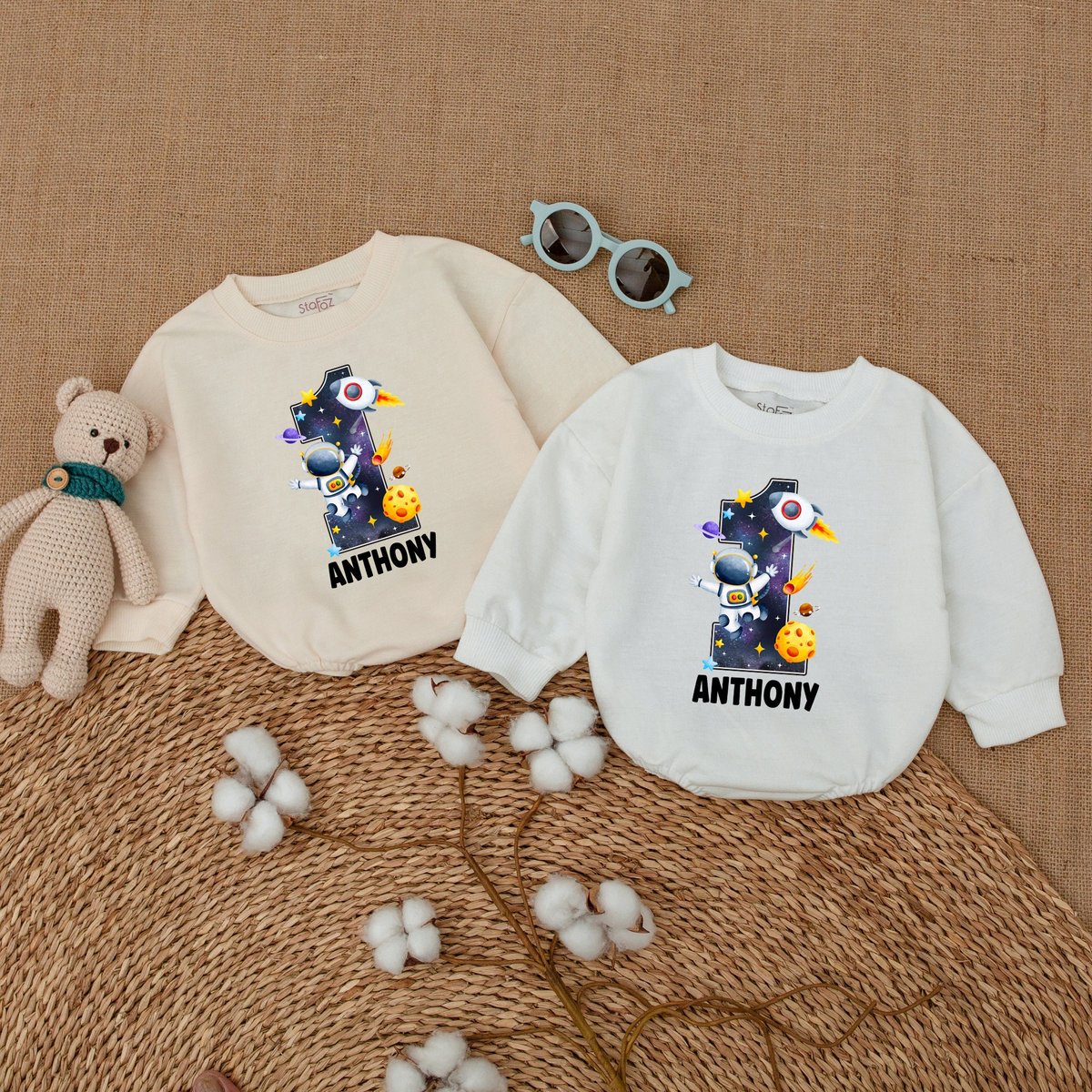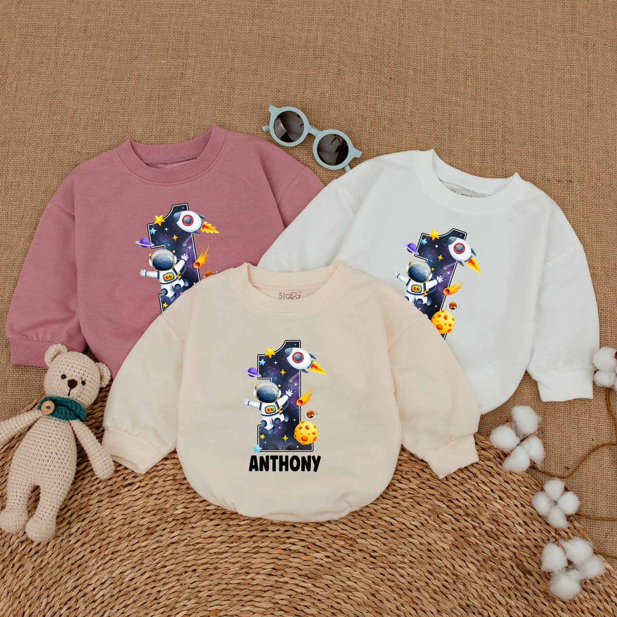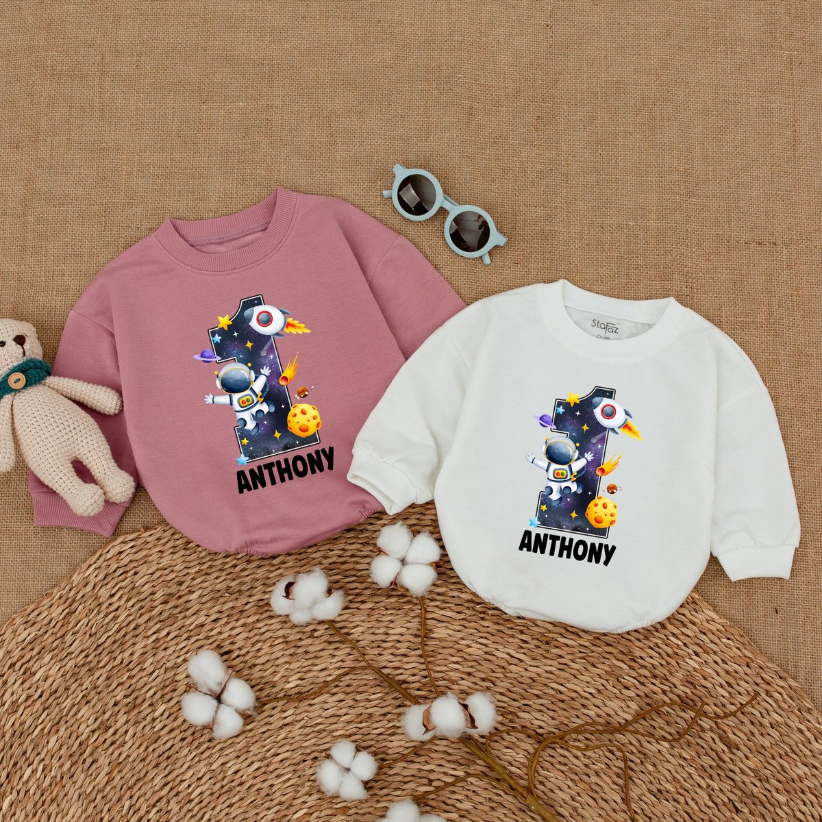 Personalized Astronaut 1st Birthday Romper Space First Birthday Bodysuit Sweatshirt Bubble Romper Sm 169