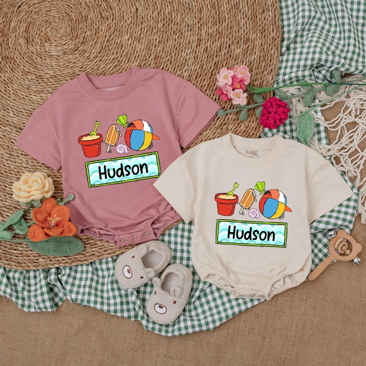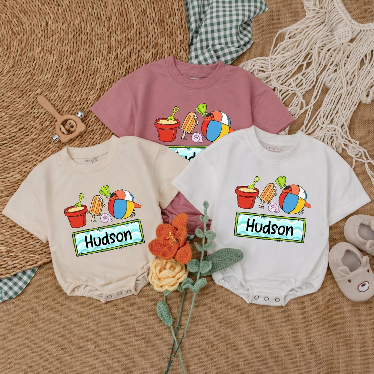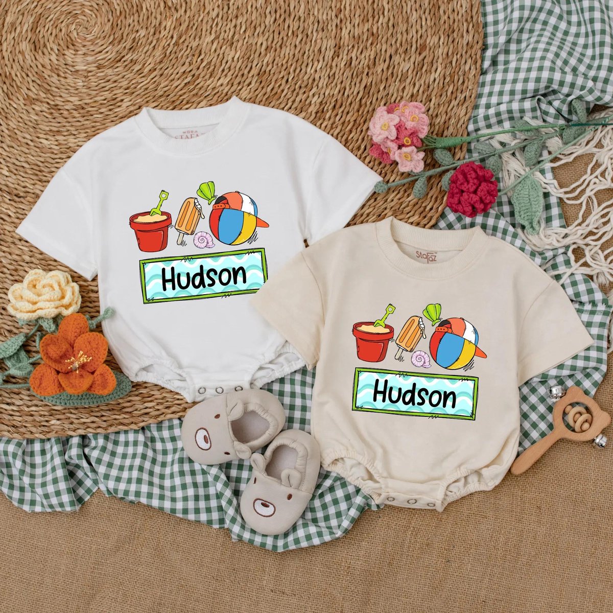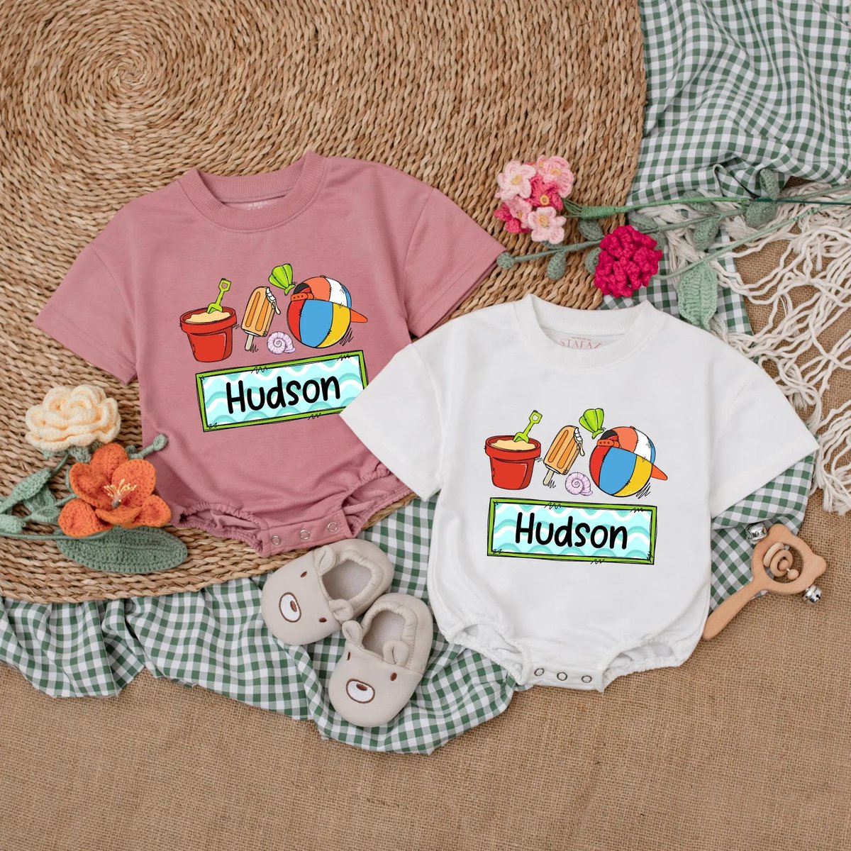Personalized Beach Vacation Baby Romper Custom Name Summer Bodysuit Pool Party Boys Shirt Summer Bab 189
