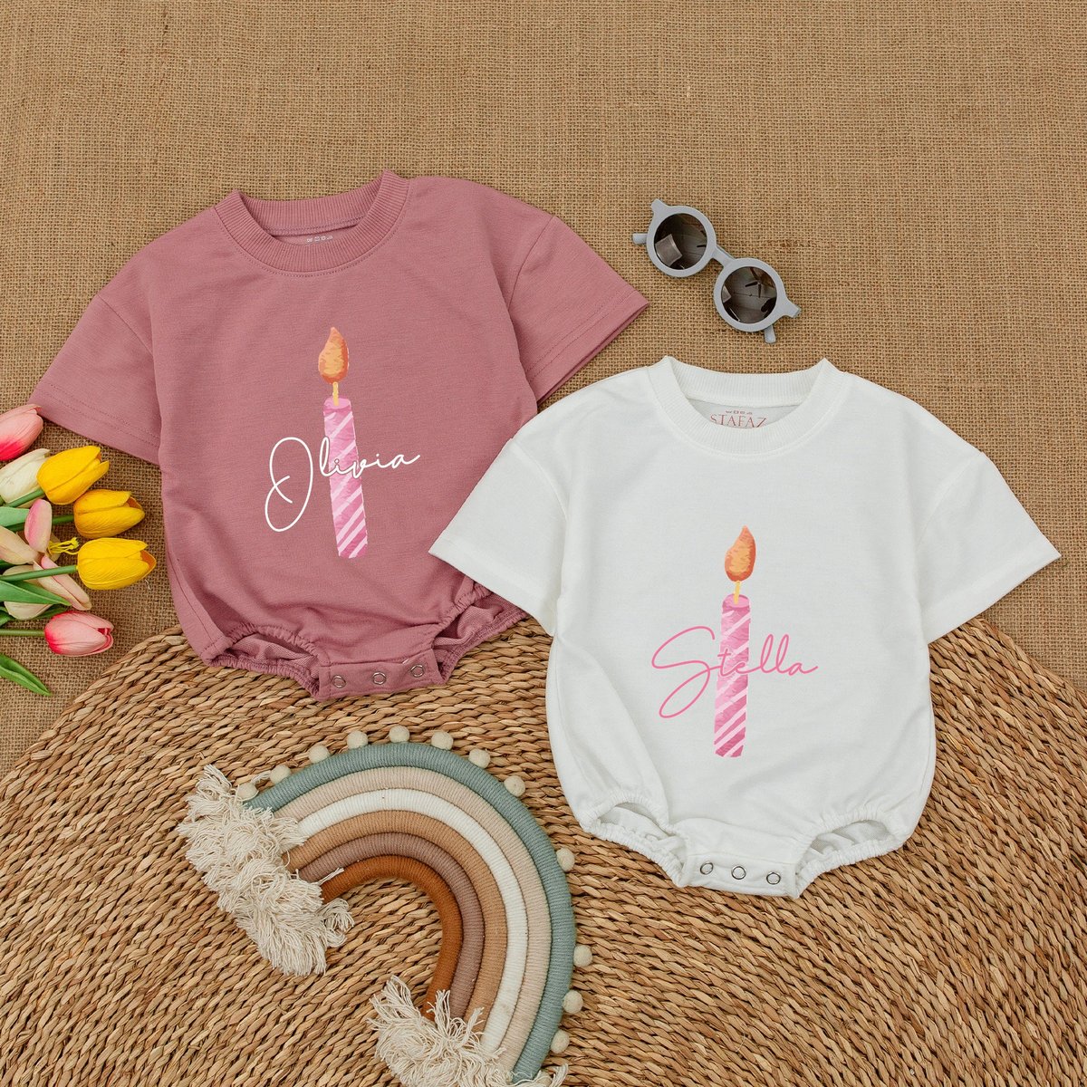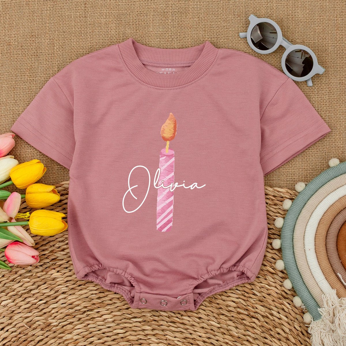 Personalized Birthday Candle Baby Romper One Candle Bodysuit First Birthday Clothes Birthday Cake Sh 174