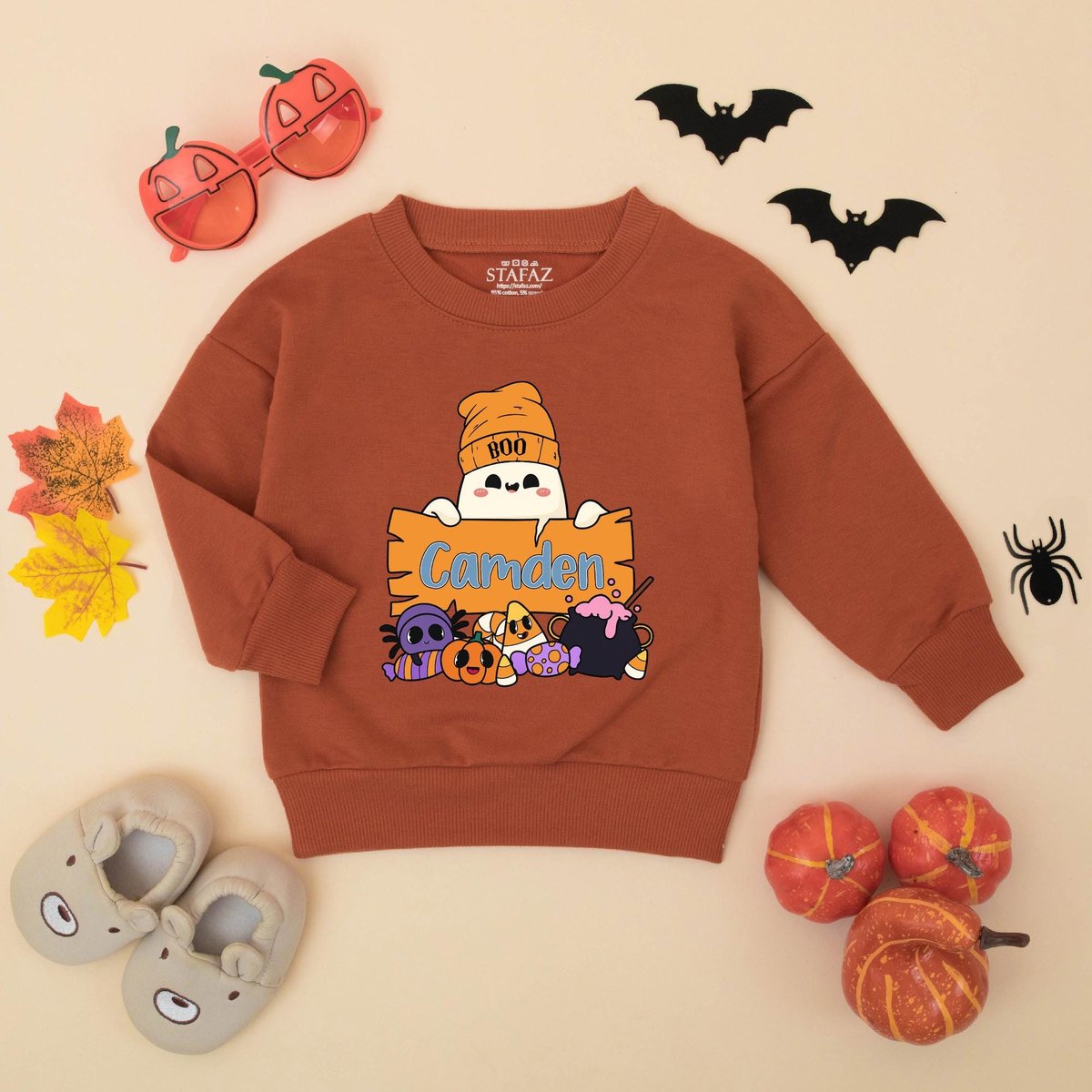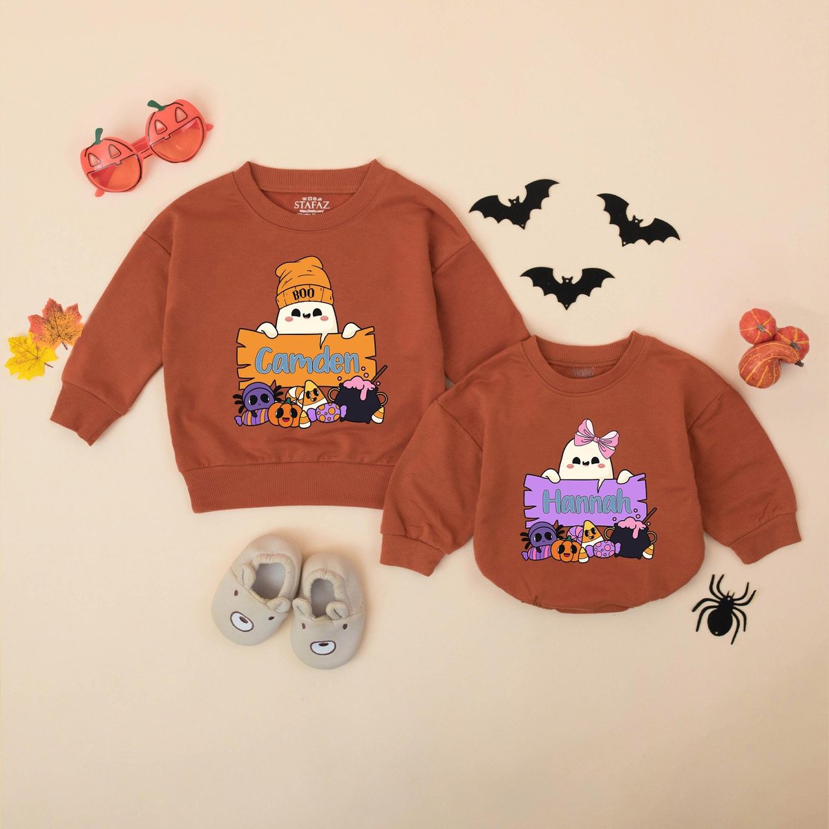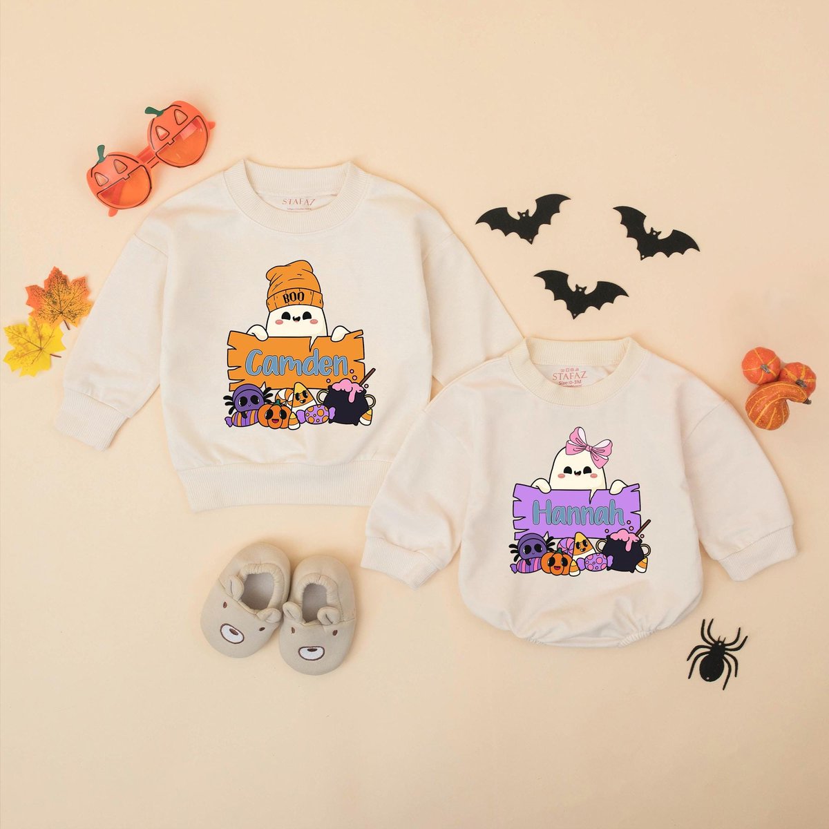 Personalized Boo Halloween Matching Shirt for Kids Custom Name Ghost Sweatshirt Cute Halloween Toddl 432