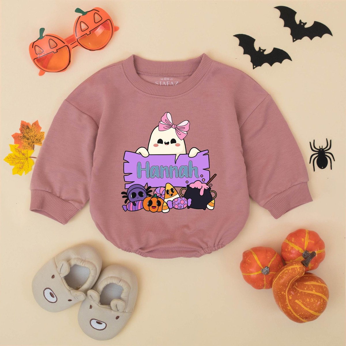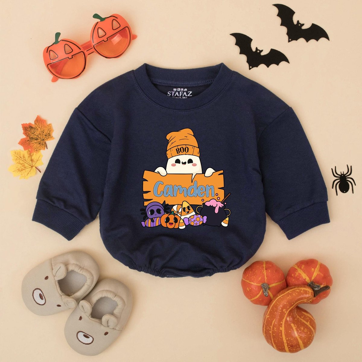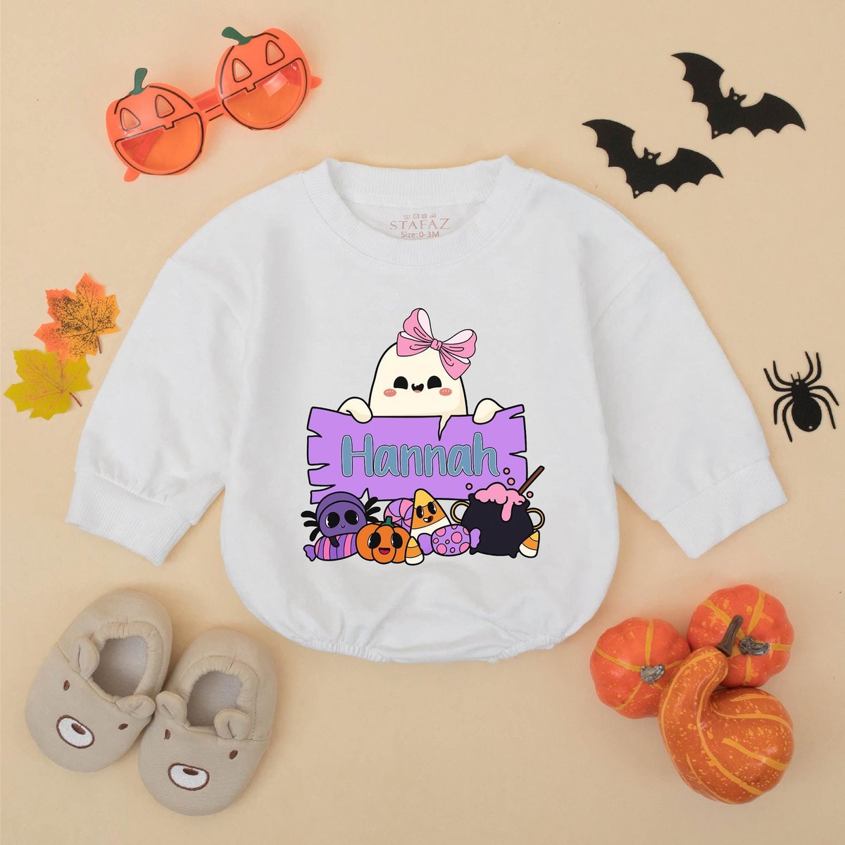 Personalized Boo Halloween Matching Shirt for Kids Custom Name Ghost Sweatshirt Cute Halloween Toddl 432