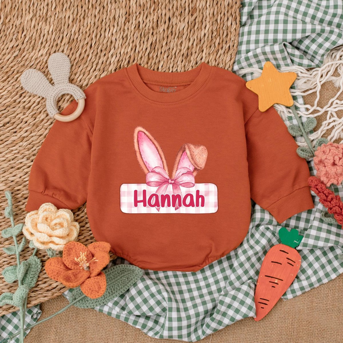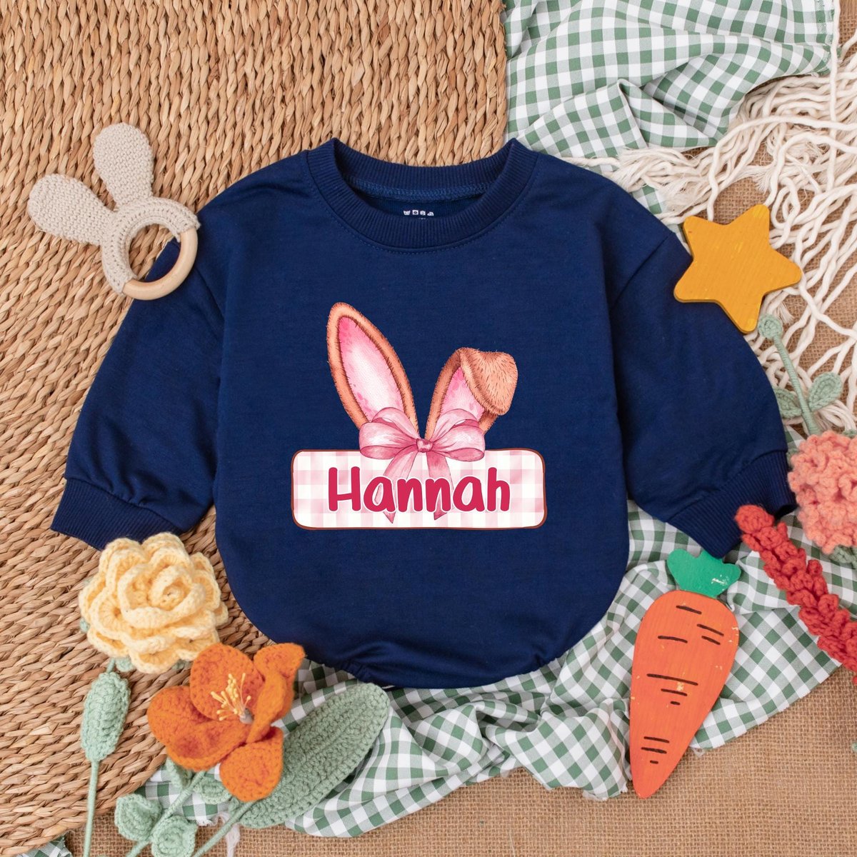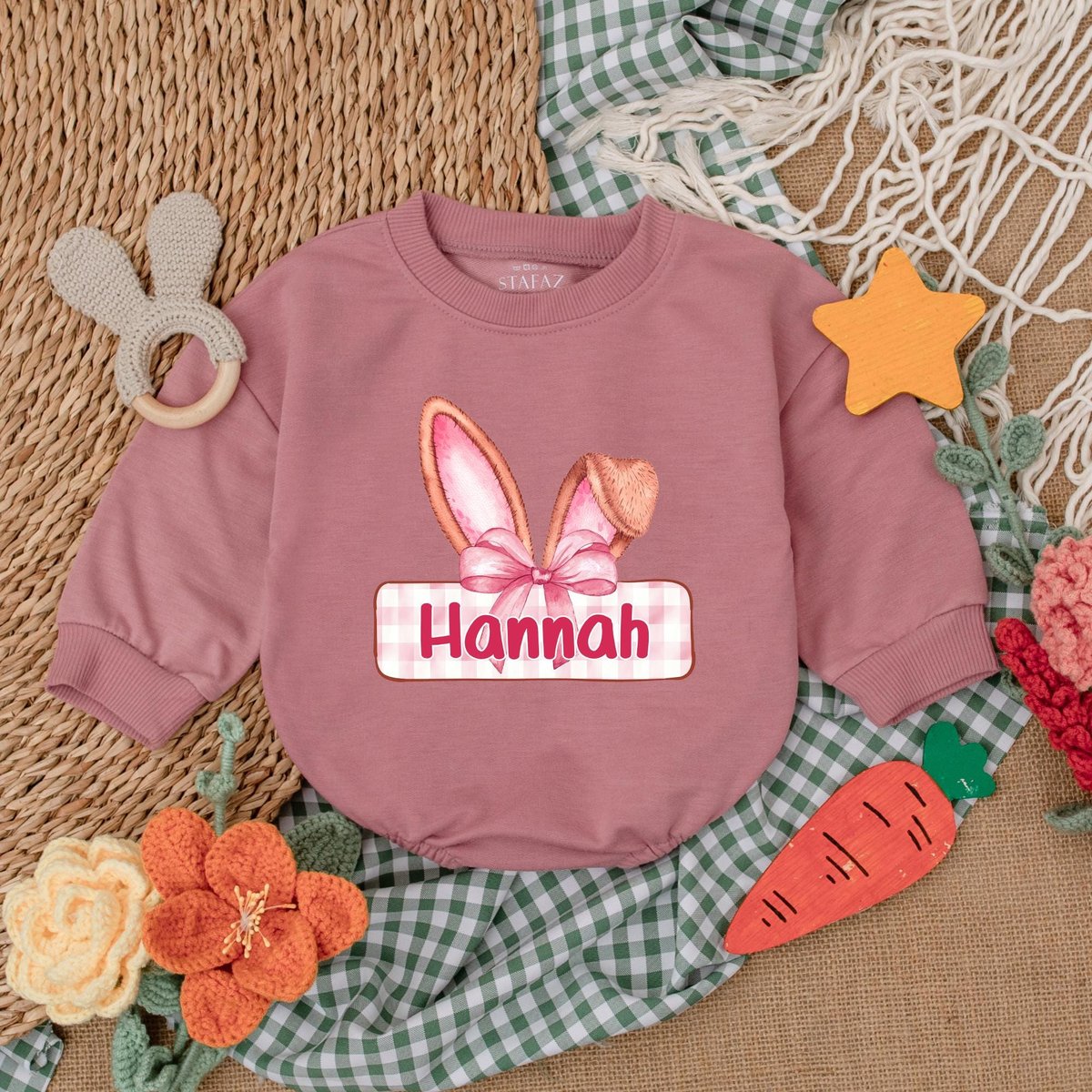 Personalized Bunny Ears with Pink Bow Romper Cute Easter Bunny Bodysuit Easter Day Baby Gift My Firs 182