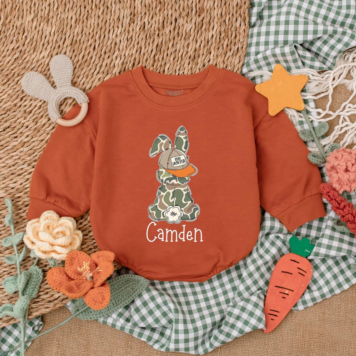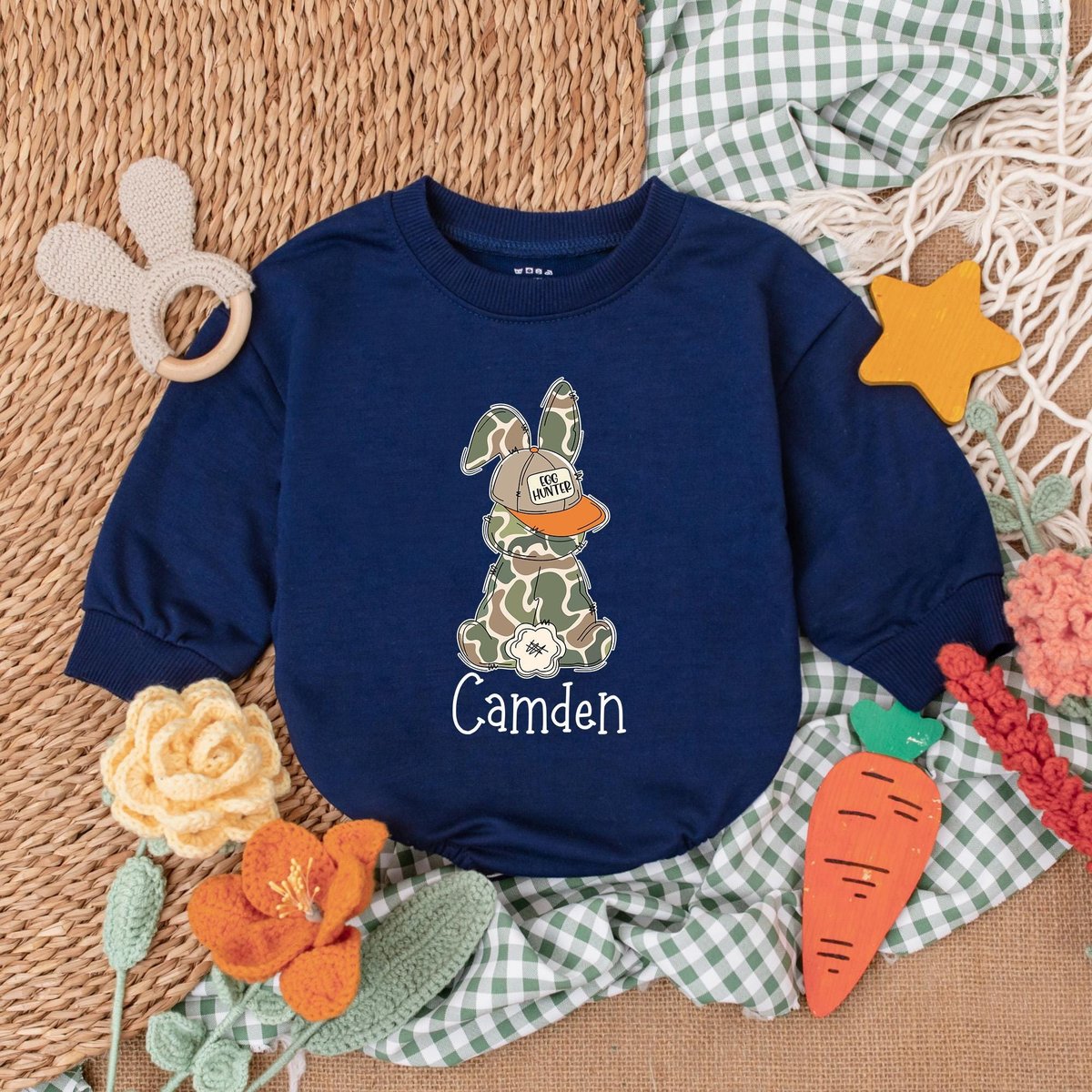 Personalized Camo Easter Boys Romper Egg Hunter Bunny Baby Bodysuit Easter Day Baby Gift My First Ea 187