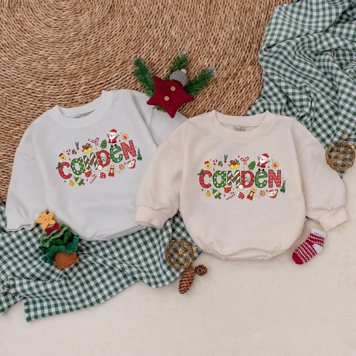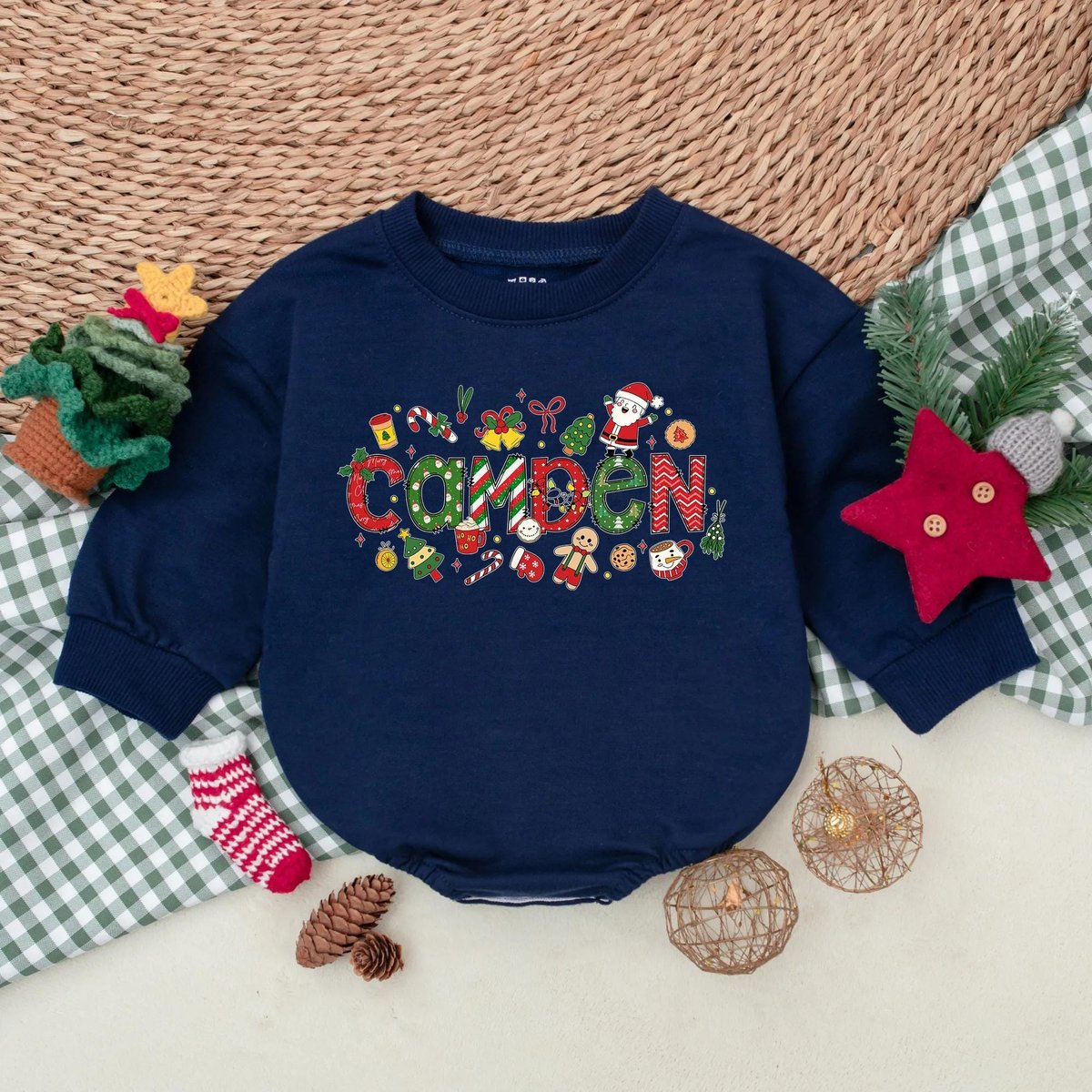 Personalized Christmas Baby Boy Romper My 1st Christmas Bodysuit Custom Name Holiday Outfit Baby Boy 435