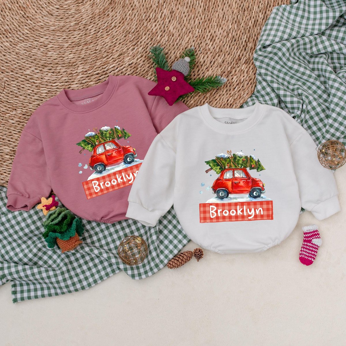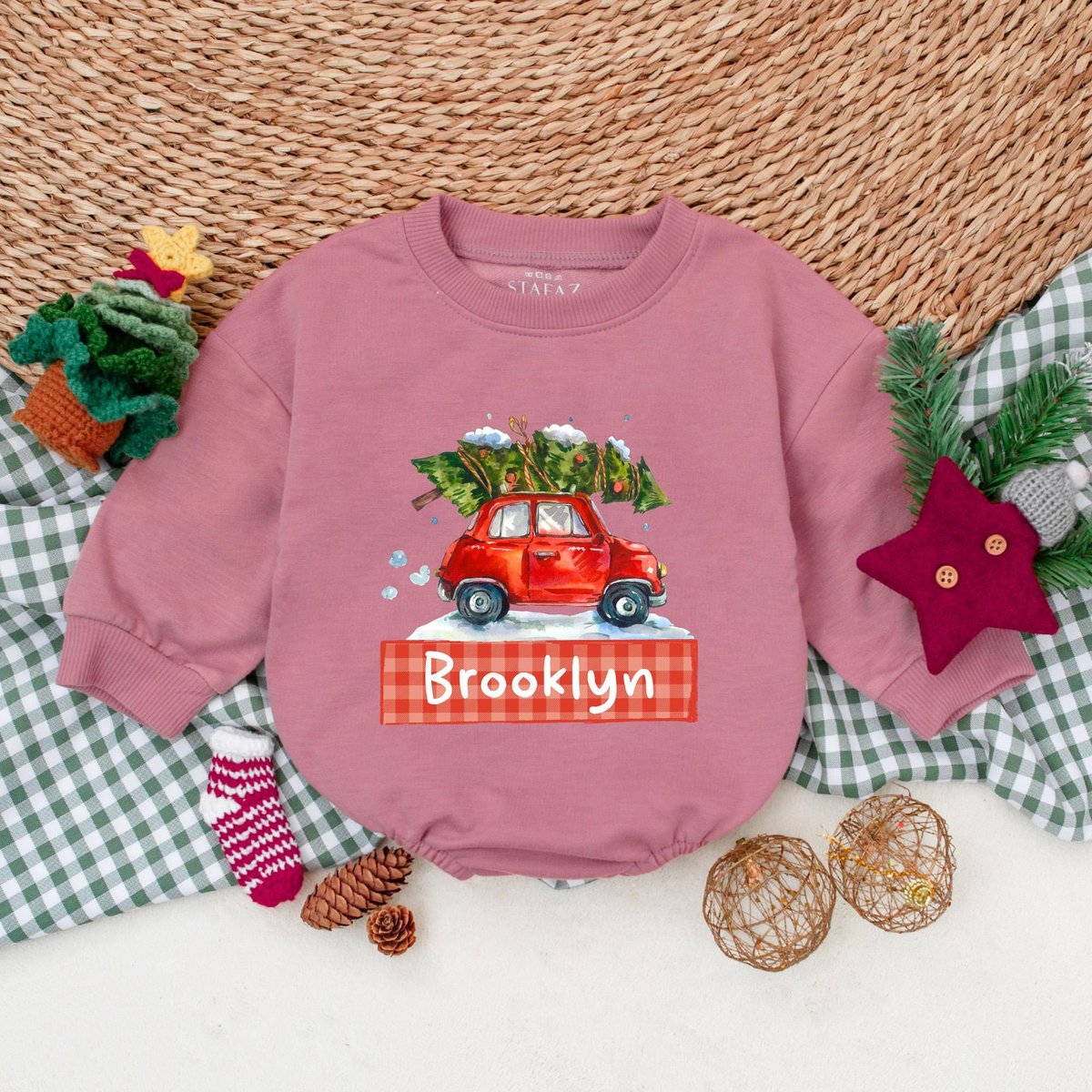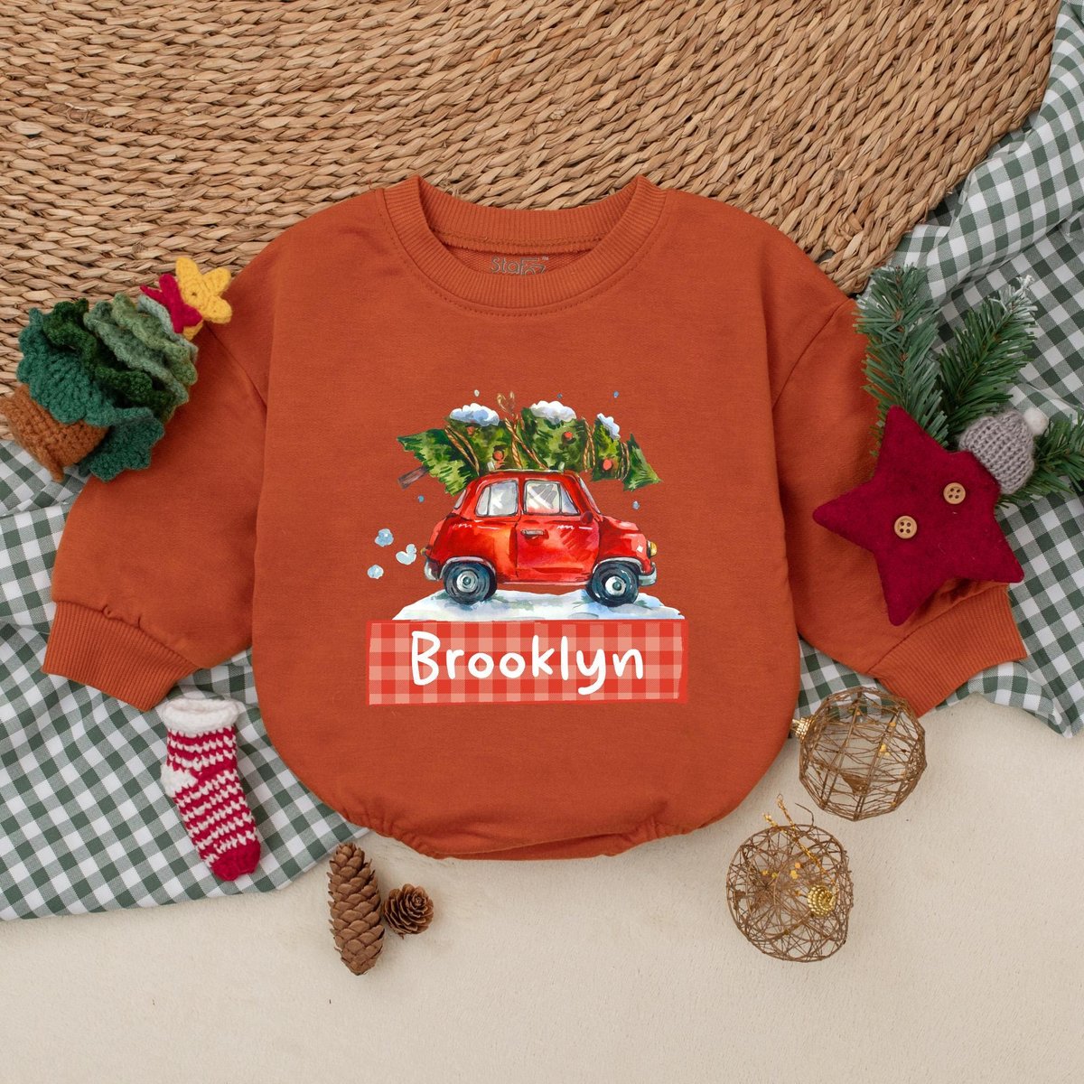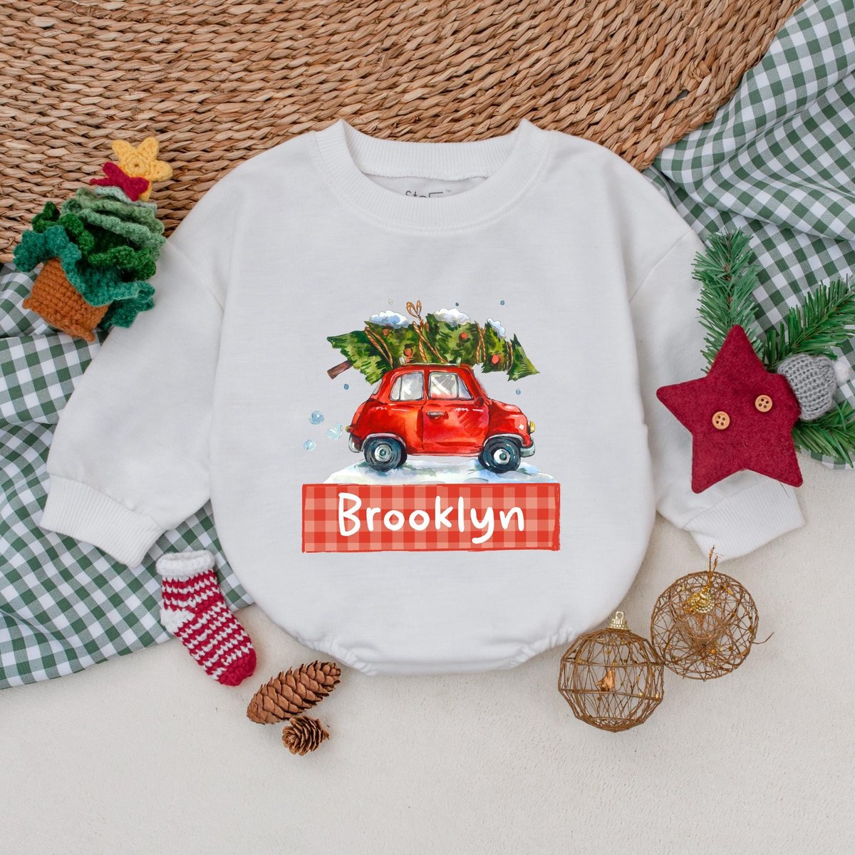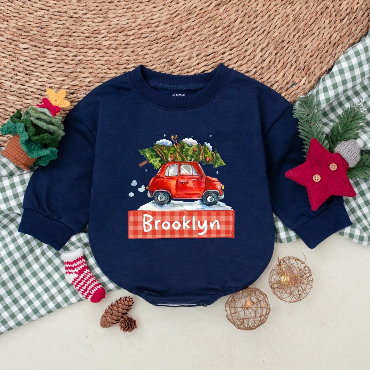 Personalized Christmas Car Romper Boys Christmas Bodysuit Winter Baby Clothes Christmas Baby Shower 176