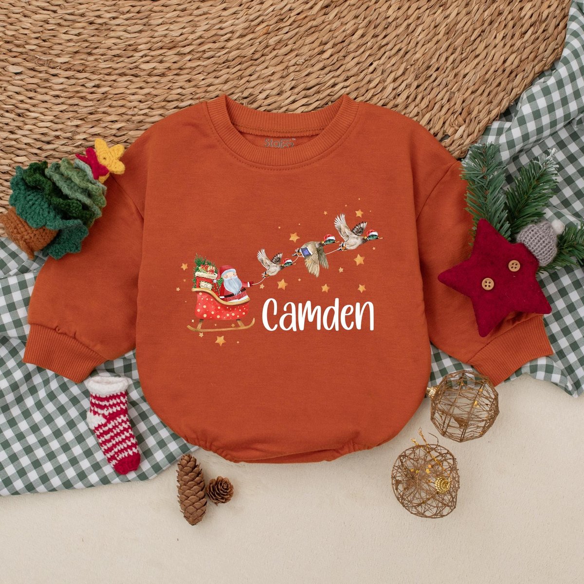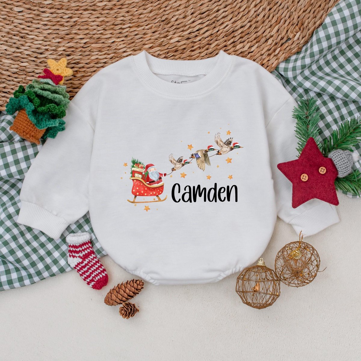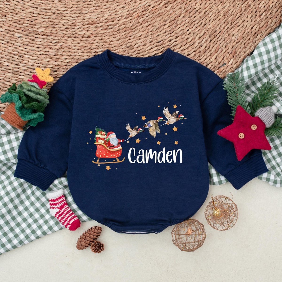 Personalized Christmas Mallard Duck Romper Santa with Ducks Boys Bodysuit Baby Boy Christmas Outfit 181