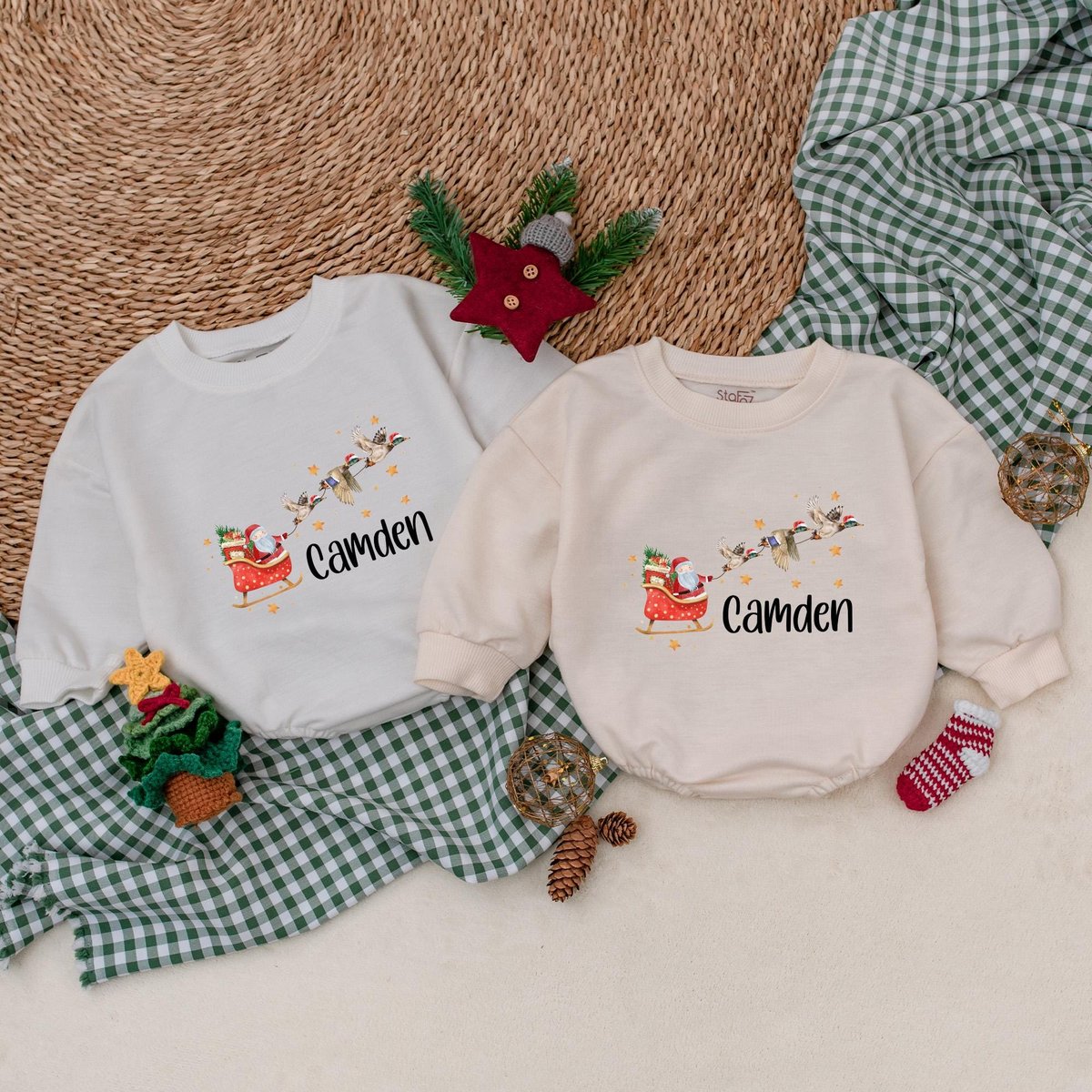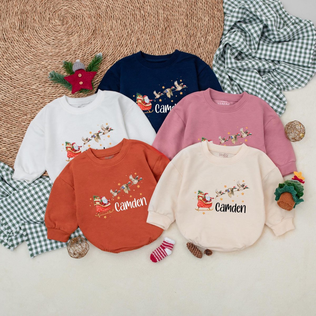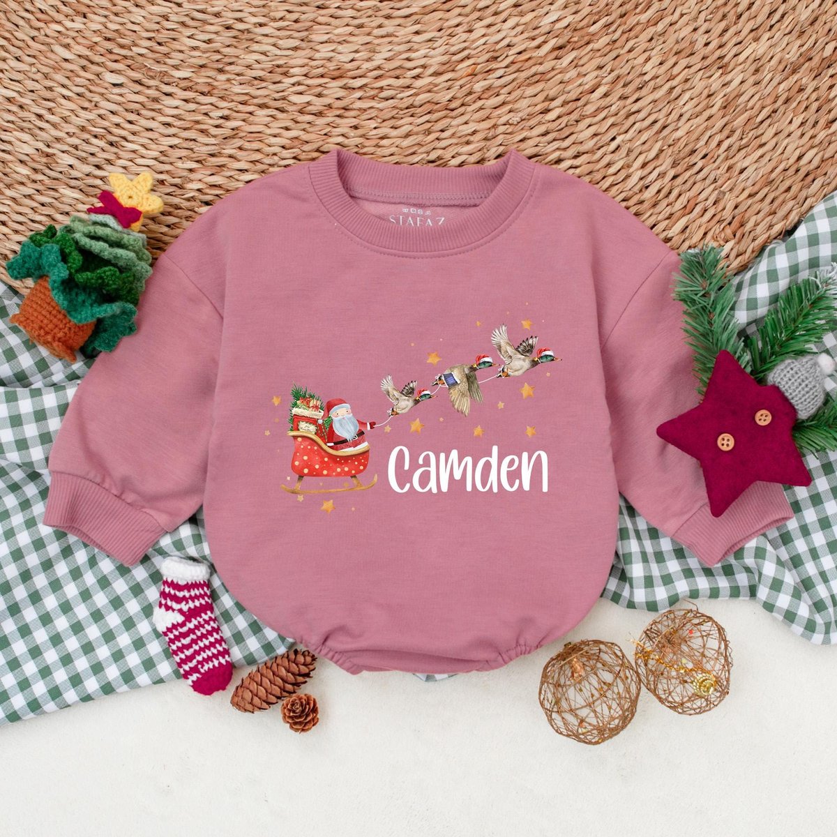 Personalized Christmas Mallard Duck Romper Santa with Ducks Boys Bodysuit Baby Boy Christmas Outfit 181