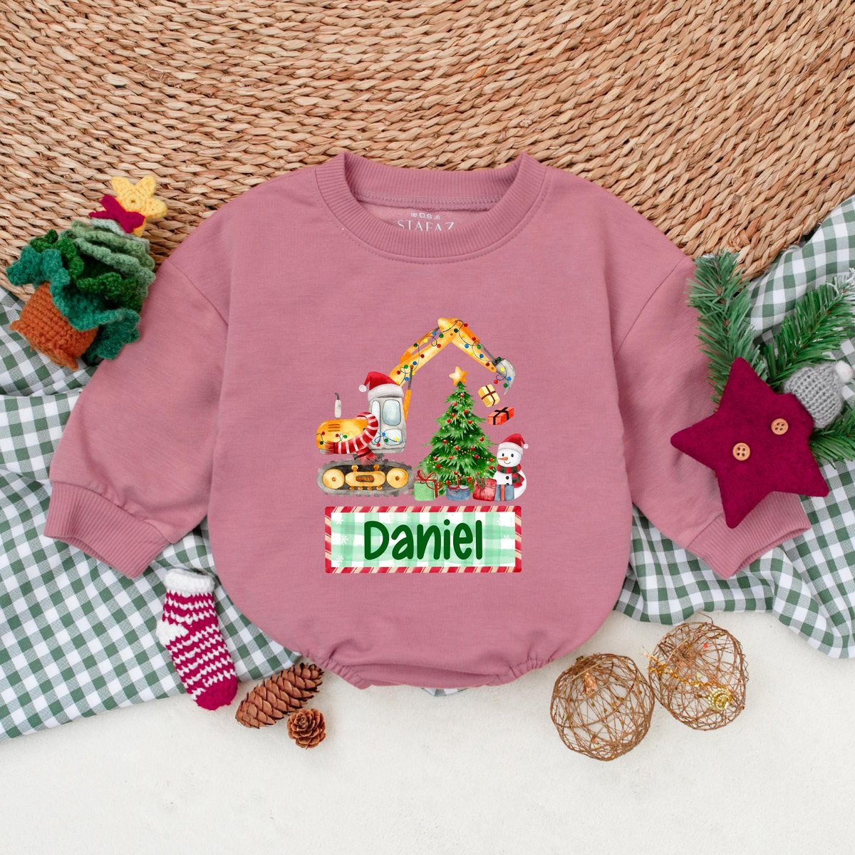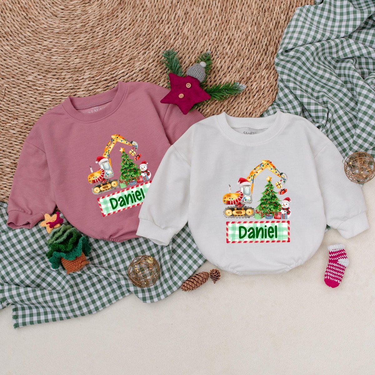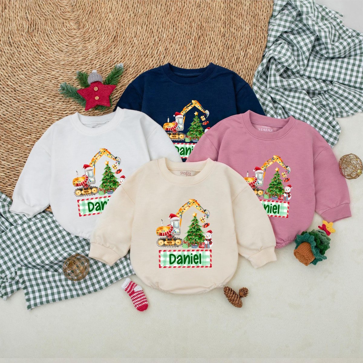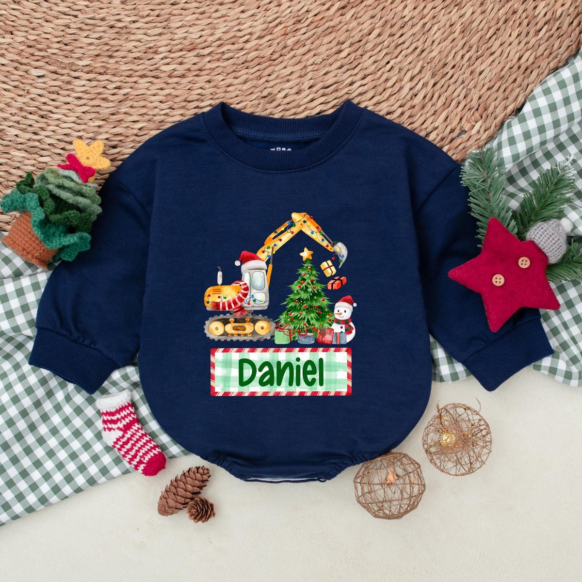 Personalized Christmas Excavator Romper Boys Christmas Bodysuit Baby Boy Christmas Outfit Winter Bab 181
