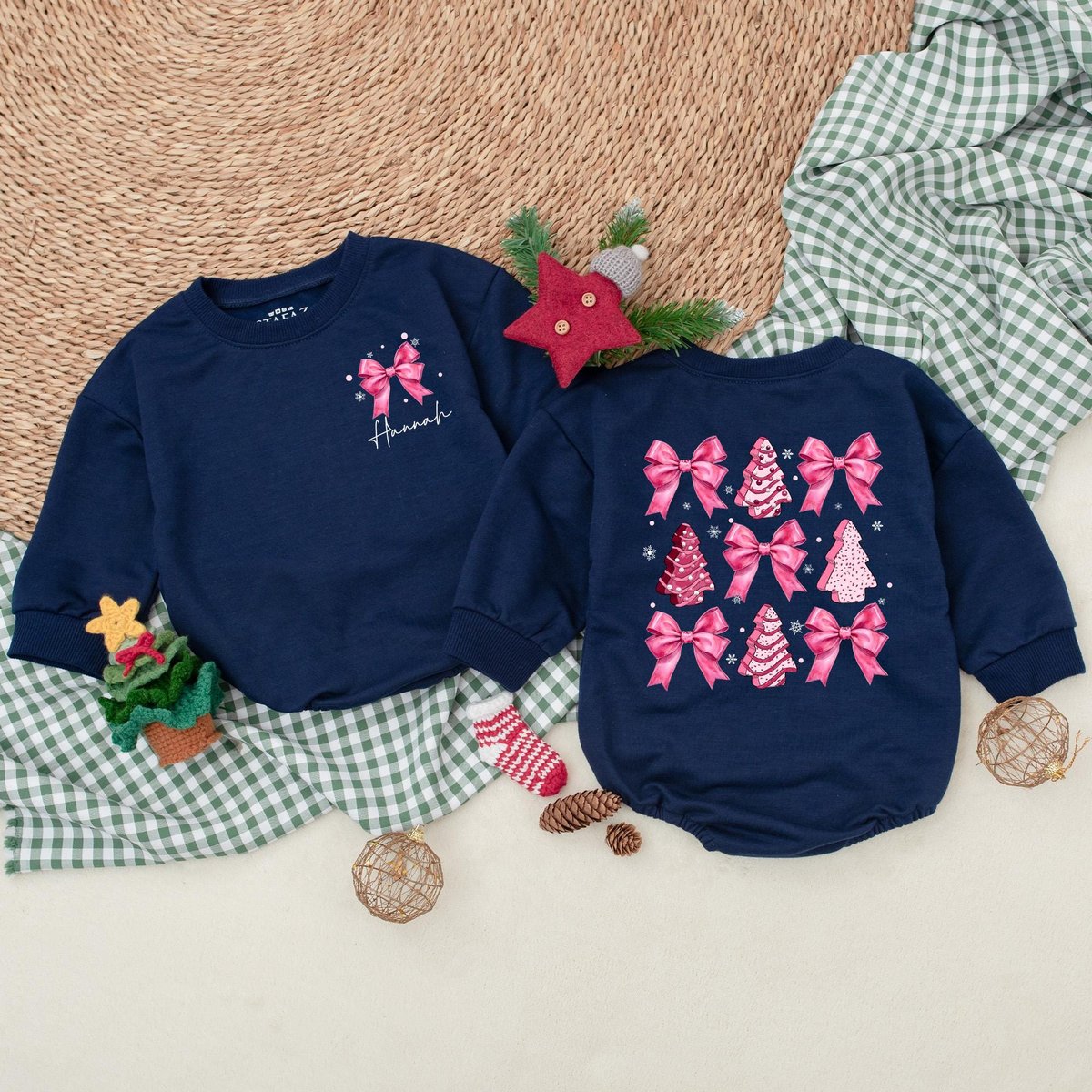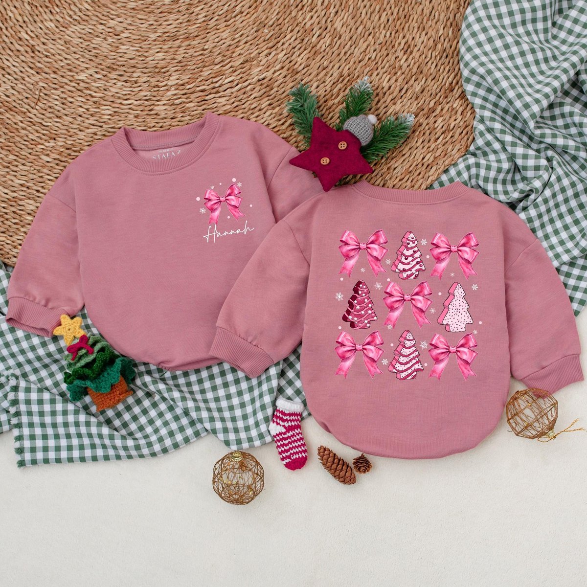 Personalized Christmas Pink Bow Romper Girly Christmas Cake Bodysuit My First Christmas Outfit Baby 180