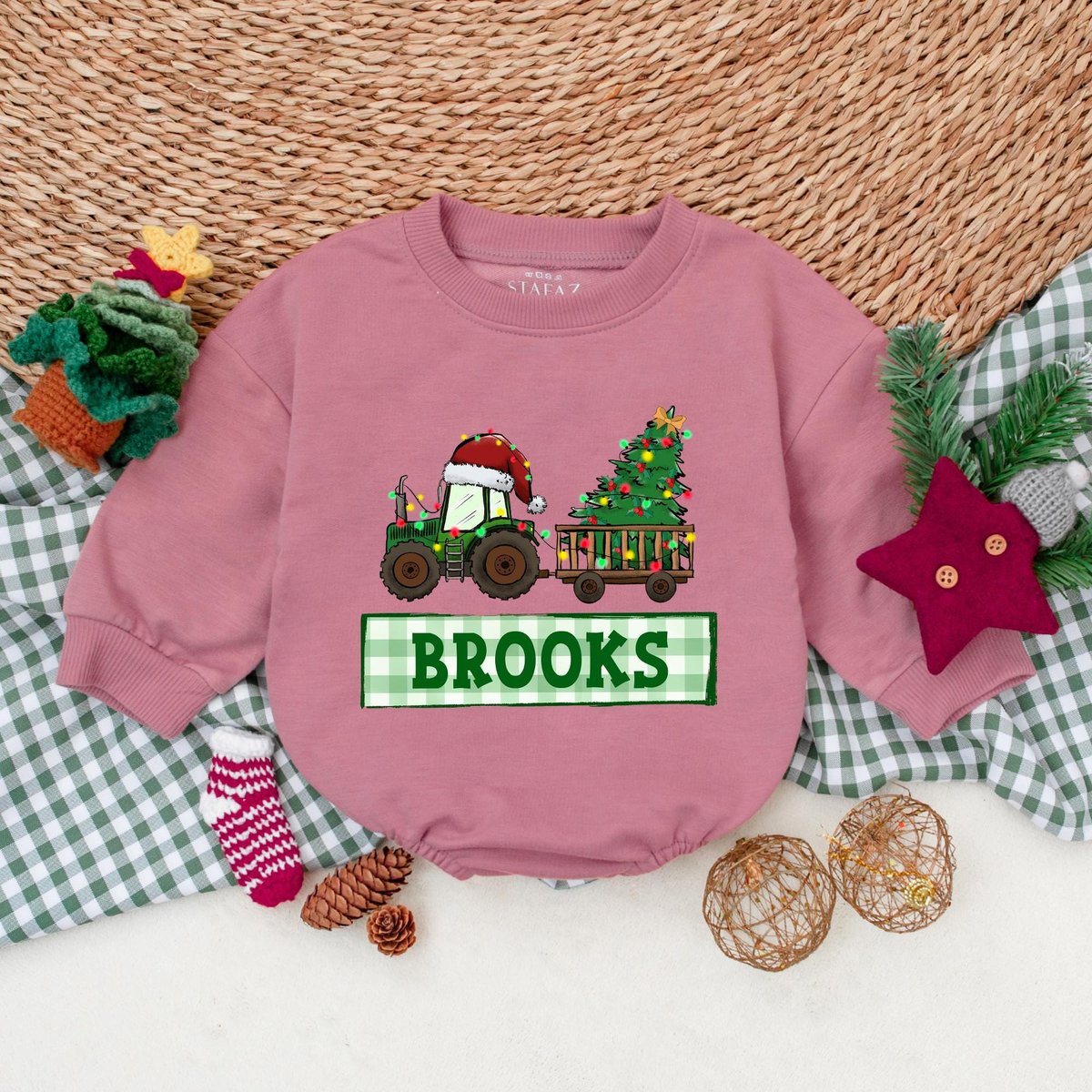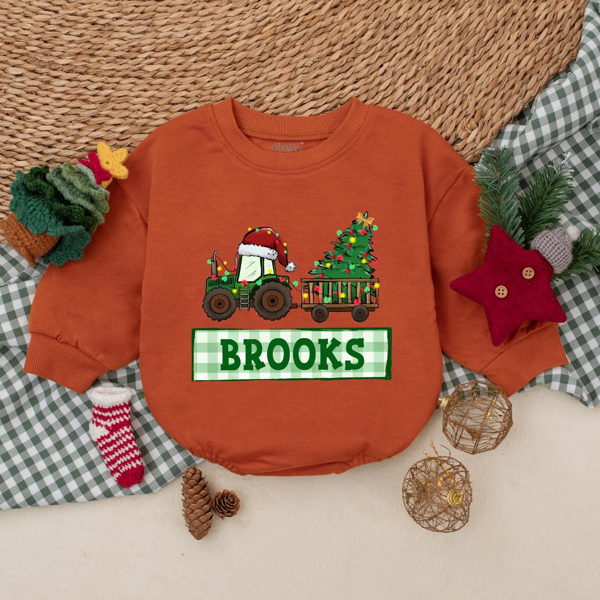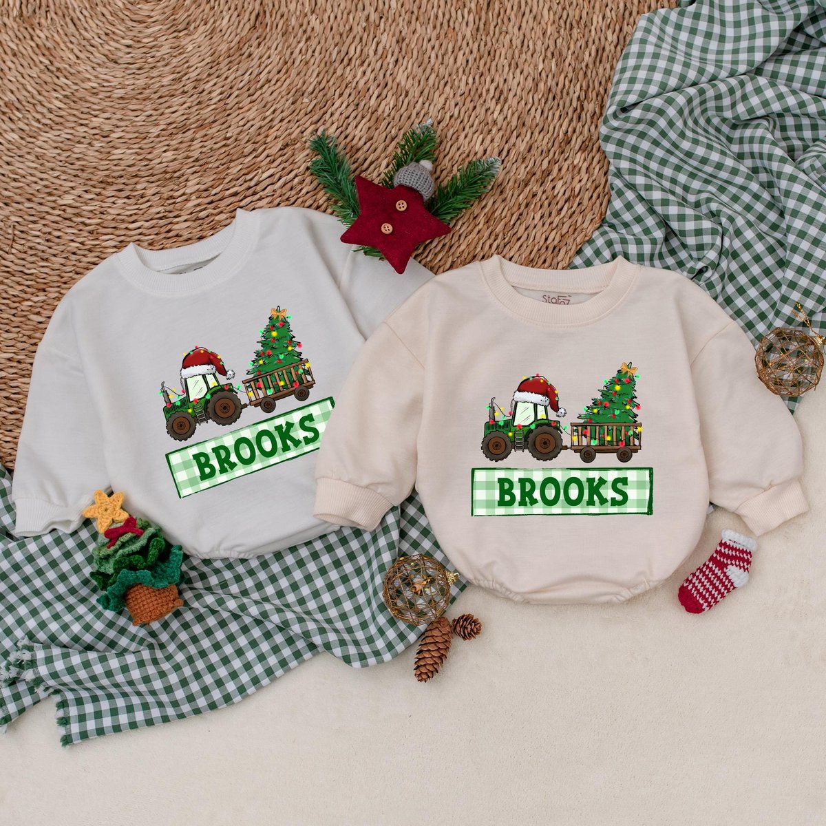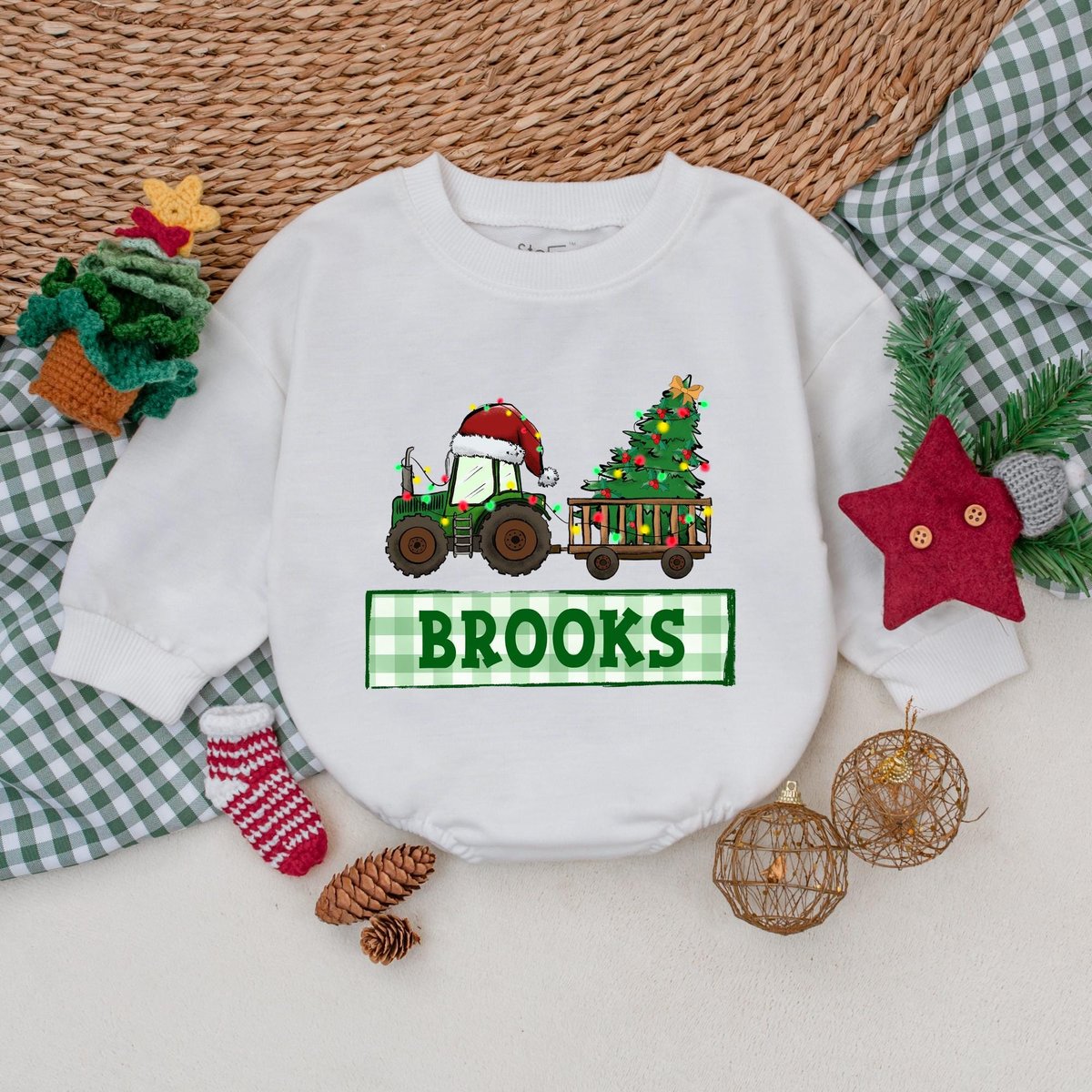 Personalized Christmas Tractor Romper Boys Christmas Bodysuit Winter Baby Clothes Christmas Baby Sho 176