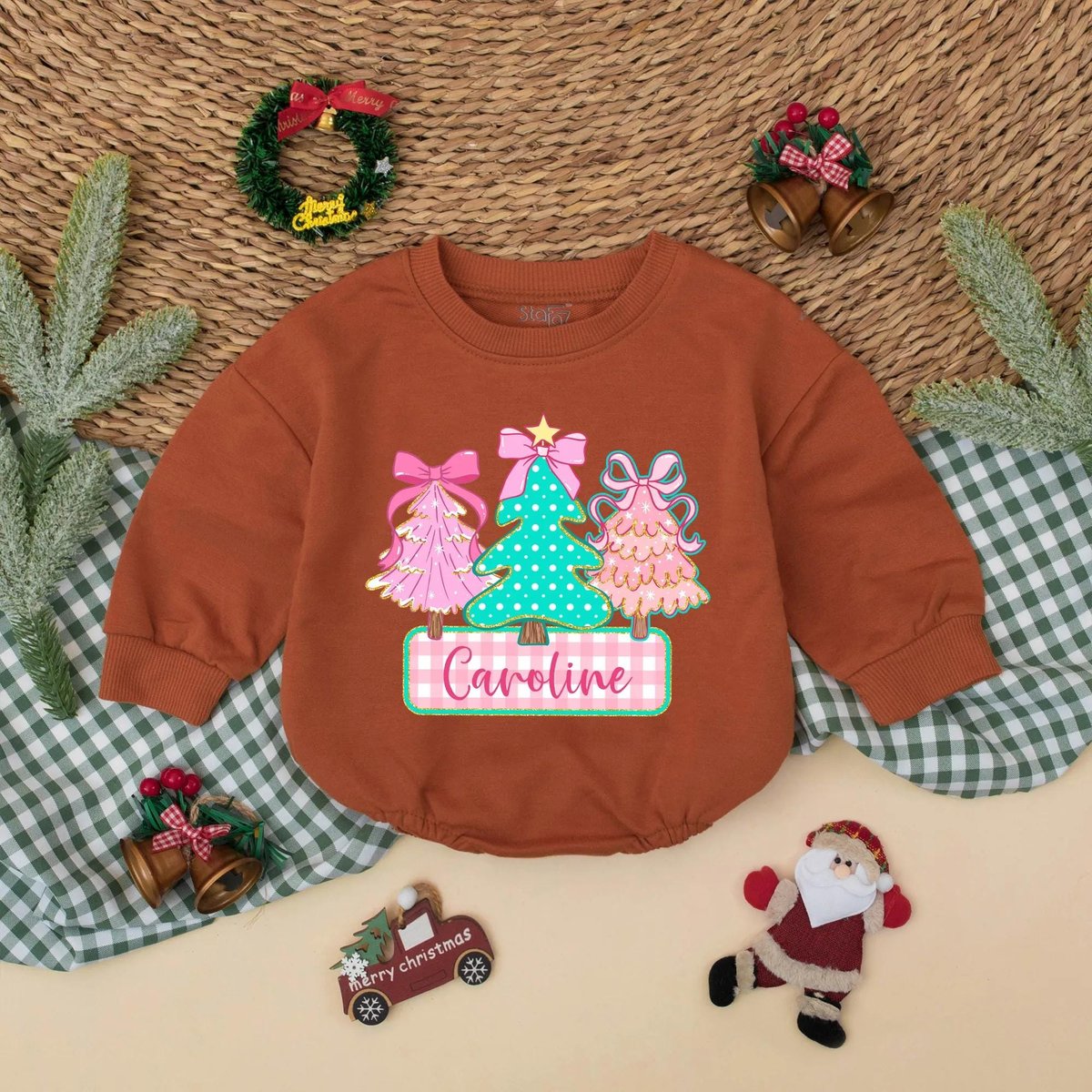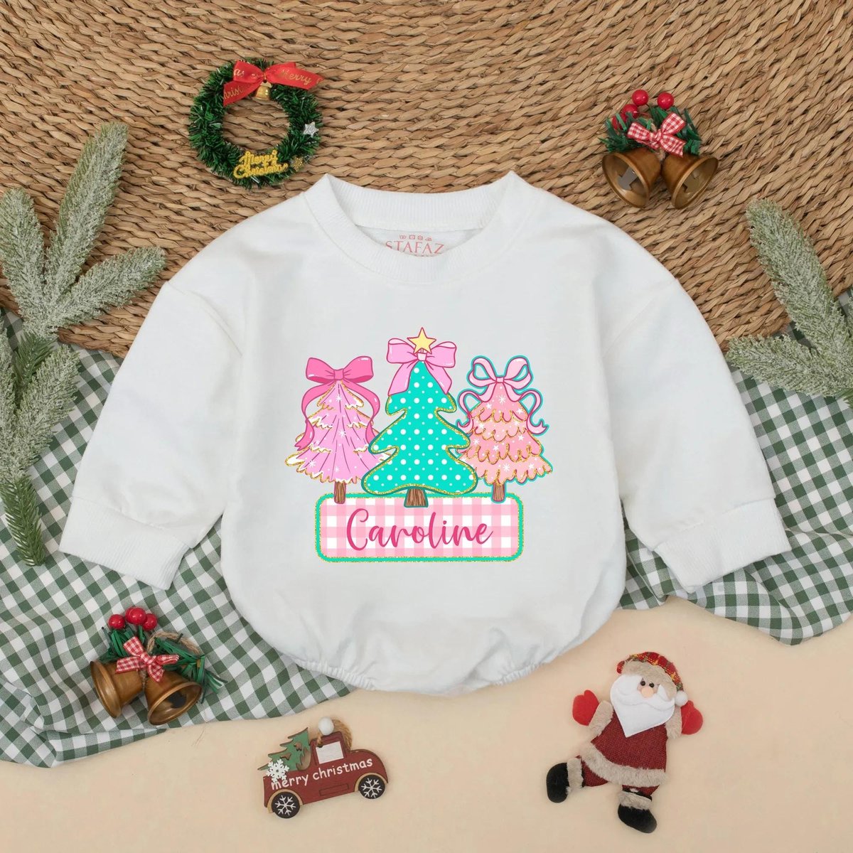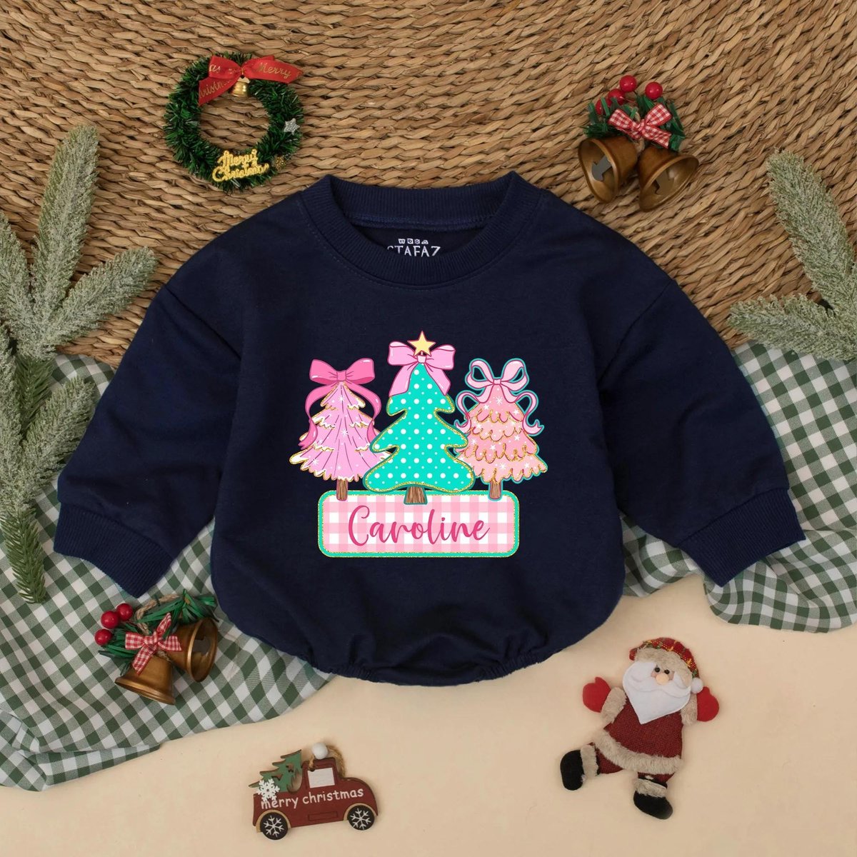 Personalized Christmas Tree Baby Bubble Romper Custom Name Holiday Outfit Baby Christmas Sweatshirt 436