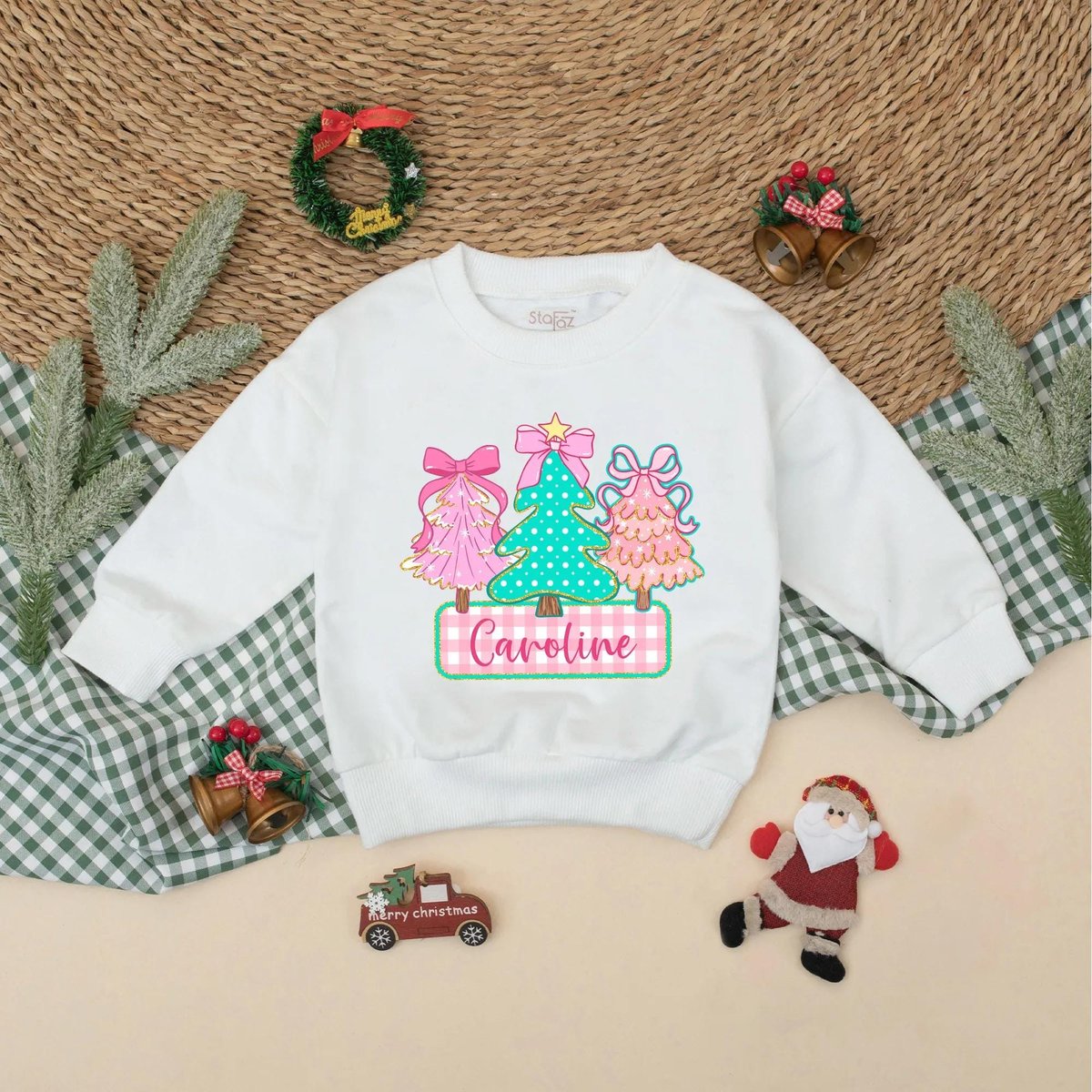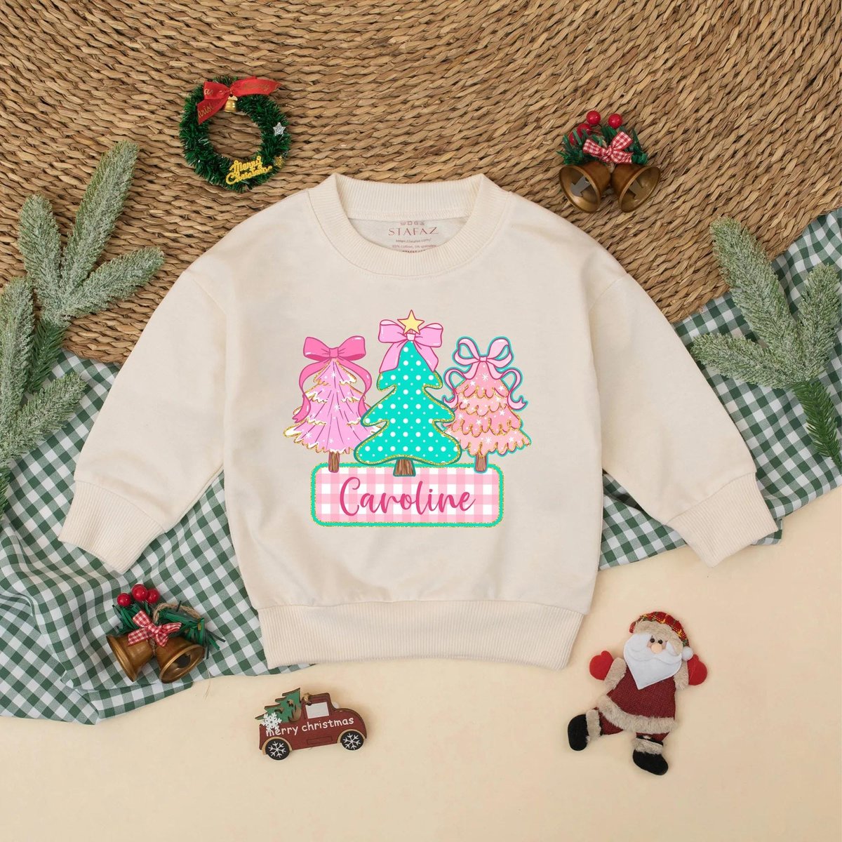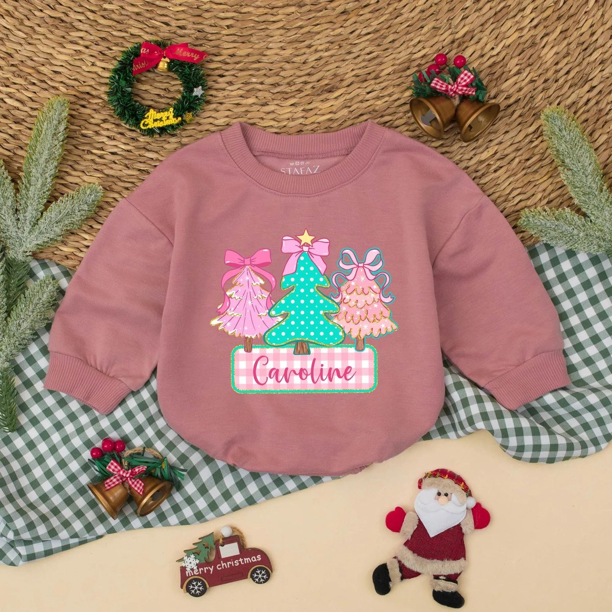 Personalized Christmas Tree Baby Bubble Romper Custom Name Holiday Outfit Baby Christmas Sweatshirt 436